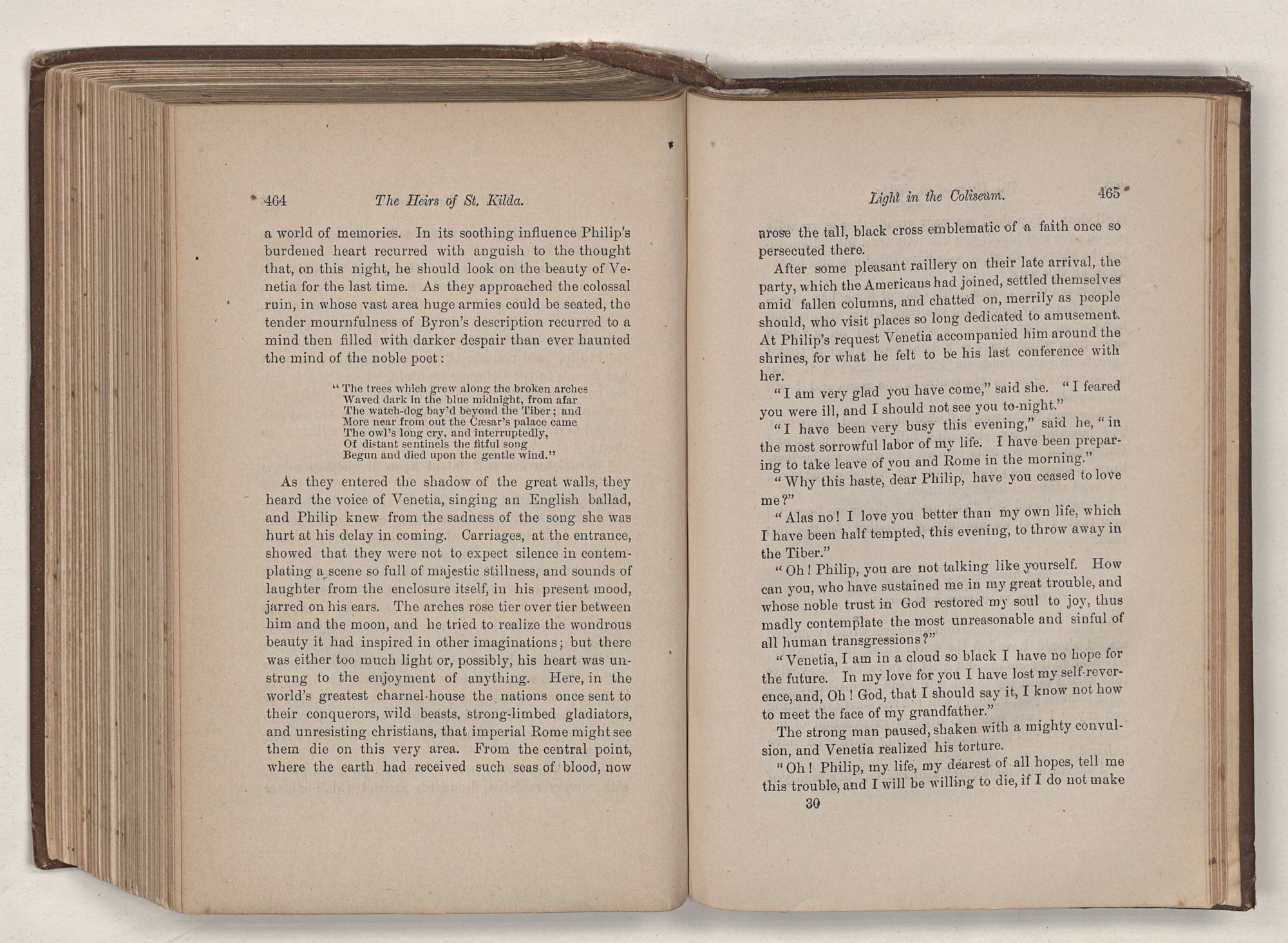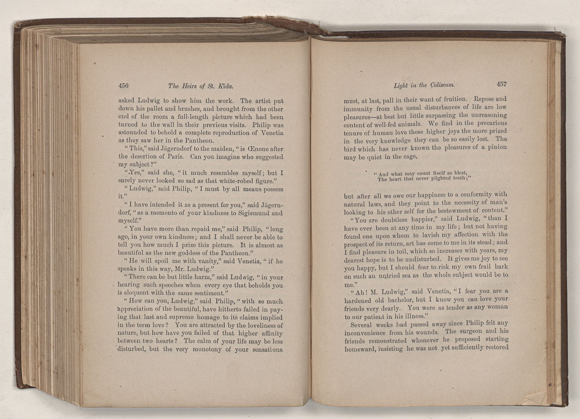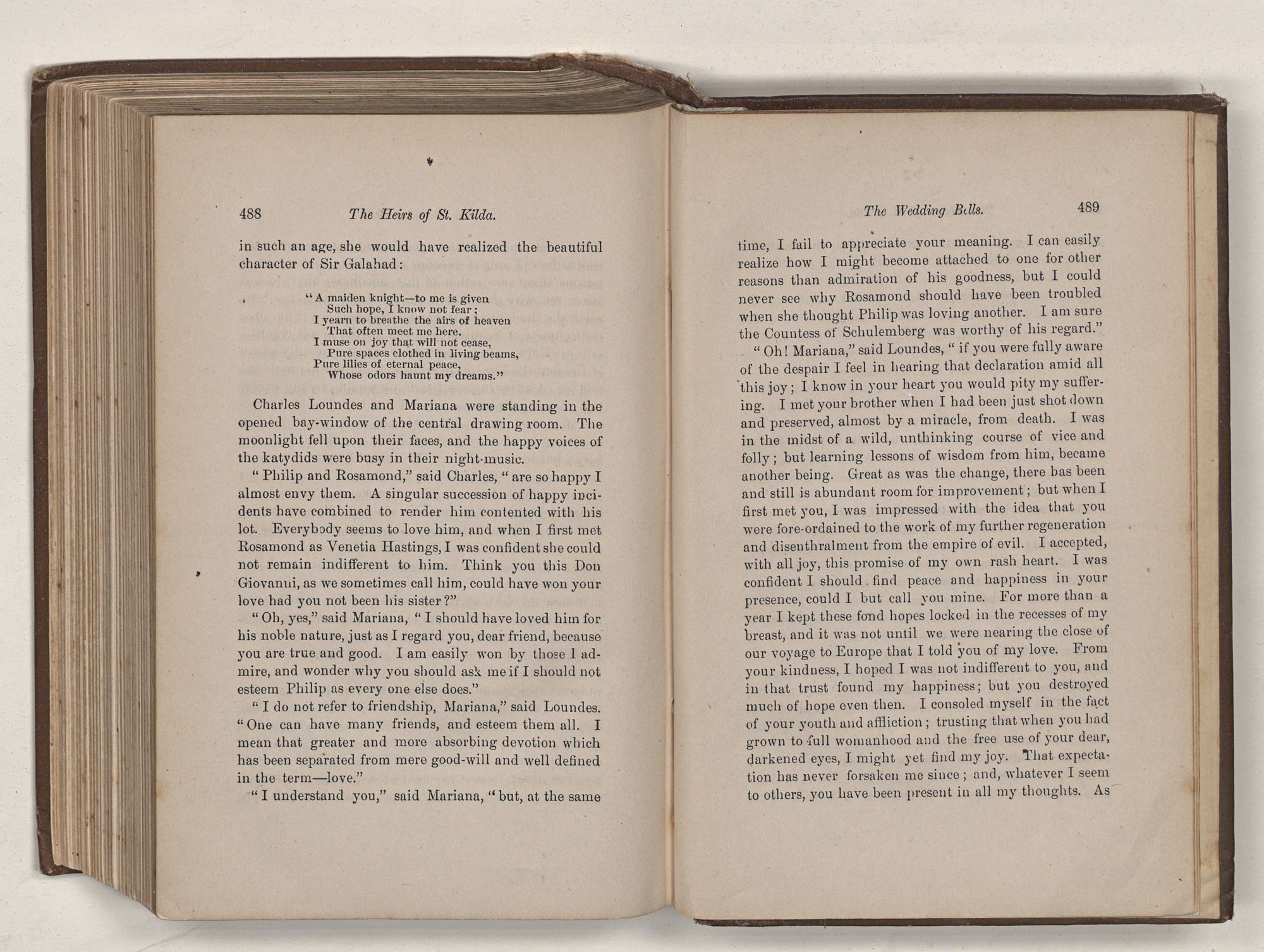 "Philip and Rosamond," said Charles, "are so happy I almost envy them. A singular succession of happy incidents have combined to render him contented with his lot. Everybody seems to love him, and when I first met Rosamond as Venetia Hastings, I was confident she could not remain indifferent to him. Think you this Don Giovanni, as we sometimes call him, could have won your love had you not been his sister?"
