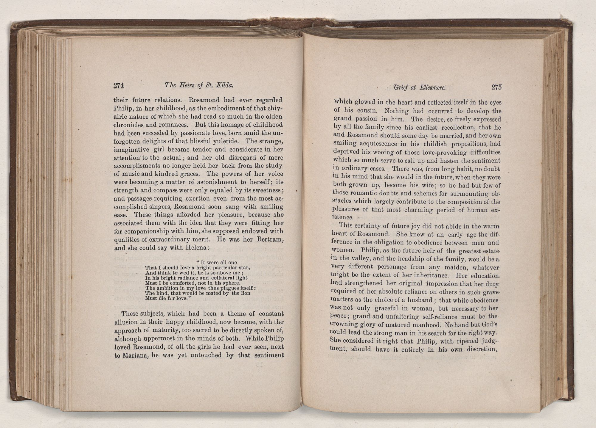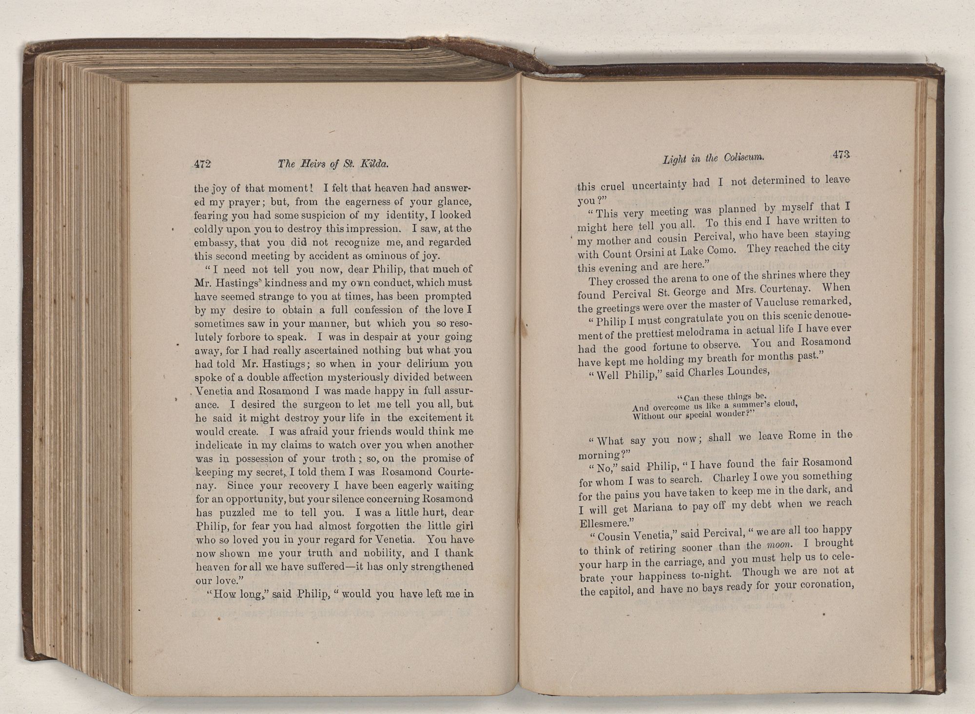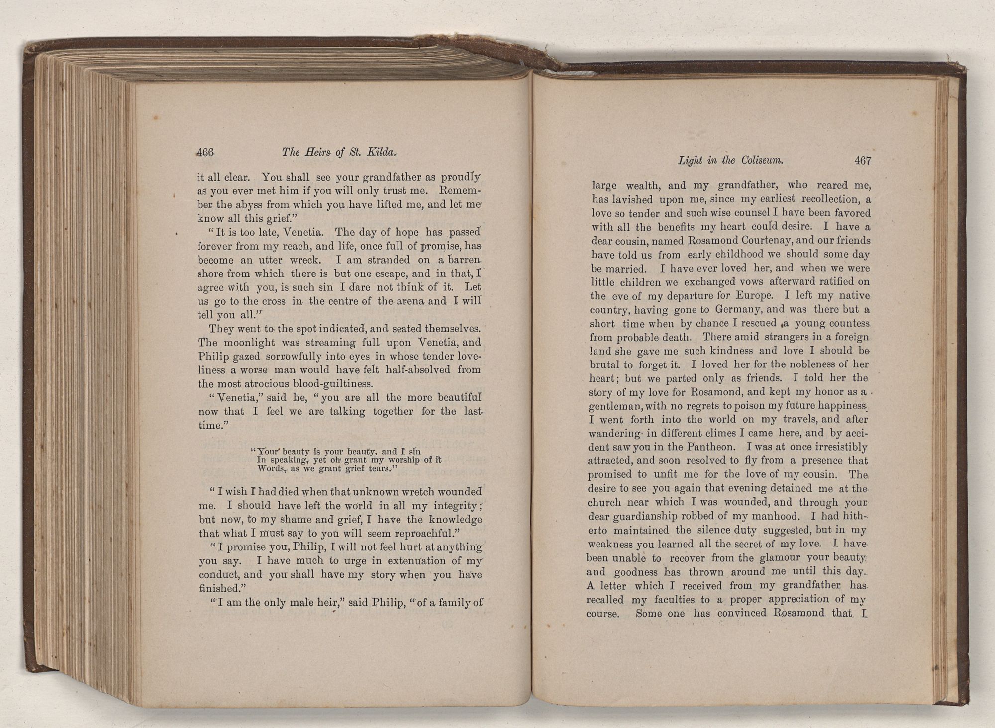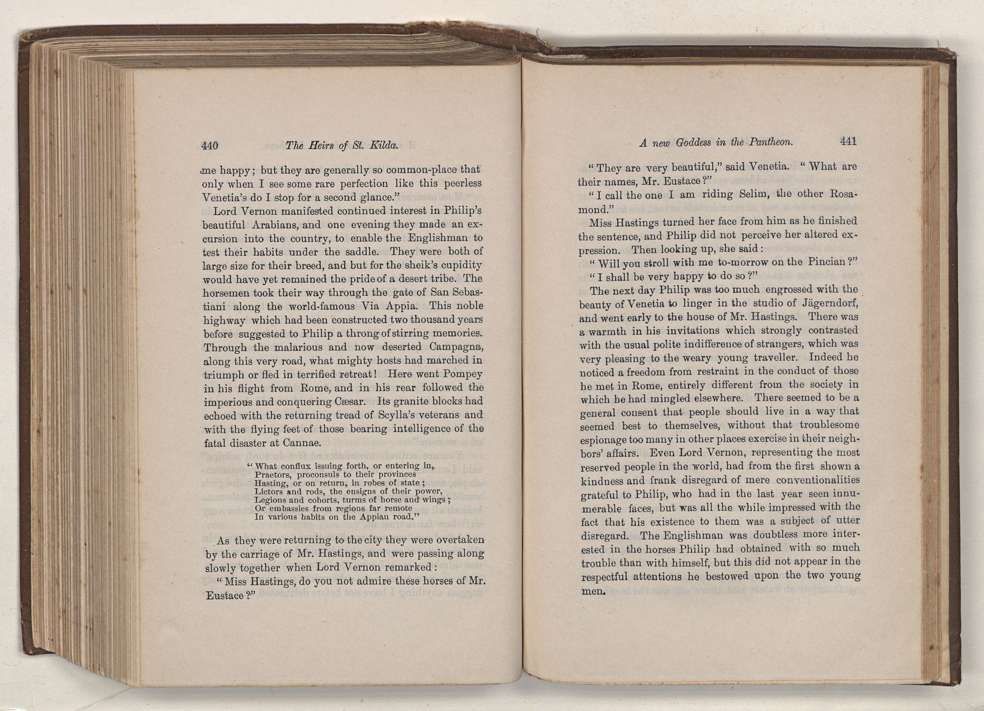 "Philip and Rosamond," said Charles, "are so happy I almost envy them. A singular succession of happy incidents have combined to render him contented with his lot. Everybody seems to love him, and when I first met Rosamond as Venetia Hastings, I was confident she could not remain indifferent to him. Think you this Don Giovanni, as we sometimes call him, could have won your love had you not been his sister?"