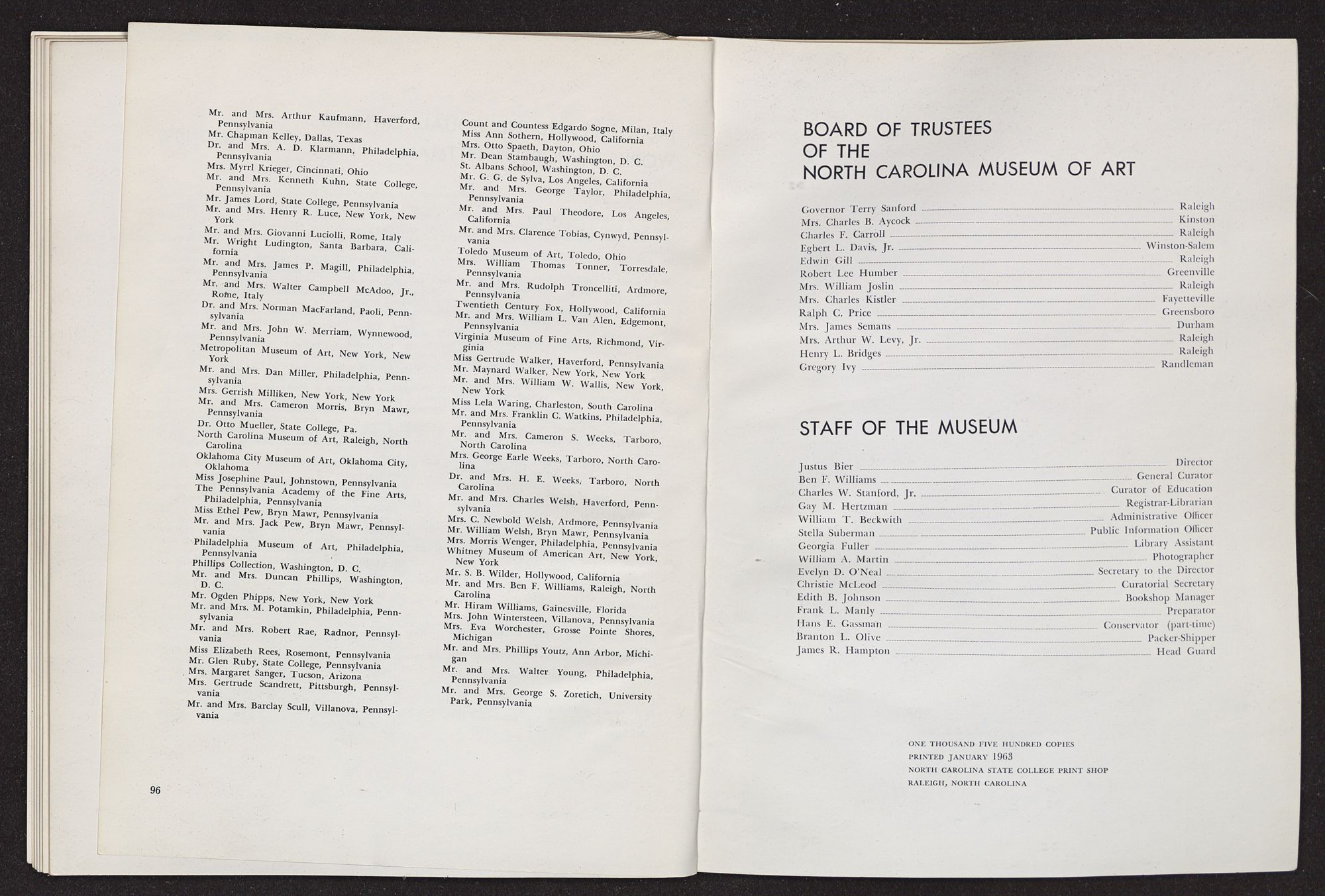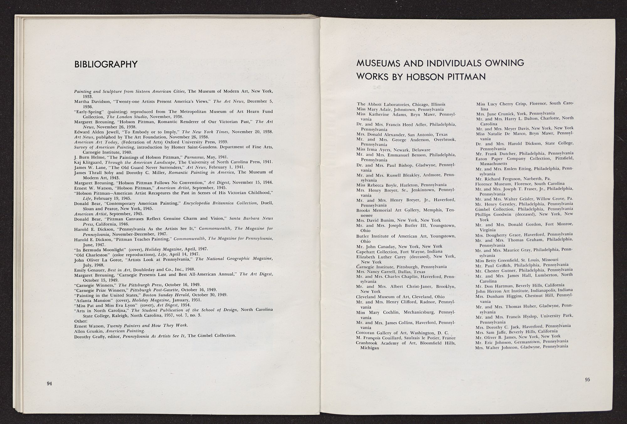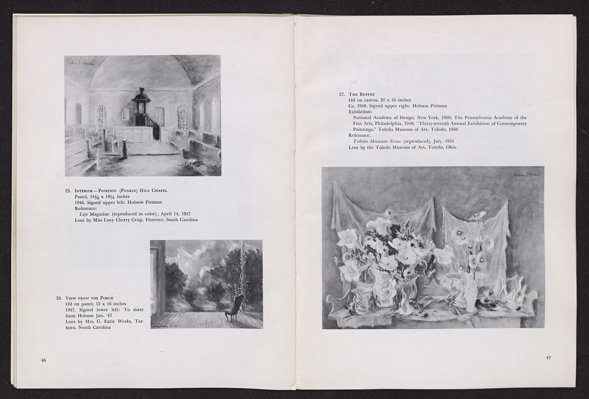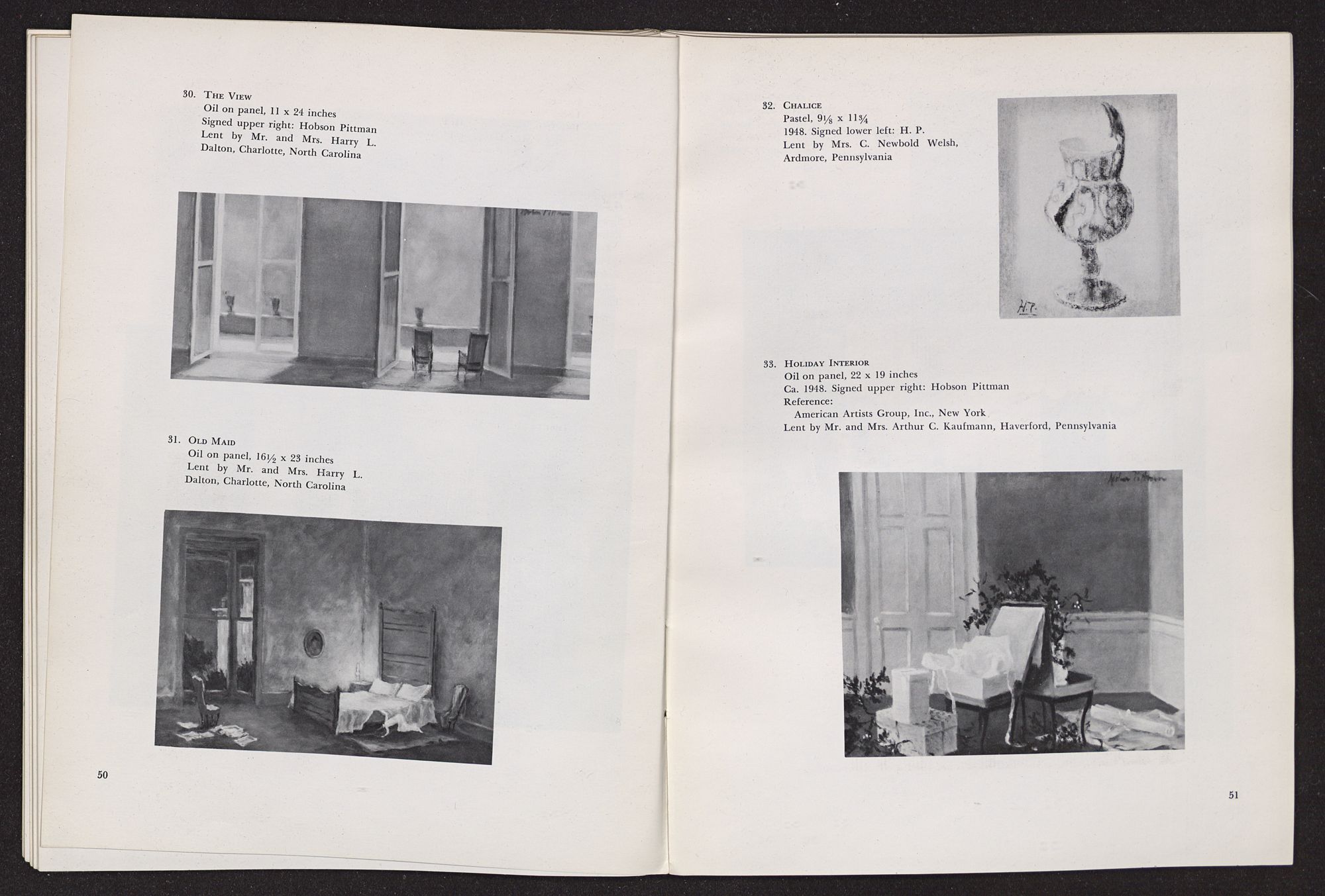 HOBSON PITTMANRETROSPECTIVE EXHIBITION HIS WORK SINCE 1920FEBRUARY 2-MARCH 3, 1963 The Hobson Pittman Retrospective Exhibition is the third in the North Carolina Museum of Art's series devoted to great North Carolina artists. The first exhibition in the series, in 1961, honored Francis Speight; the second, held last year, paid tribute to Josef Albers.NORTH CAROLINA MUSEUM OF ART, RALEIGH,NORTH CAROLINALENDERS TO THE EXHIBITION