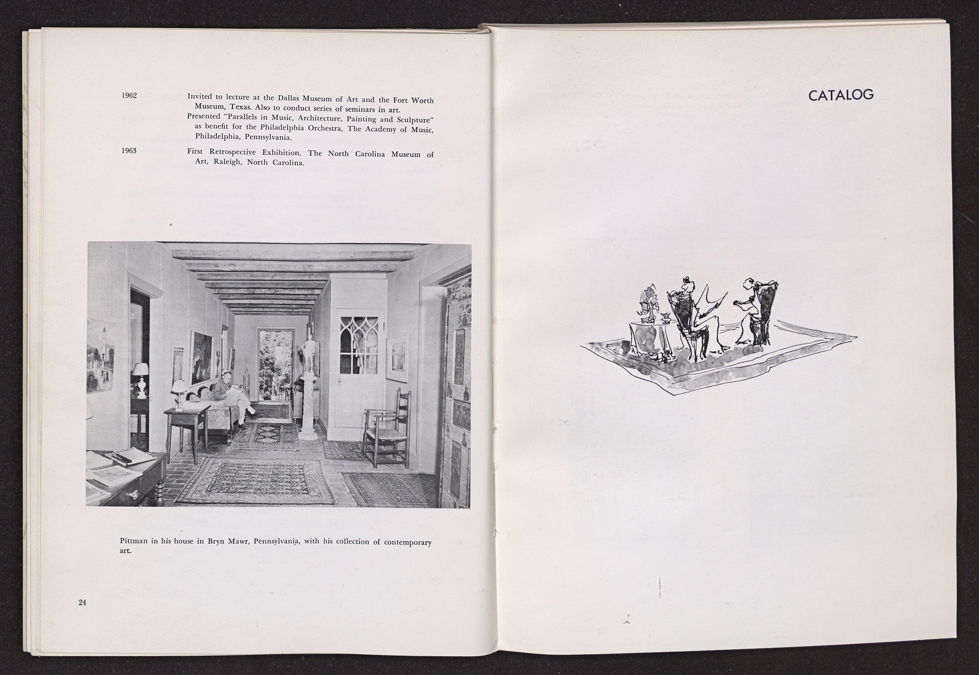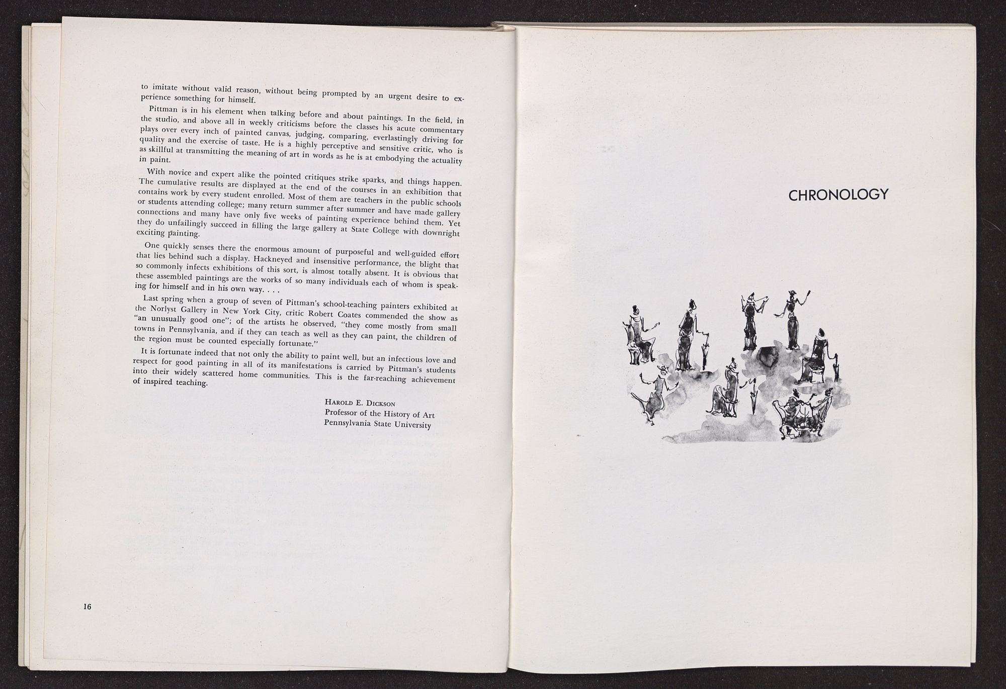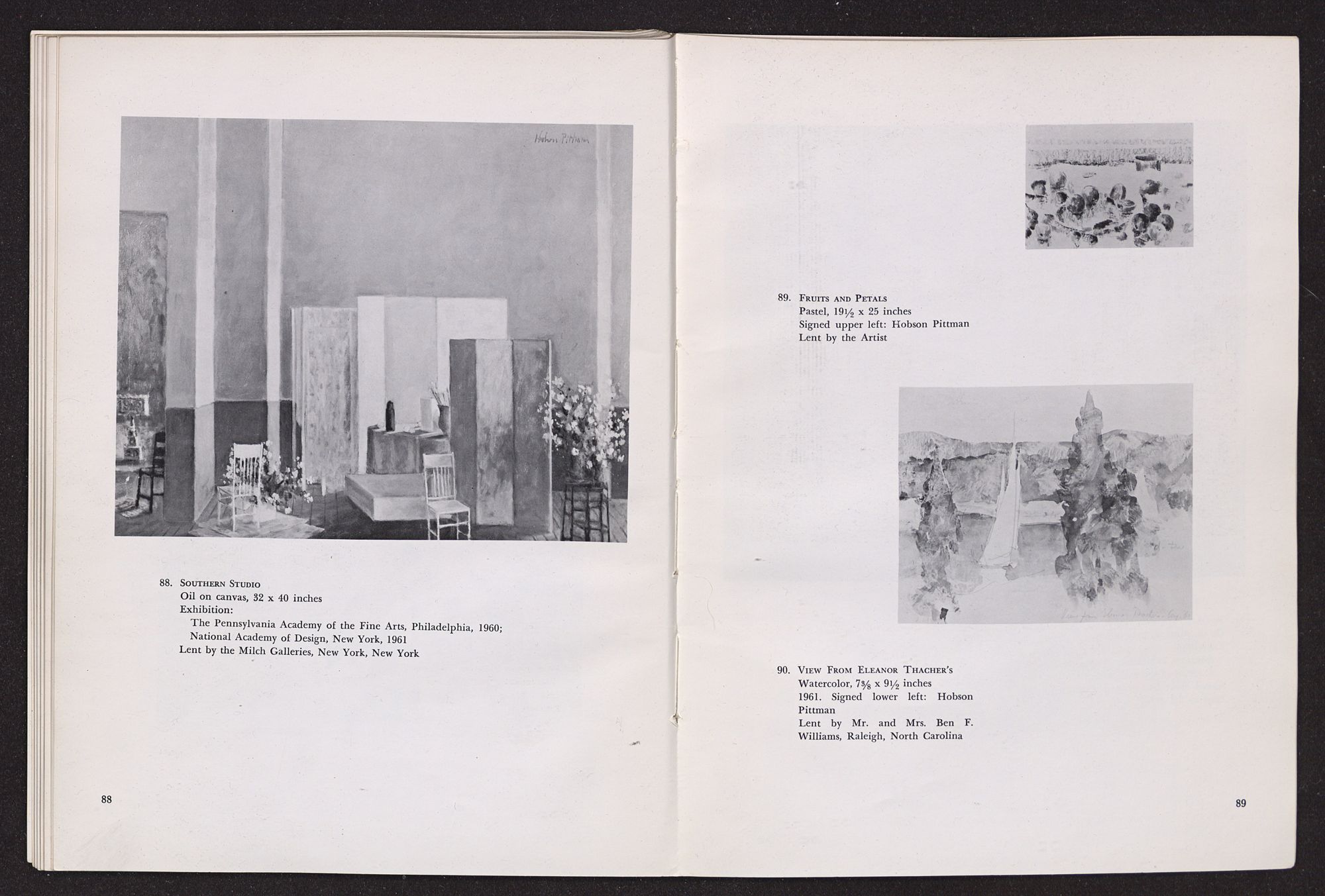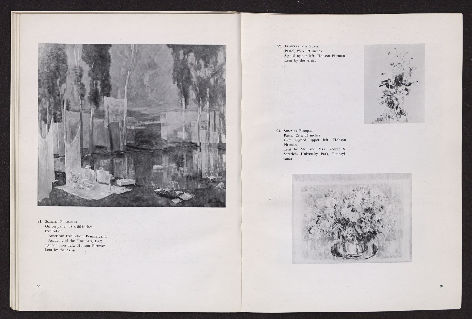 In the pages that follow, the reader will find notes and tributes written by various people who have been closely associated with Hobson Pittman in his career. Included are impressions by many familar names in the art world and also comments by former students. Taken together, these remarks project a revealing picture of the man we are honoring and form a highly appropriate preface to the catalogue.