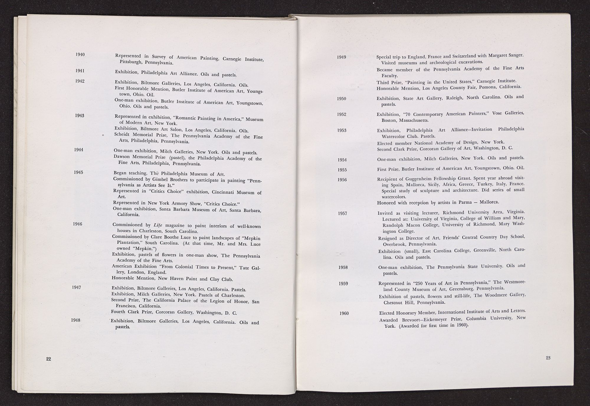 Throughout his entire life he has continually been fed from the remembrances of his youth in the South but has absorbed, to an extraordinary extent, the many and varied manifestations through which the painting profession has progressed. It can be truly said that the quality of beauty has not been of first importance in much which is presently contemporary, but the qualities inherent in this word have pervaded his every work.