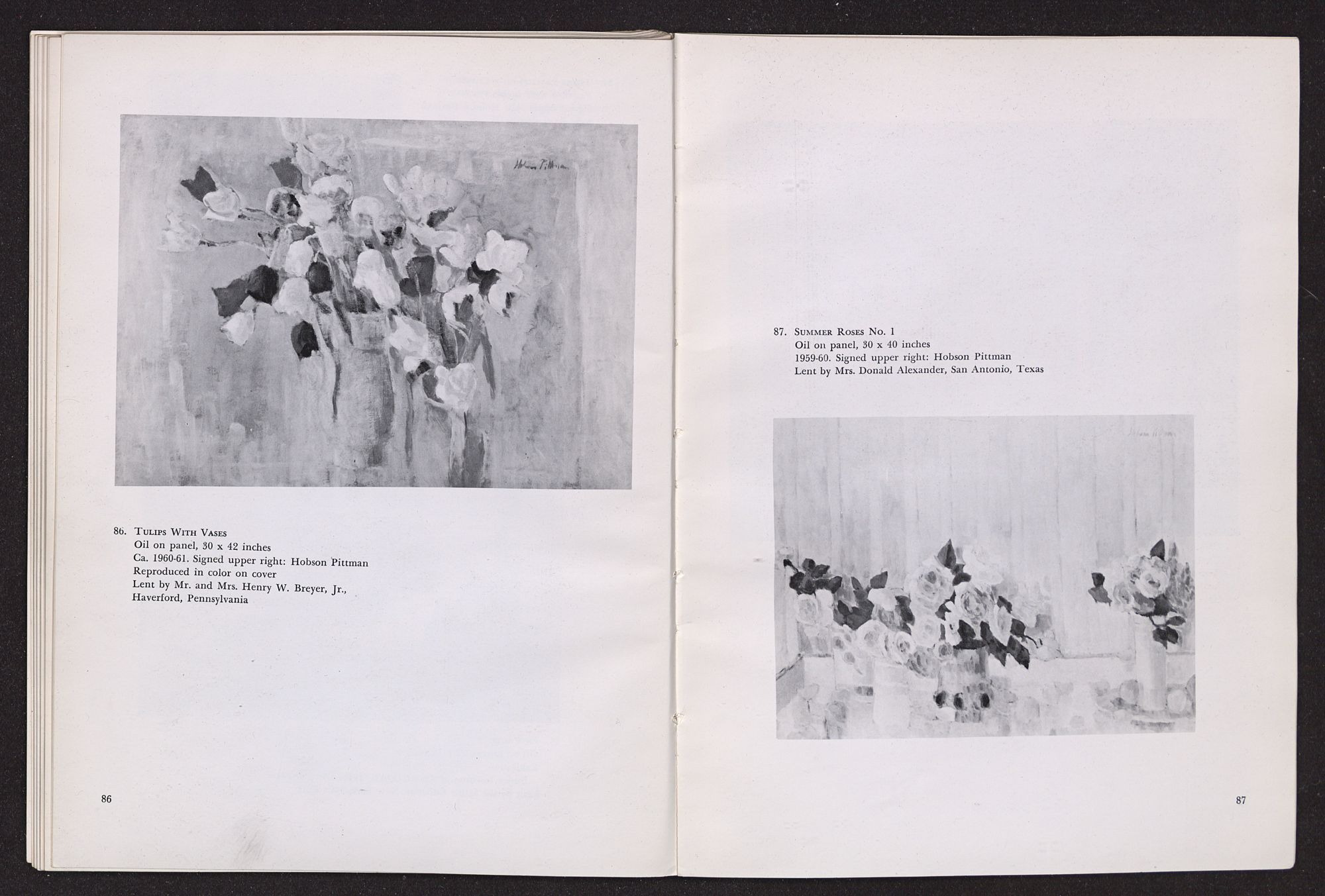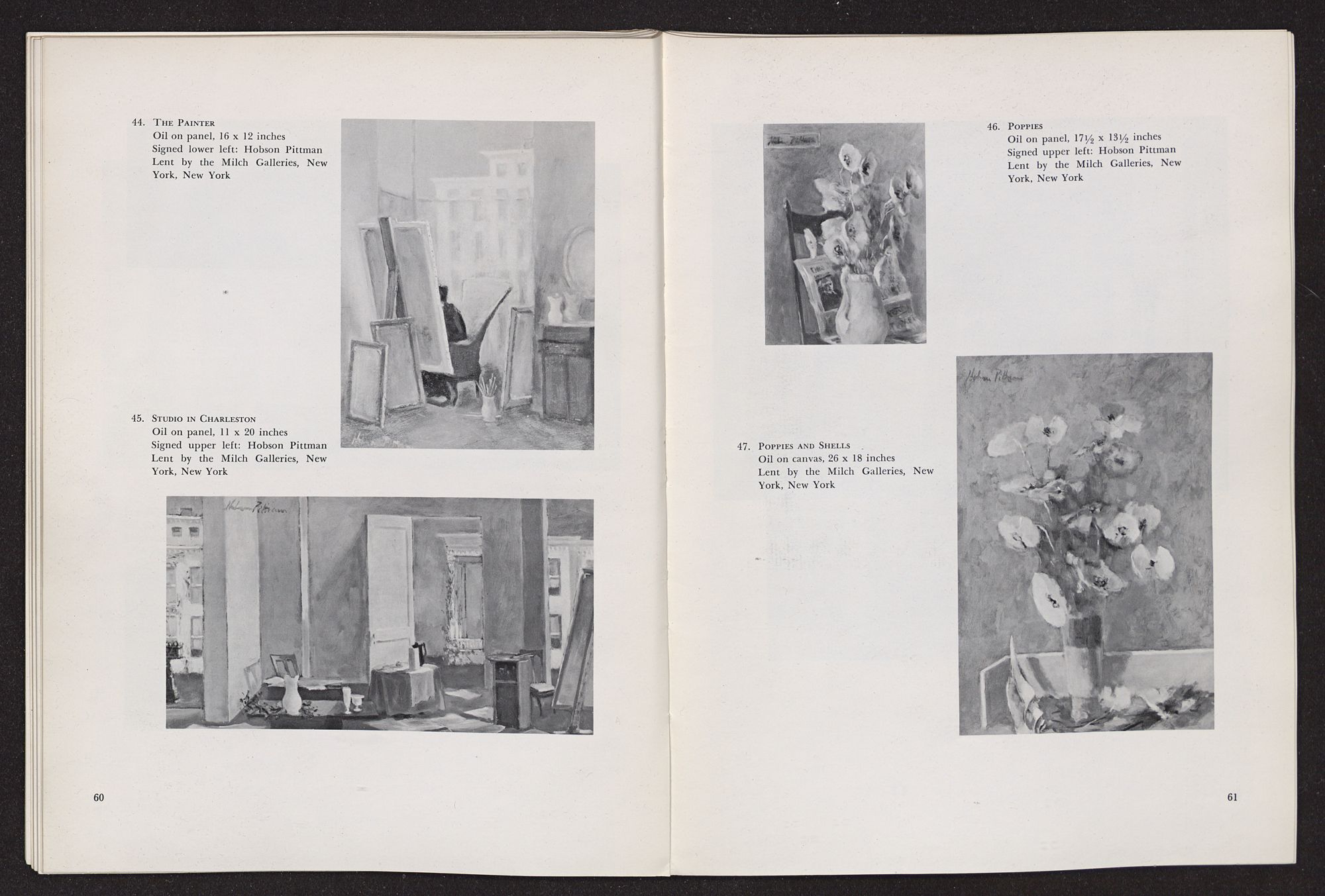 For many years the paintings of Hobson Pittman have been to me a constant song raised in praise of beauty and of quiet, ordered peace; a song rising at times to a paean of delight, as in his brilliant paintings of flower bouquets transfigured by the sunlight; and, again, a muted chamber music of full-blown delicate poppies gathered with consummate grace into a white vase on a high Victorian mantel, set in the midst of a serene, high-ceiled room with an open door or window leading out into infinite space beyond.