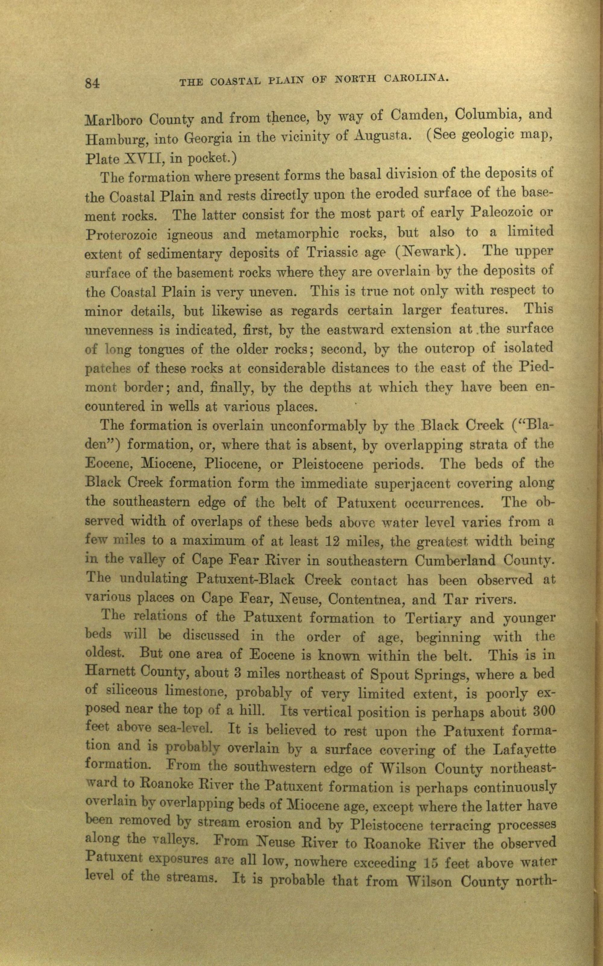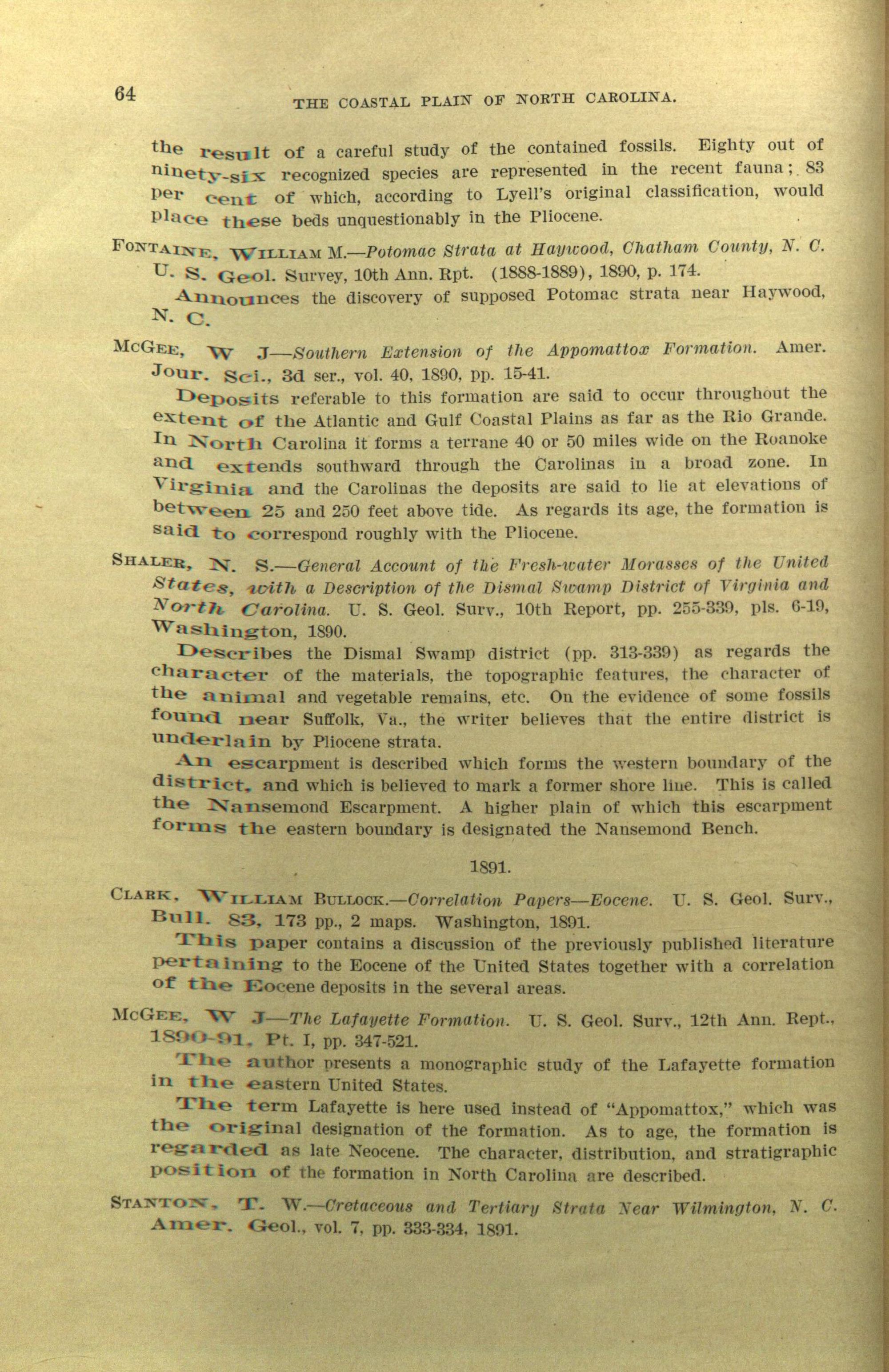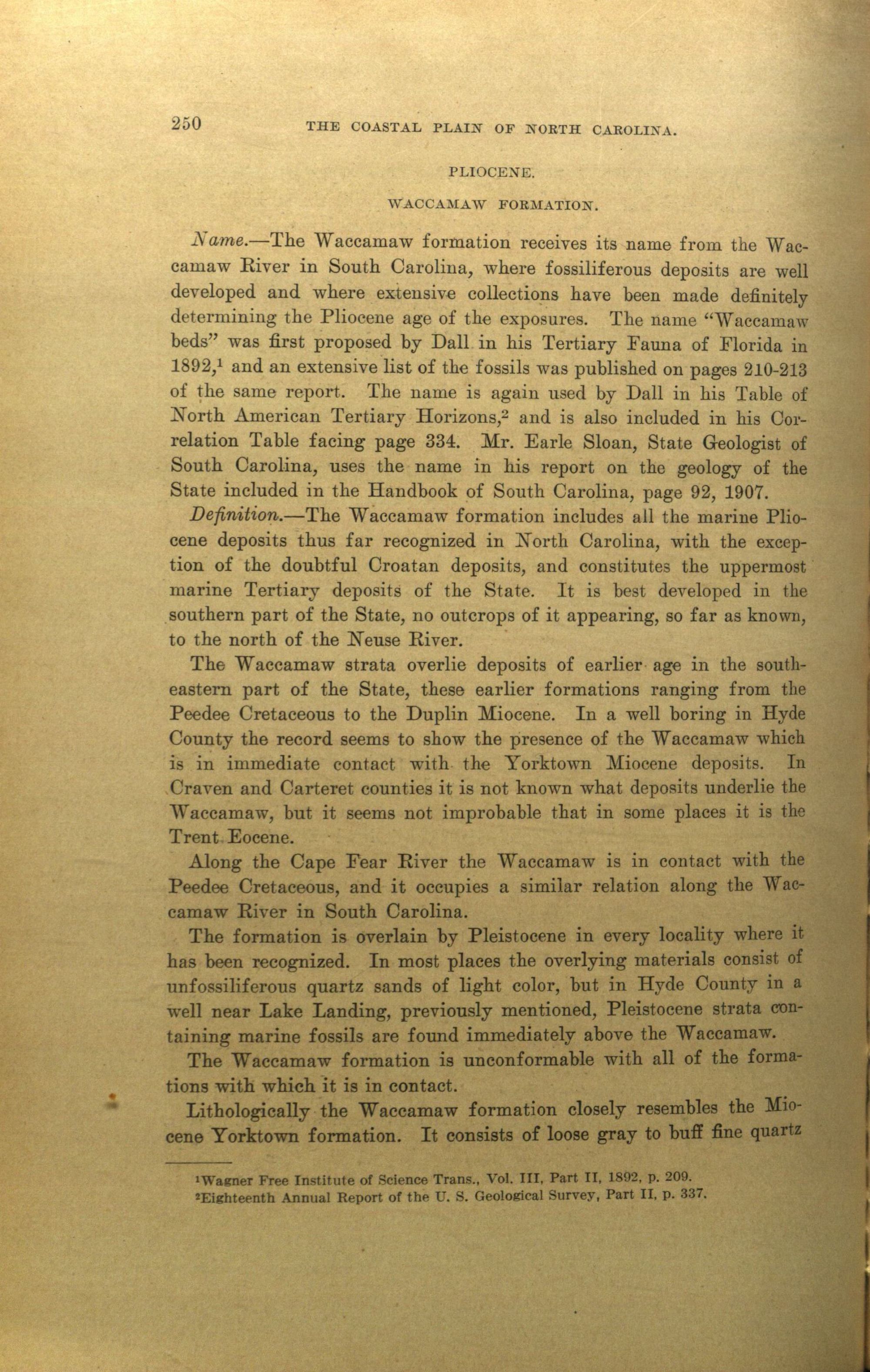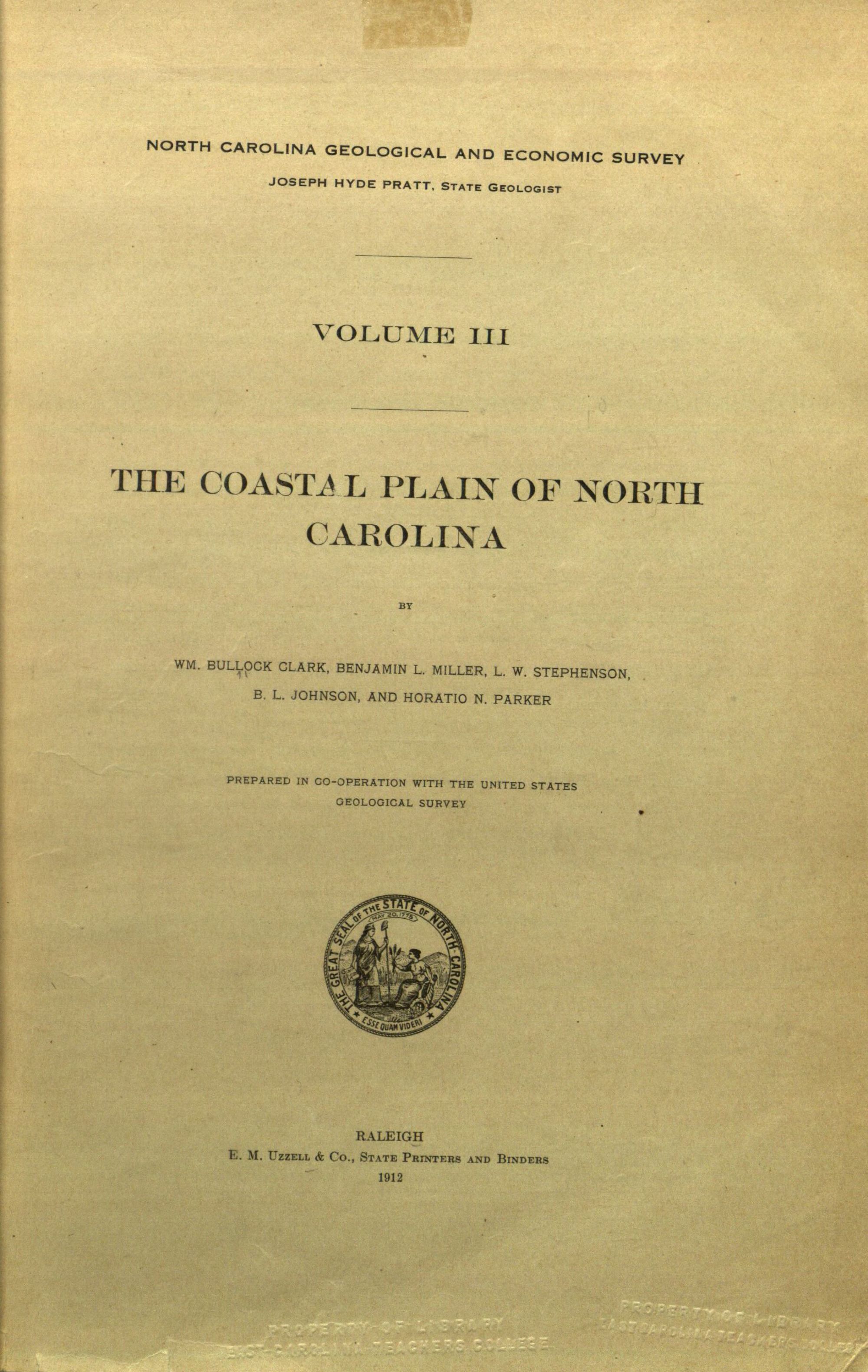 NORTH CAROLINA GEOLOGICAL AND ECONOMIC SURVEY JOSEPH HYDE PRATT, STATE GEOLOGIST VOLUME III THE COASTAL PLAIN OF NORTH CAROLINABY WM. BULLOCK CLARK, BENJAMIN L. MILLER, L. W. STEPHENSON, B. L. JOHNSON, AND HORATIO N. PARKER PREPARED IN CO-OPERATION WITH THE UNITED STATES GEOLOGICAL SURVEYTHE GREAT SEAL OF THE STATE OF NORTH CAROLINA