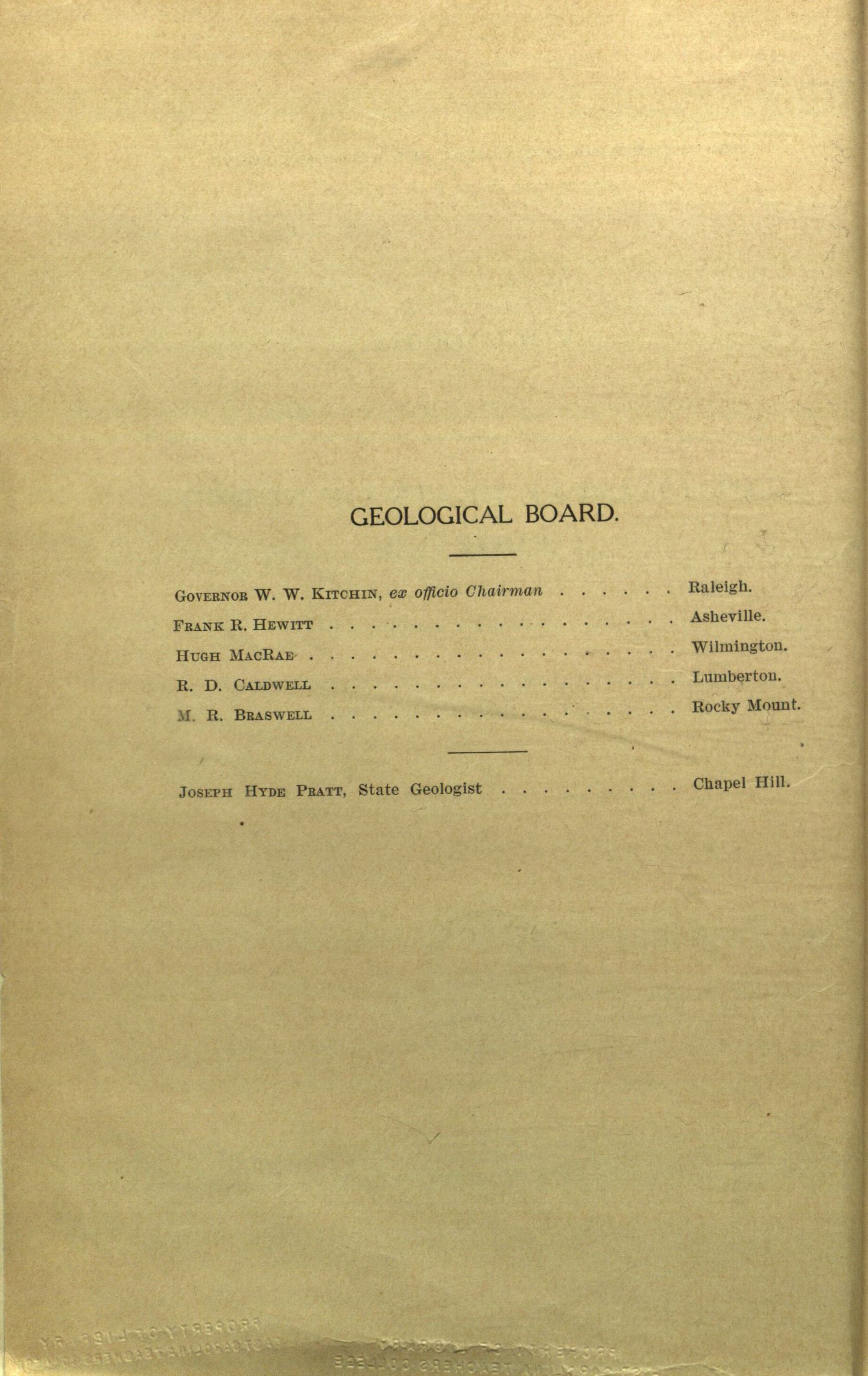 | JOSEPH HYDE PRATT, State Geologist | Chapel Hill. |