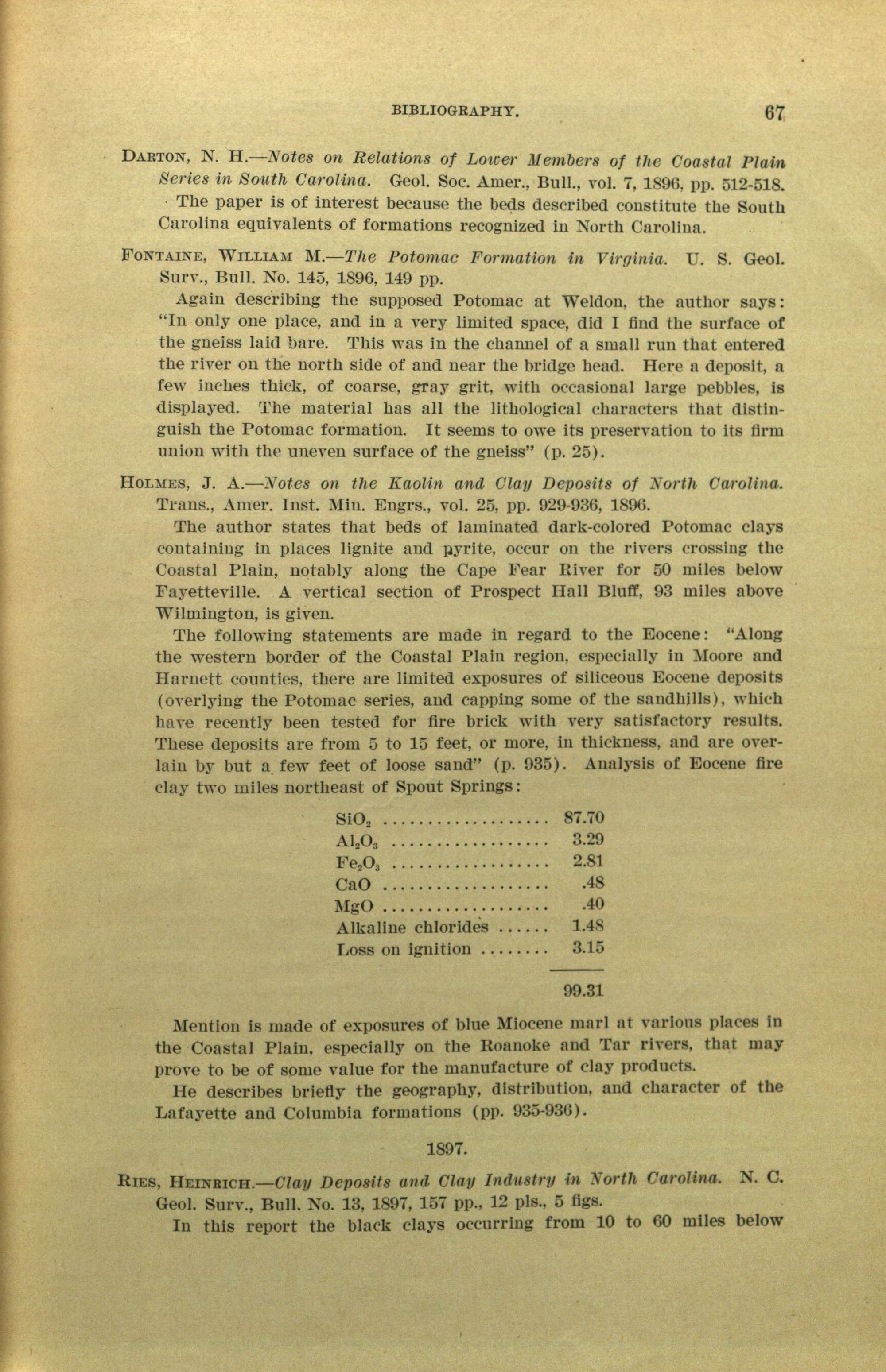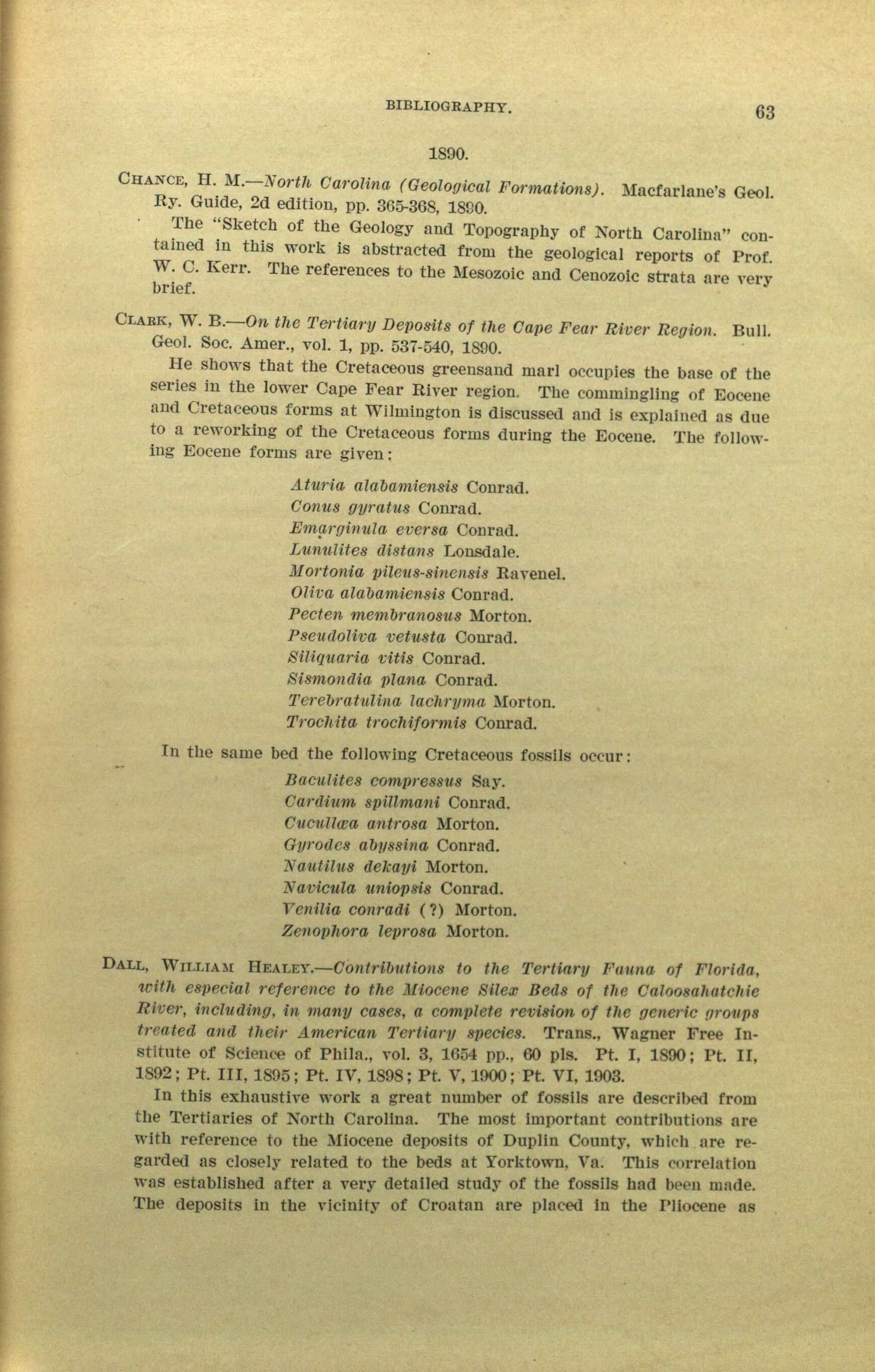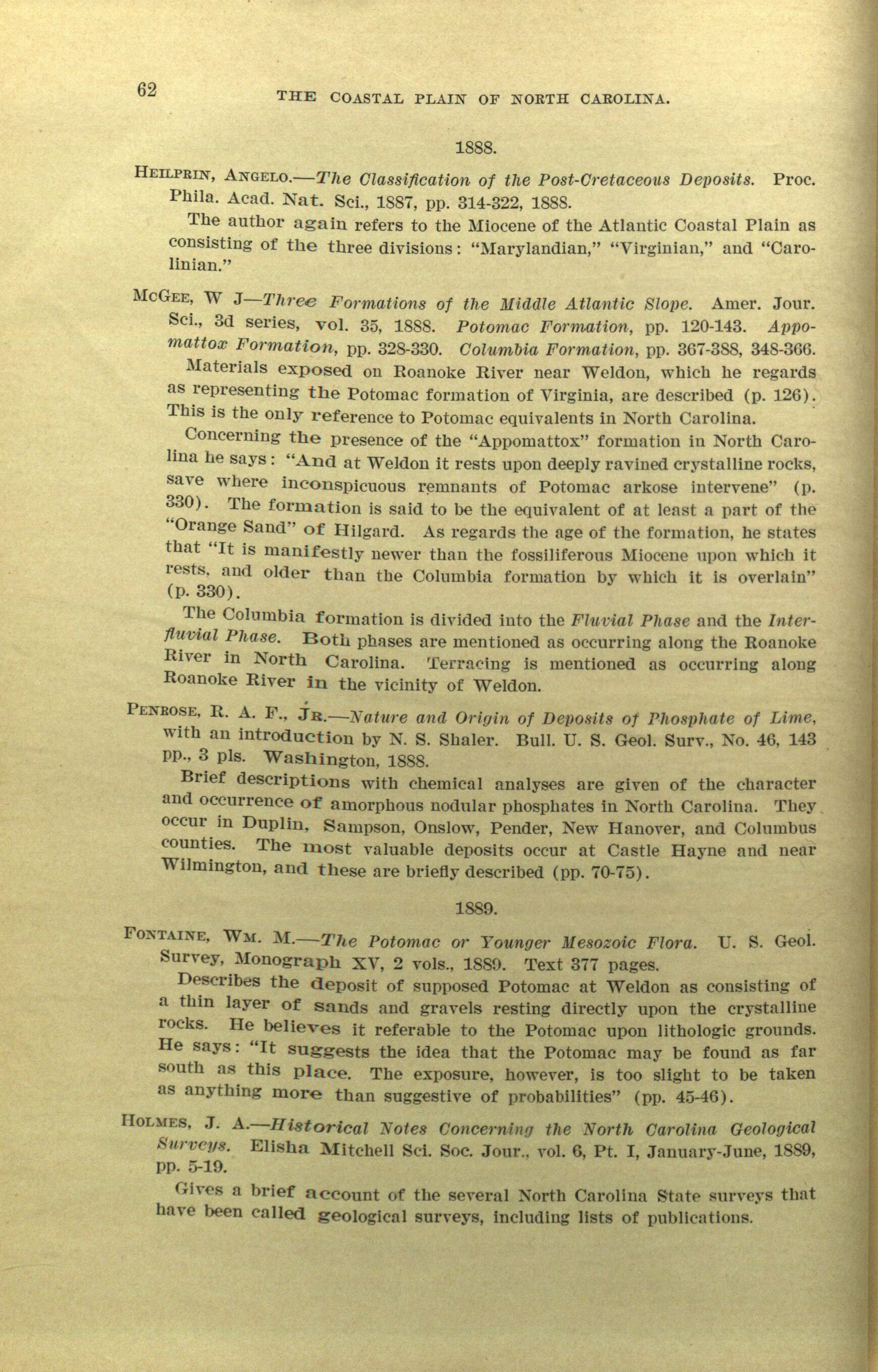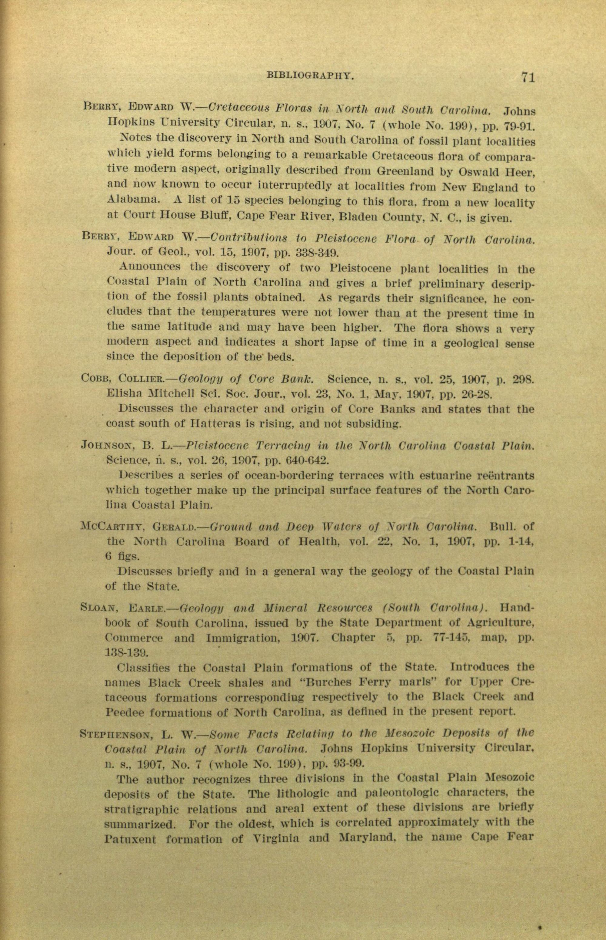 | The Stratigraphy of the Coastal Plain of North Carolina, by William Bullock Clark, B. L. Miller, and L. W. Stephenson | 34 |