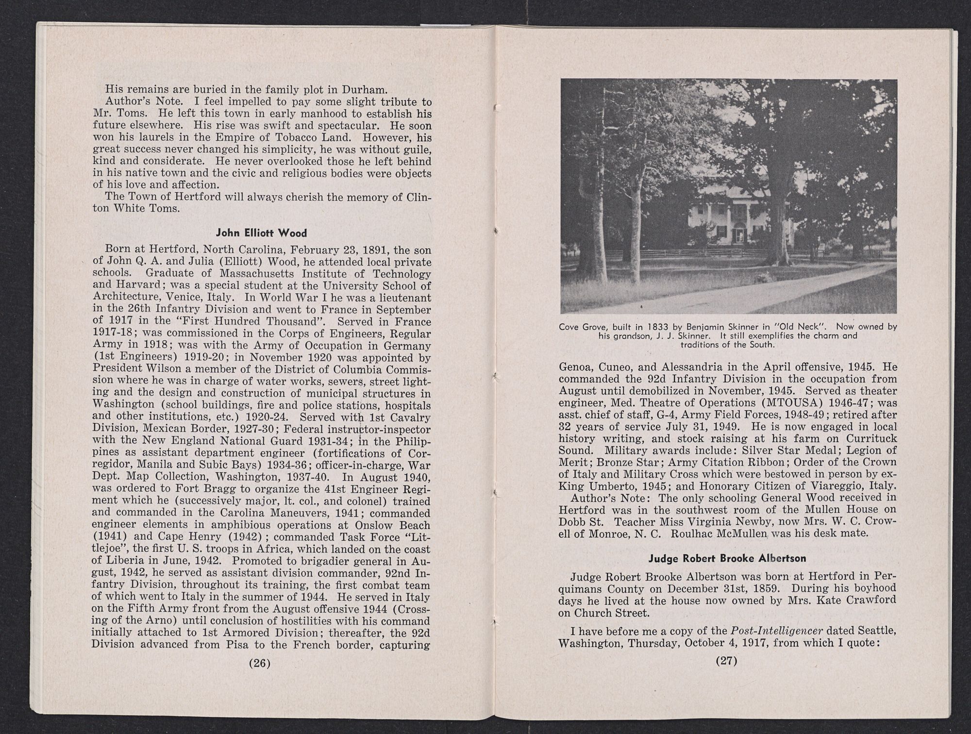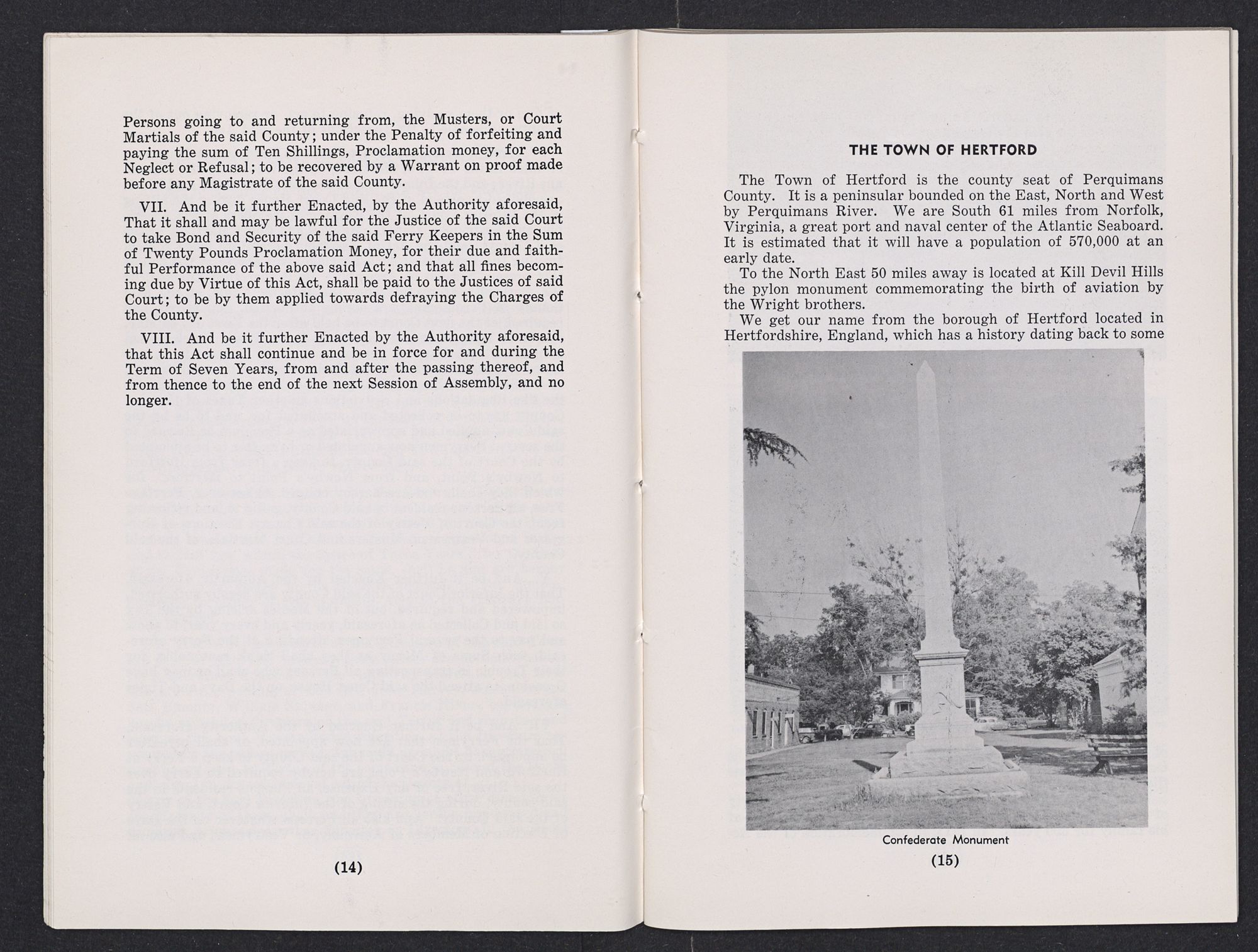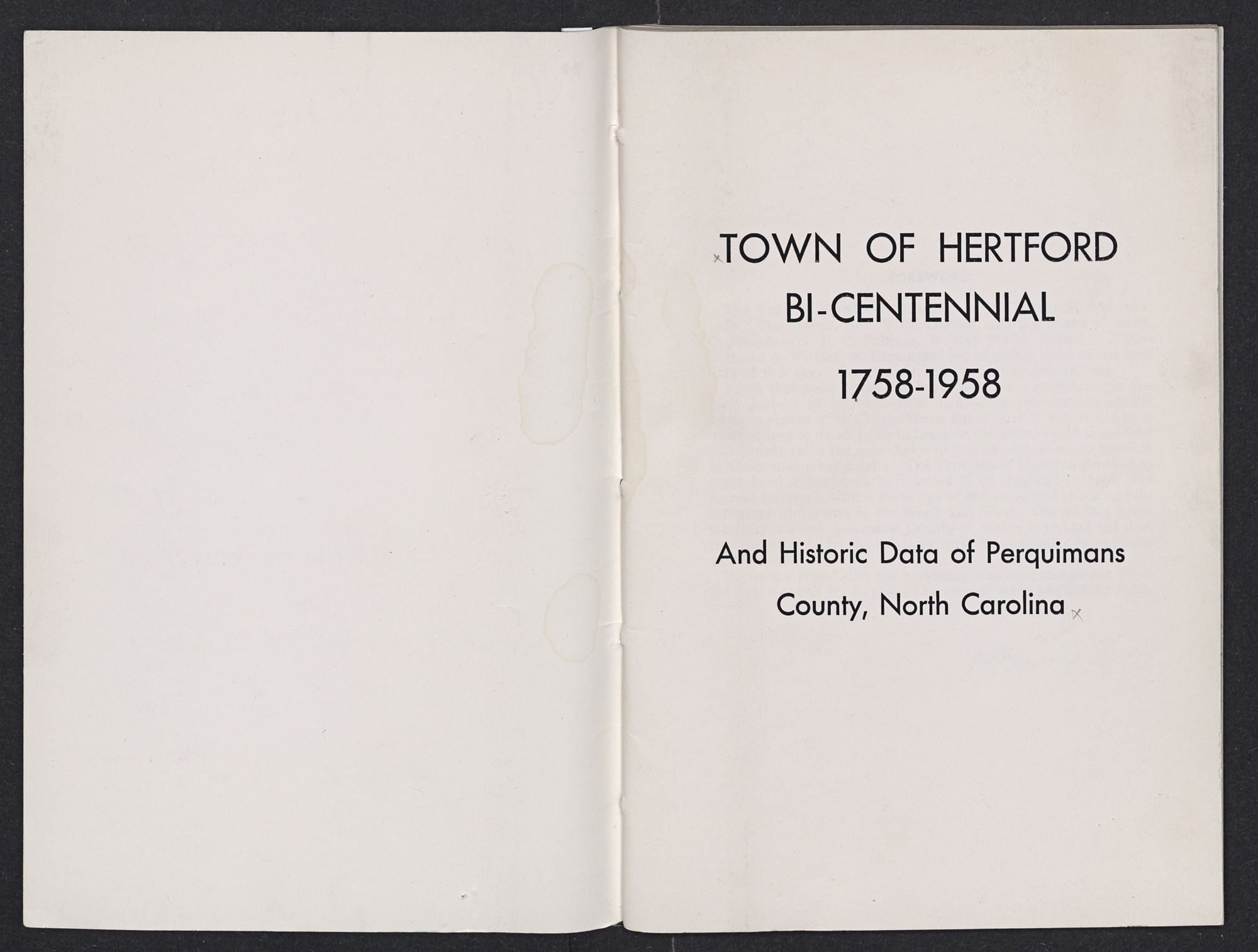 TOWN OF HERTFORD BI-CENTENNIAL 1758-1958 AND HISTORIC DATA OF PERQUIMANS COUNTY, NORTH CAROLINA