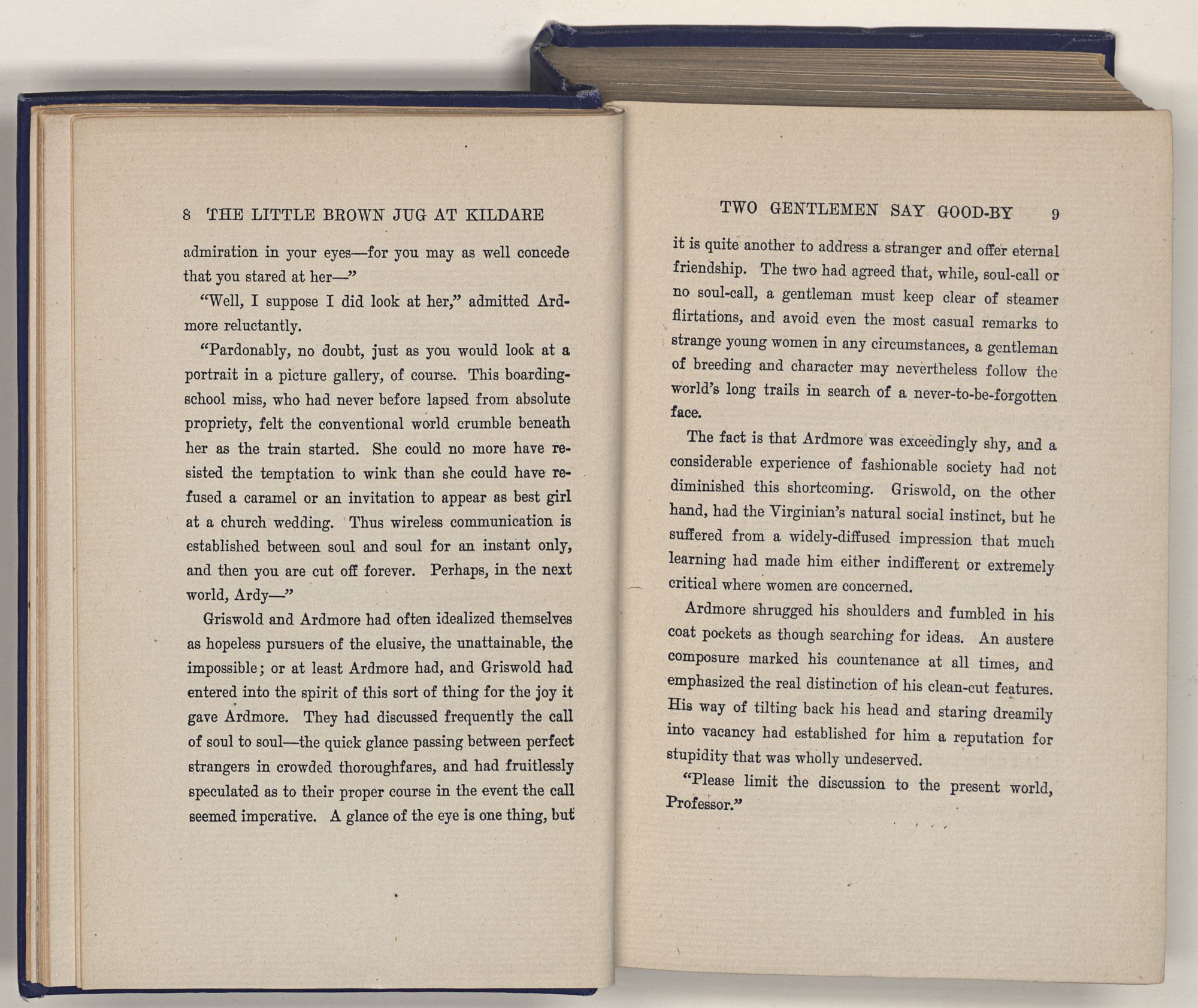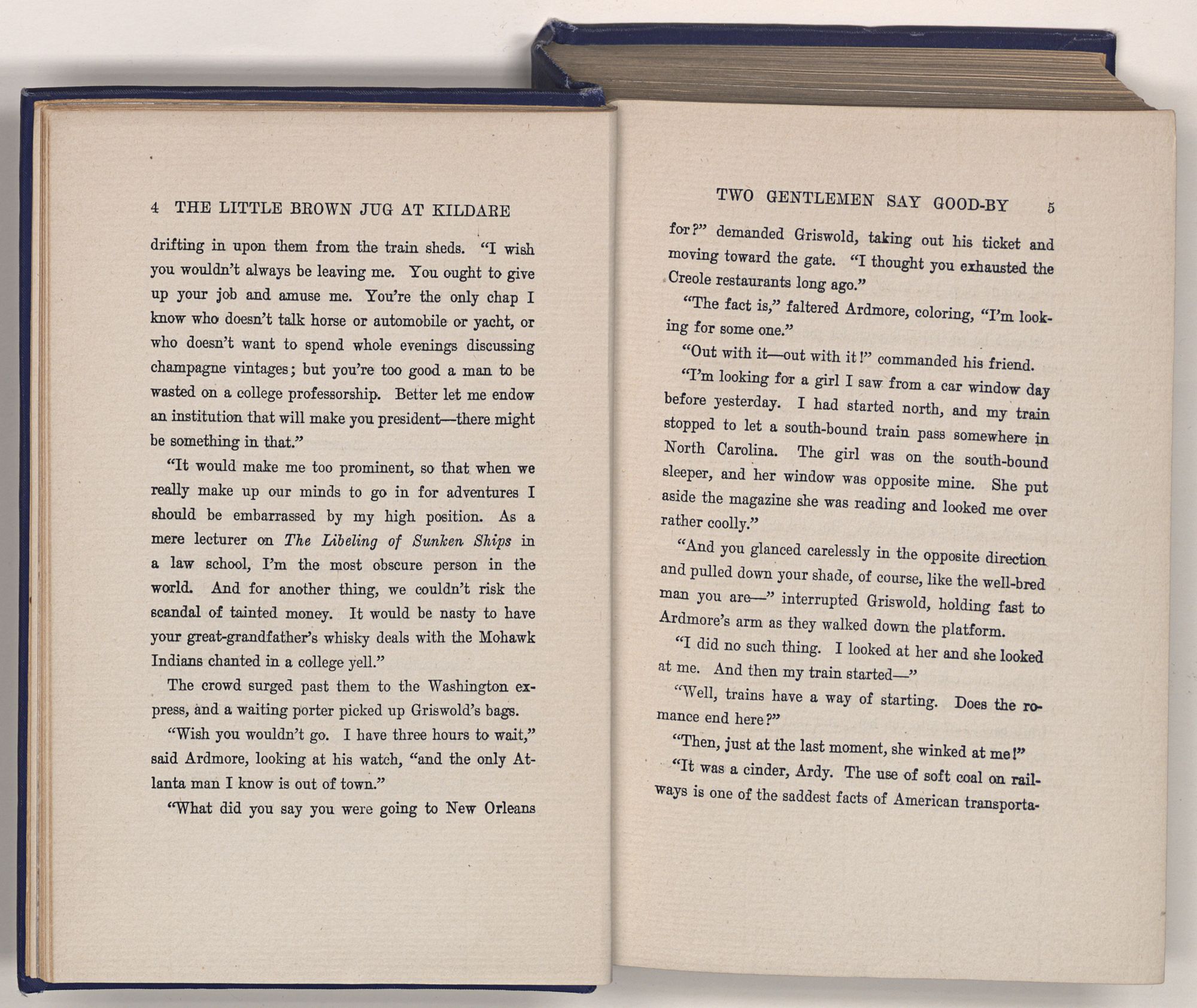 “Pardonably, no doubt, just as you would look at a portrait in a picture gallery, of course. This boarding-school miss, who had never before lapsed from absolute propriety, felt the conventional world crumble beneath her as the train started. She could no more have resisted the temptation to wink than she could have refused a caramel or an invitation to appear as best girl at a church wedding. Thus wireless communication is established between soul and soul for an instant only, and then you are cut off forever. Perhaps, in the next world, Ardy—”