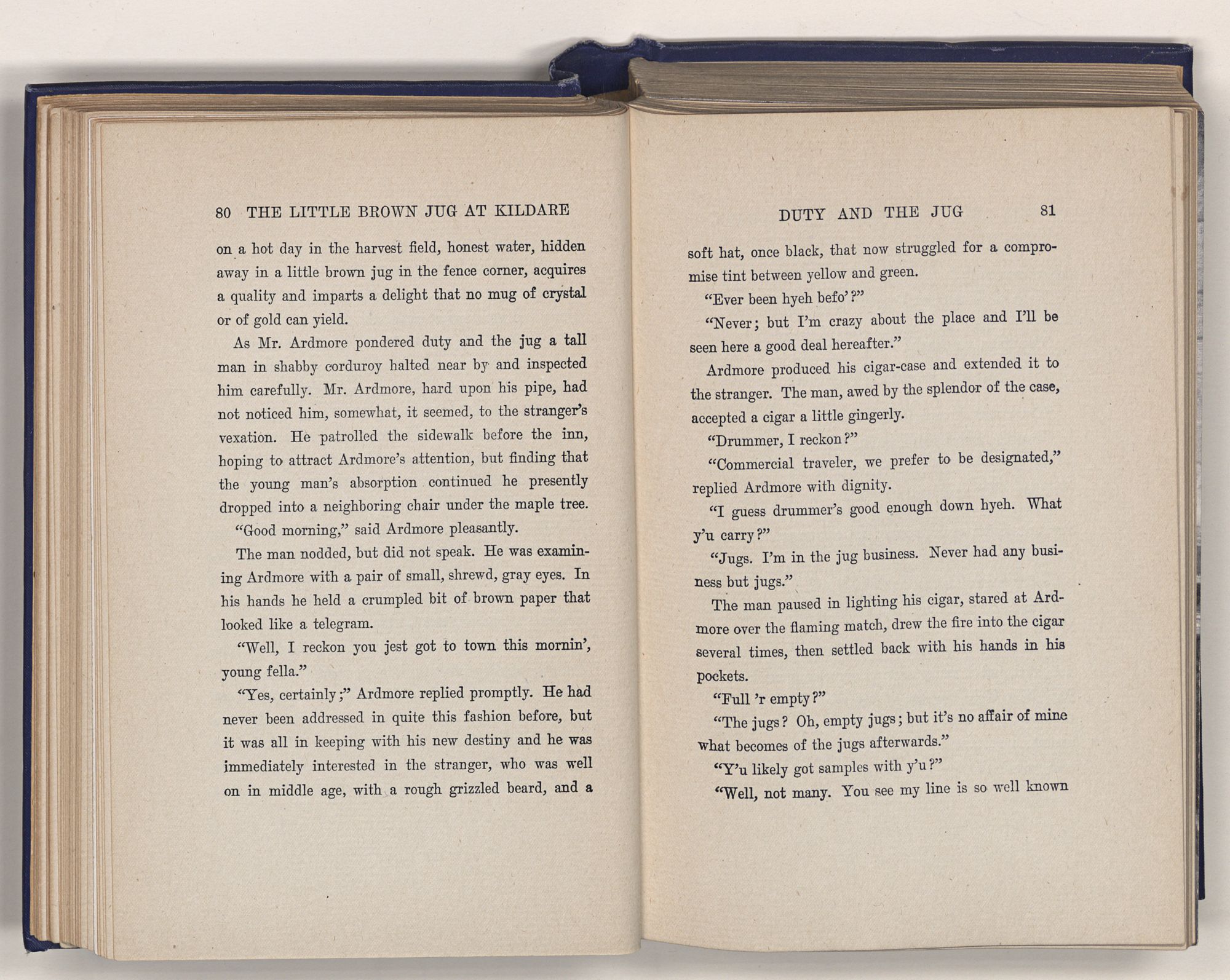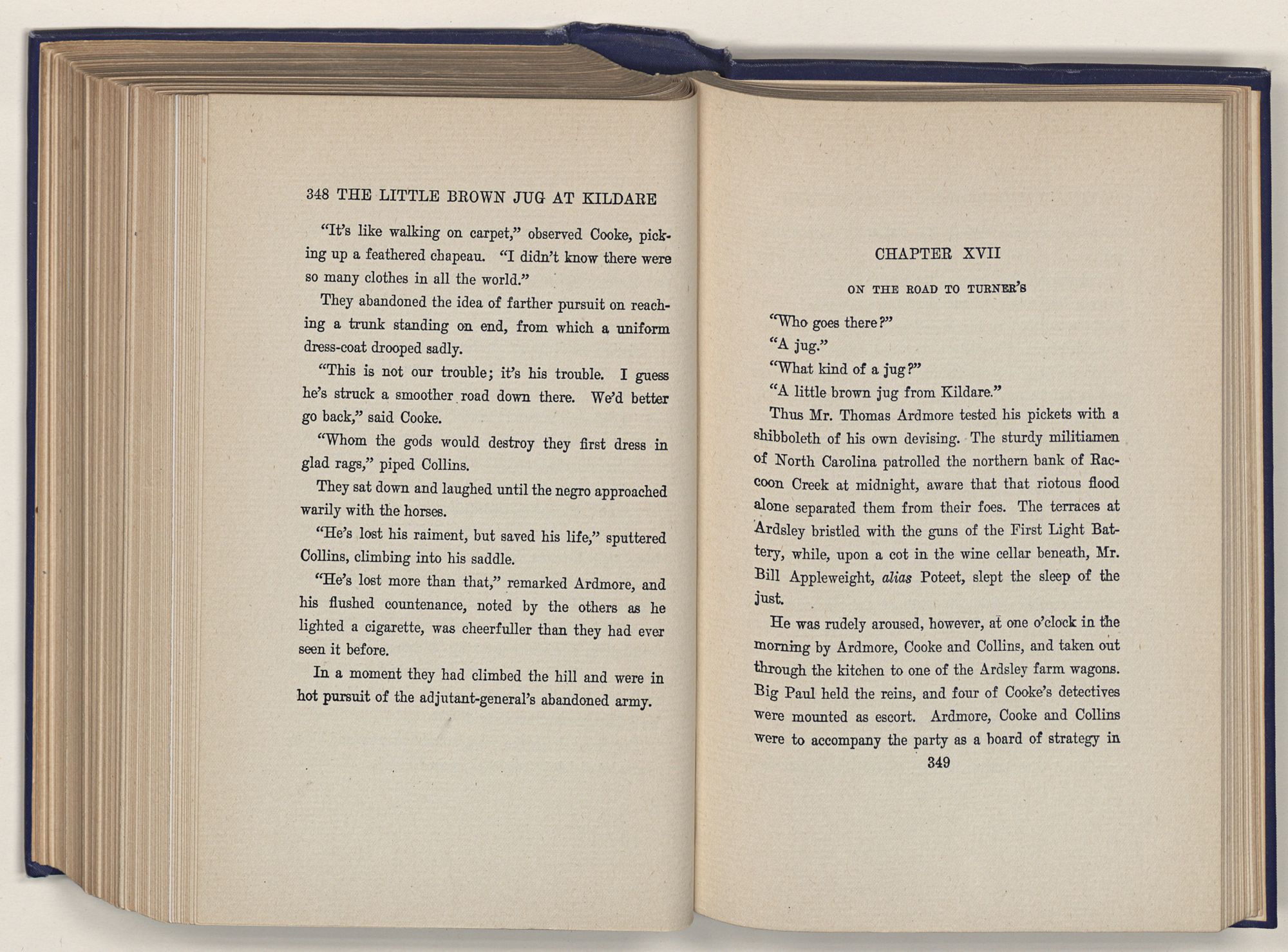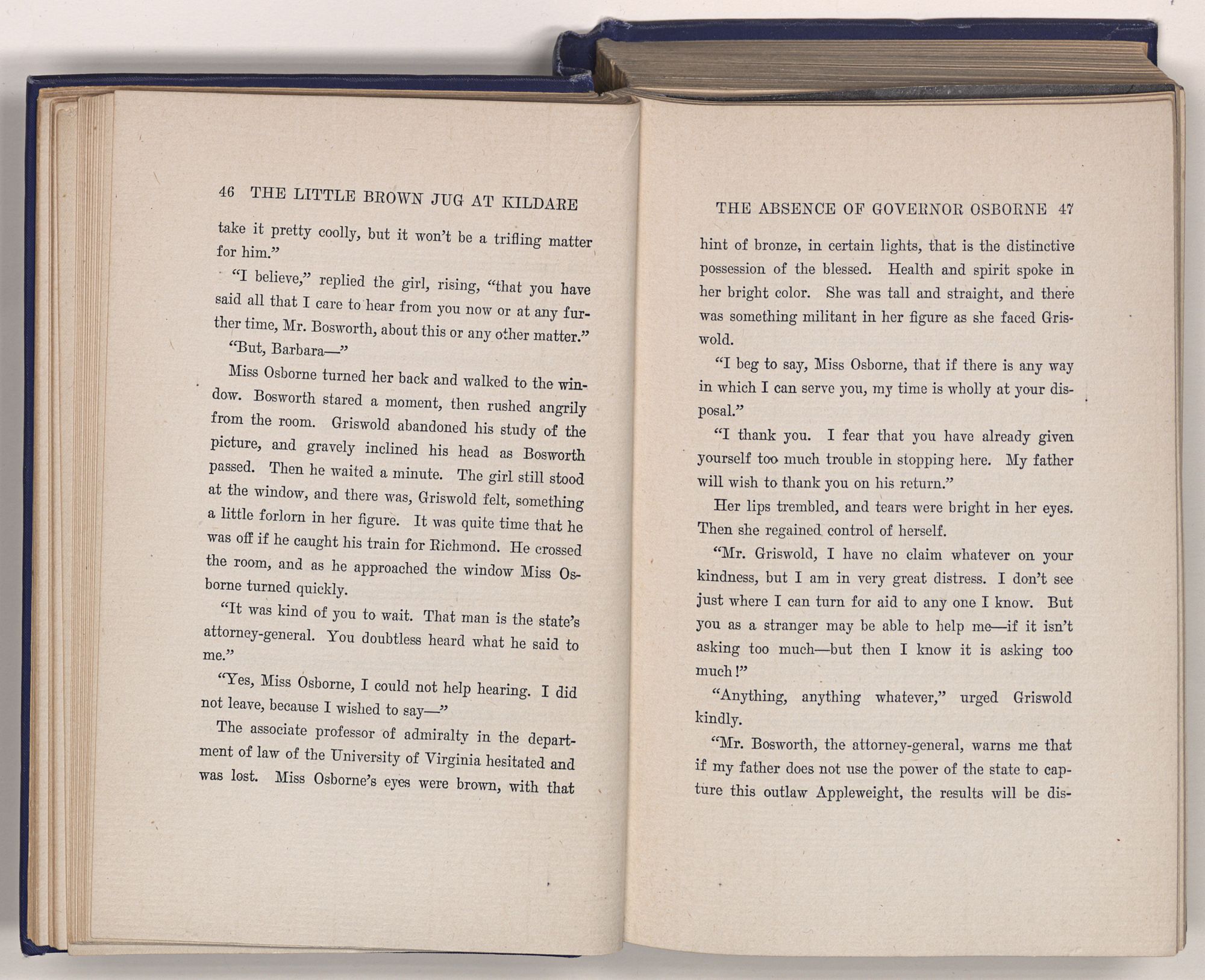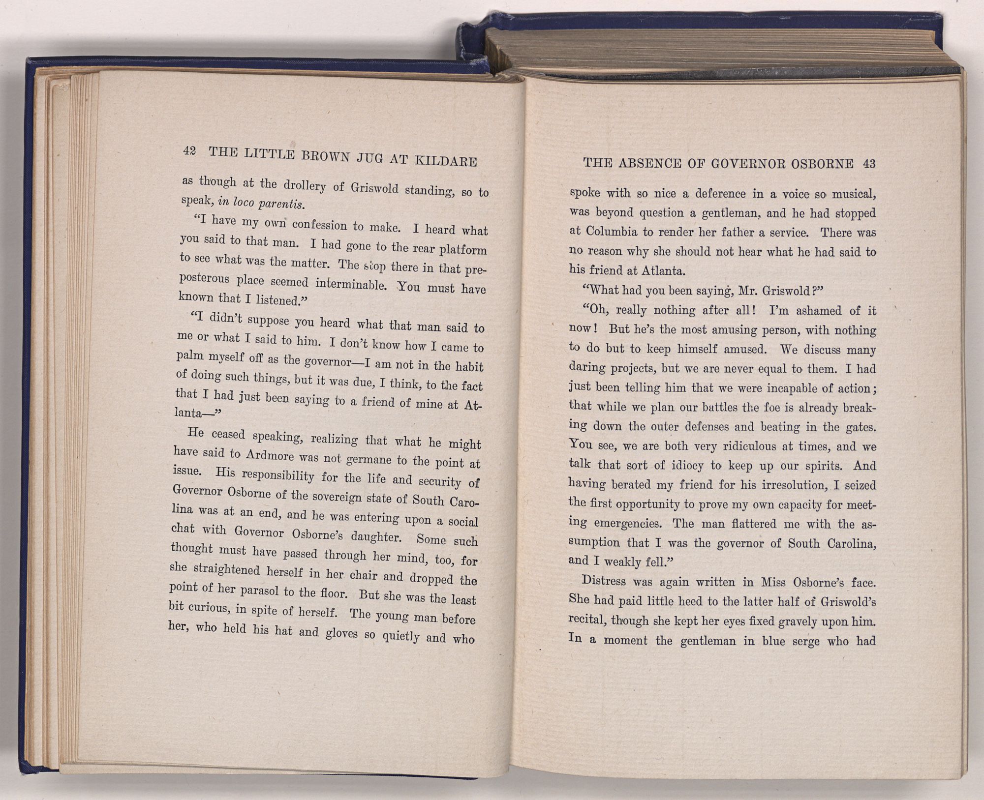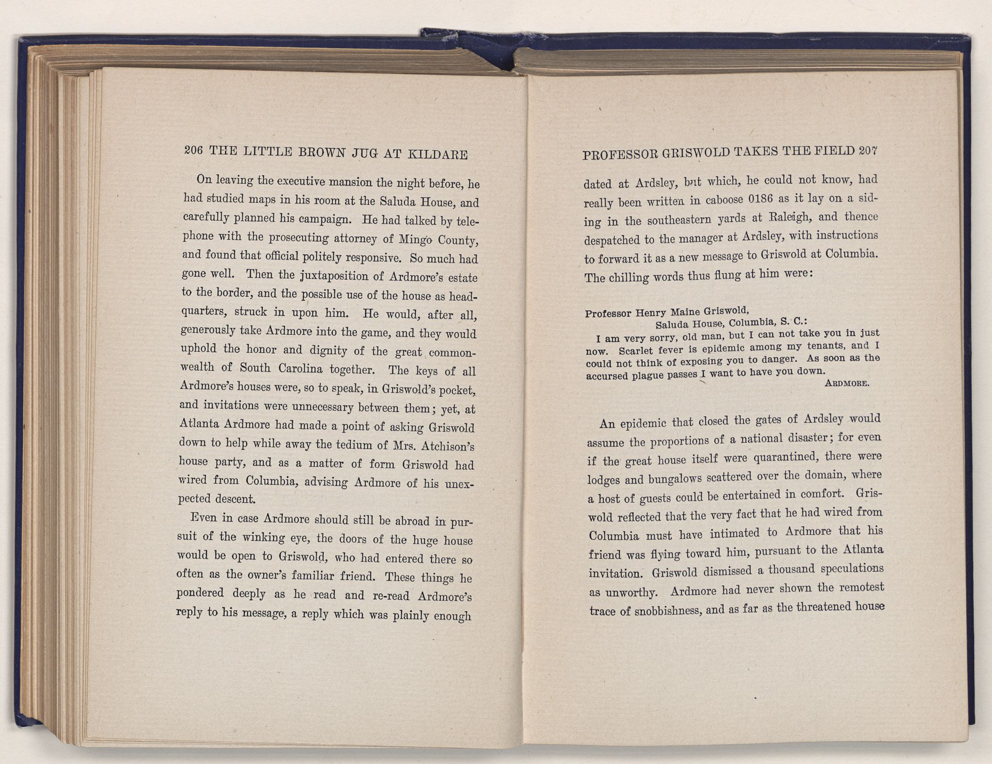 Both governors had at almost the same moment turned down their glasses. It even seemed that they had been drilled in the part, so dexterous were they in reversing them, so nimbly did they put from them the hope of wine. The members of the house-party noted this act of the two governors with well-bred surprise; and Ardmore was grieved, feeling that in some measure the illustrious guests were criticizing his hospitality. The butler at this moment spoke to him, and much relieved he smiled and nodded. A moment later two jugs, two little brown jugs, were carried in, and one was placed quietly in front of each governor at precisely the same moment. Expectation was instantly a-tiptoe.