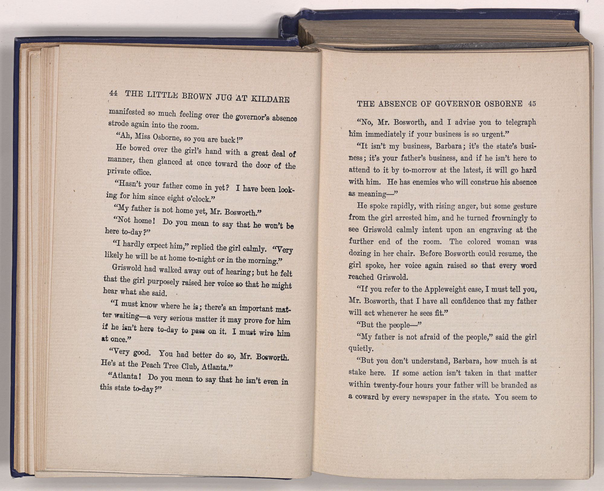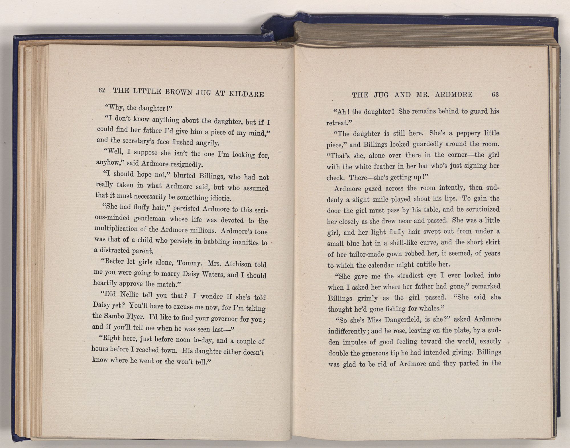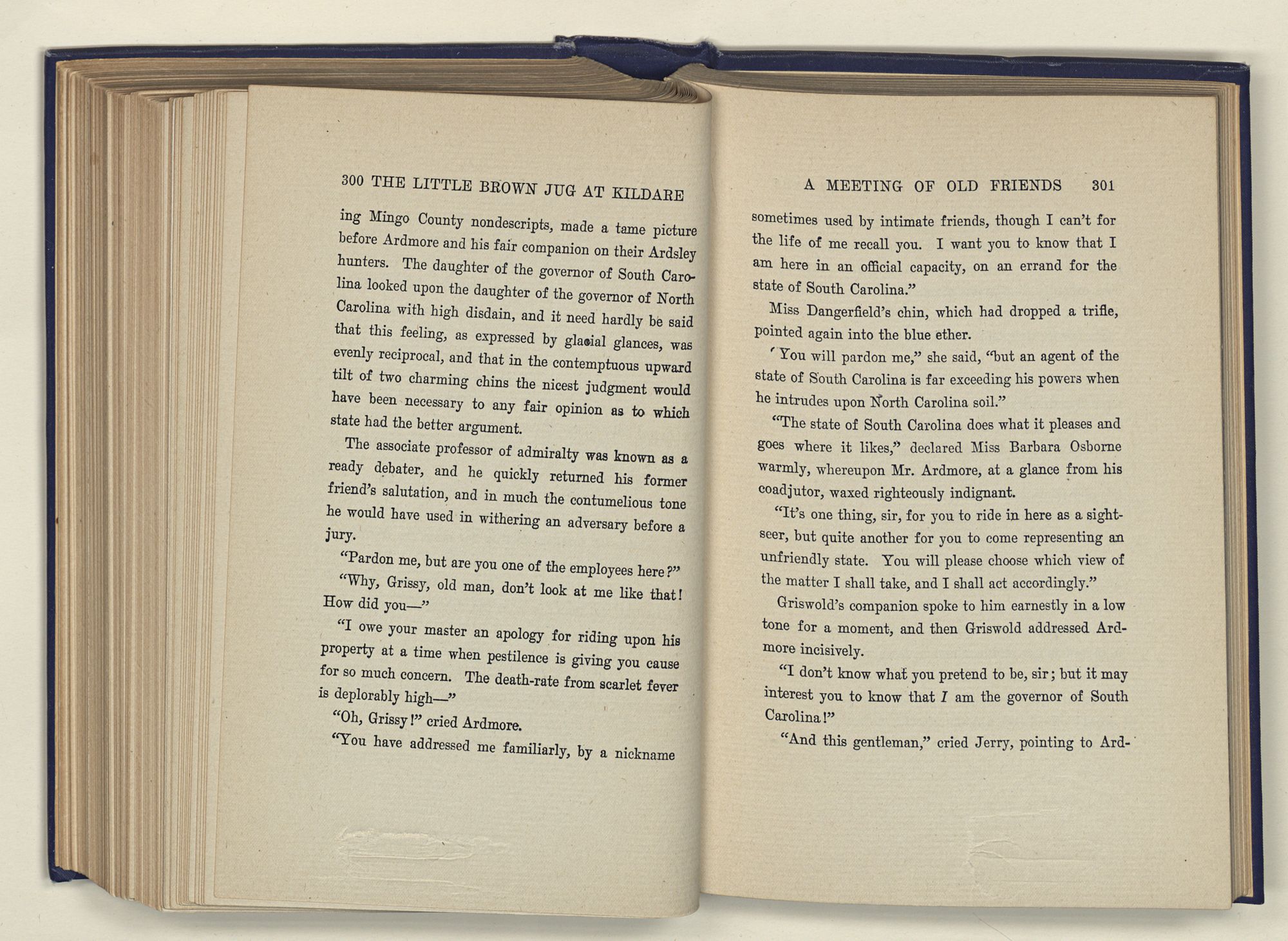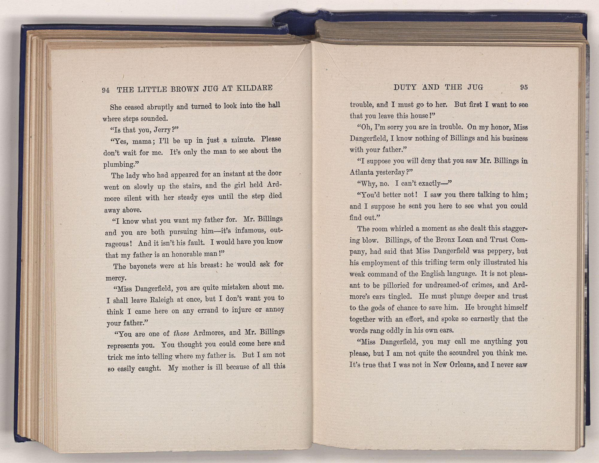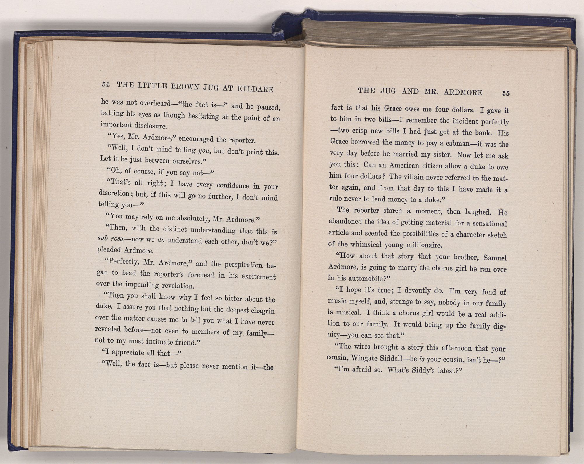 Both governors had at almost the same moment turned down their glasses. It even seemed that they had been drilled in the part, so dexterous were they in reversing them, so nimbly did they put from them the hope of wine. The members of the house-party noted this act of the two governors with well-bred surprise; and Ardmore was grieved, feeling that in some measure the illustrious guests were criticizing his hospitality. The butler at this moment spoke to him, and much relieved he smiled and nodded. A moment later two jugs, two little brown jugs, were carried in, and one was placed quietly in front of each governor at precisely the same moment. Expectation was instantly a-tiptoe.