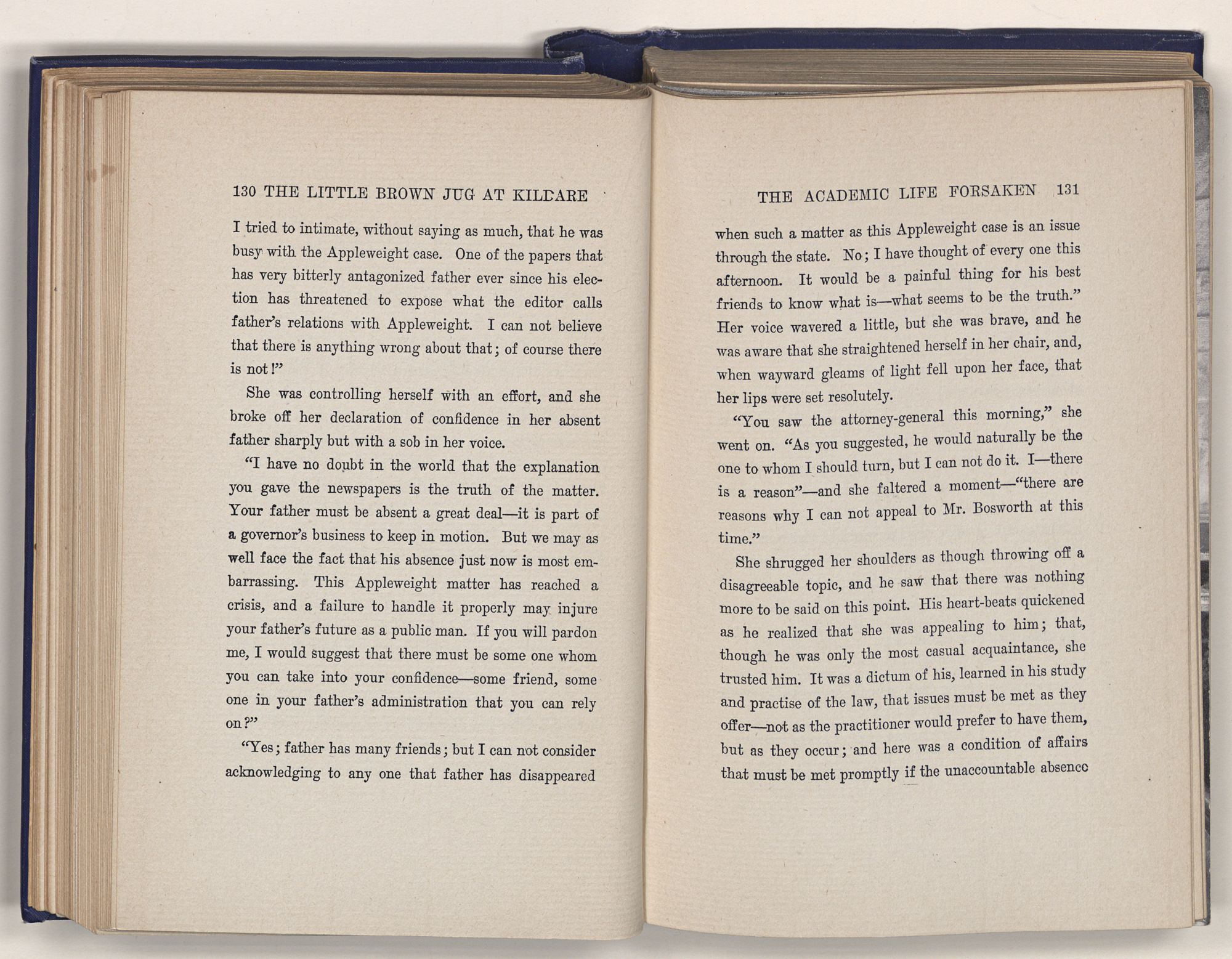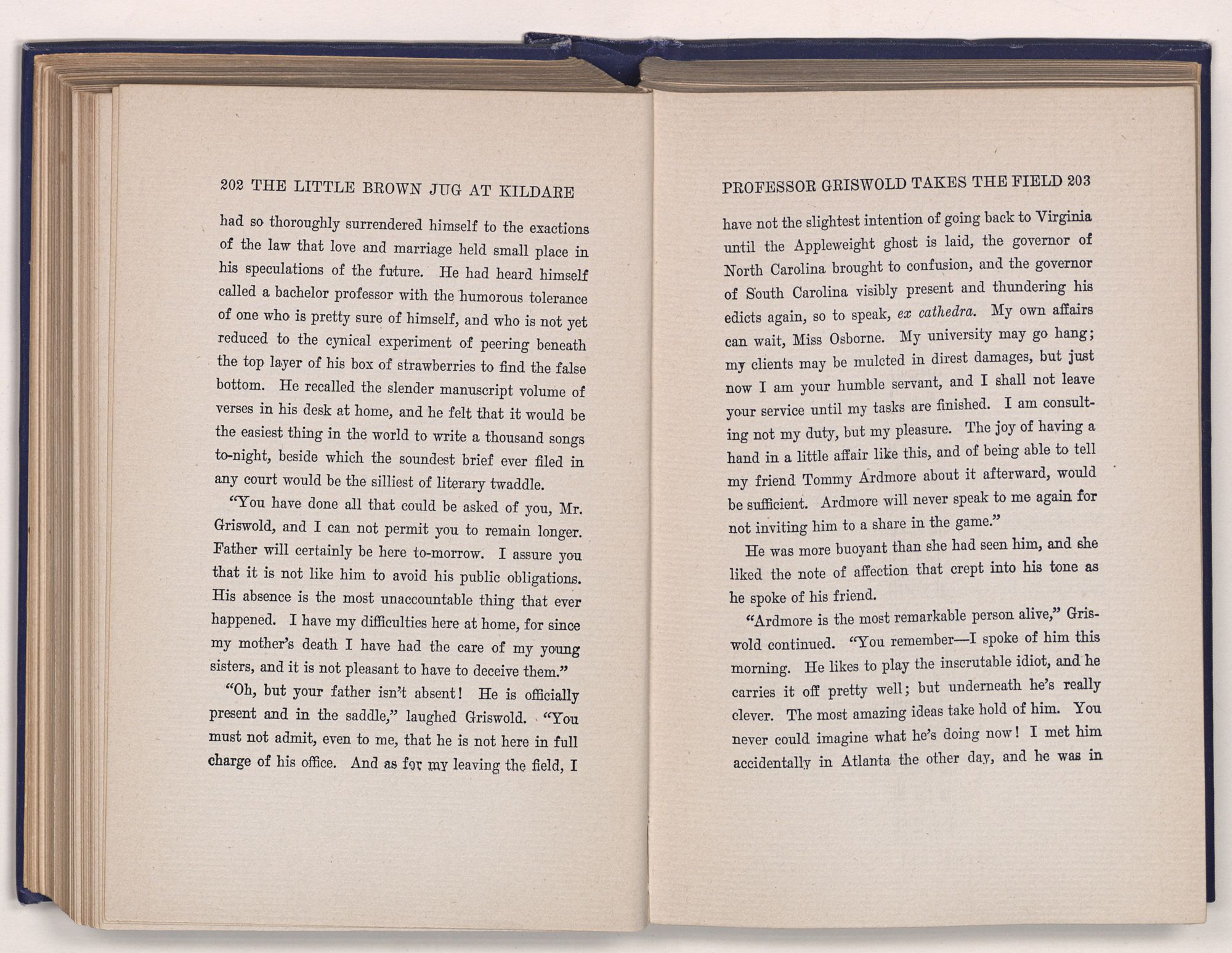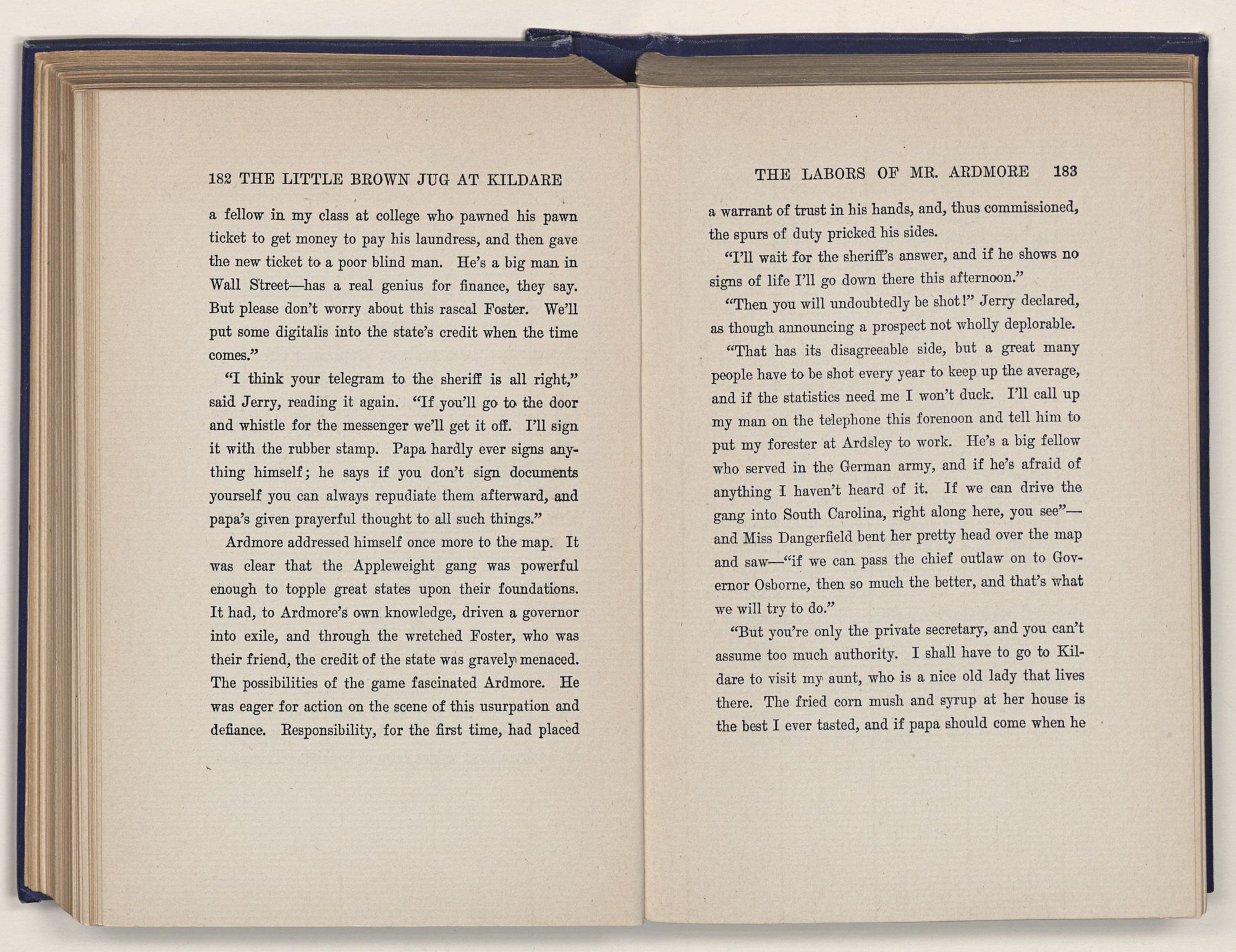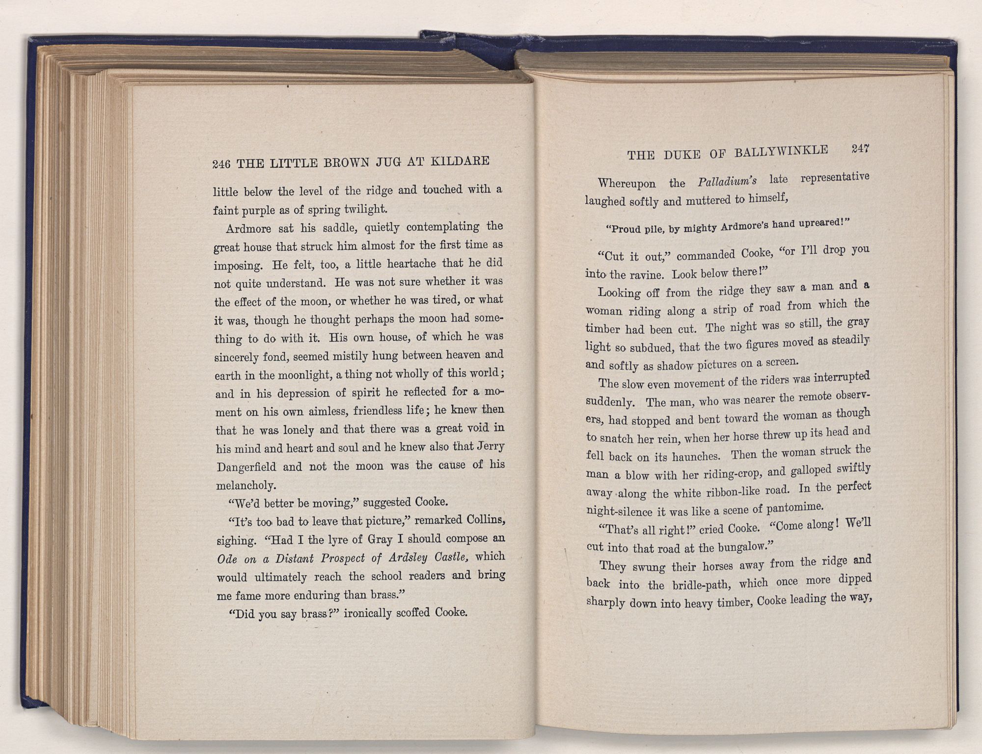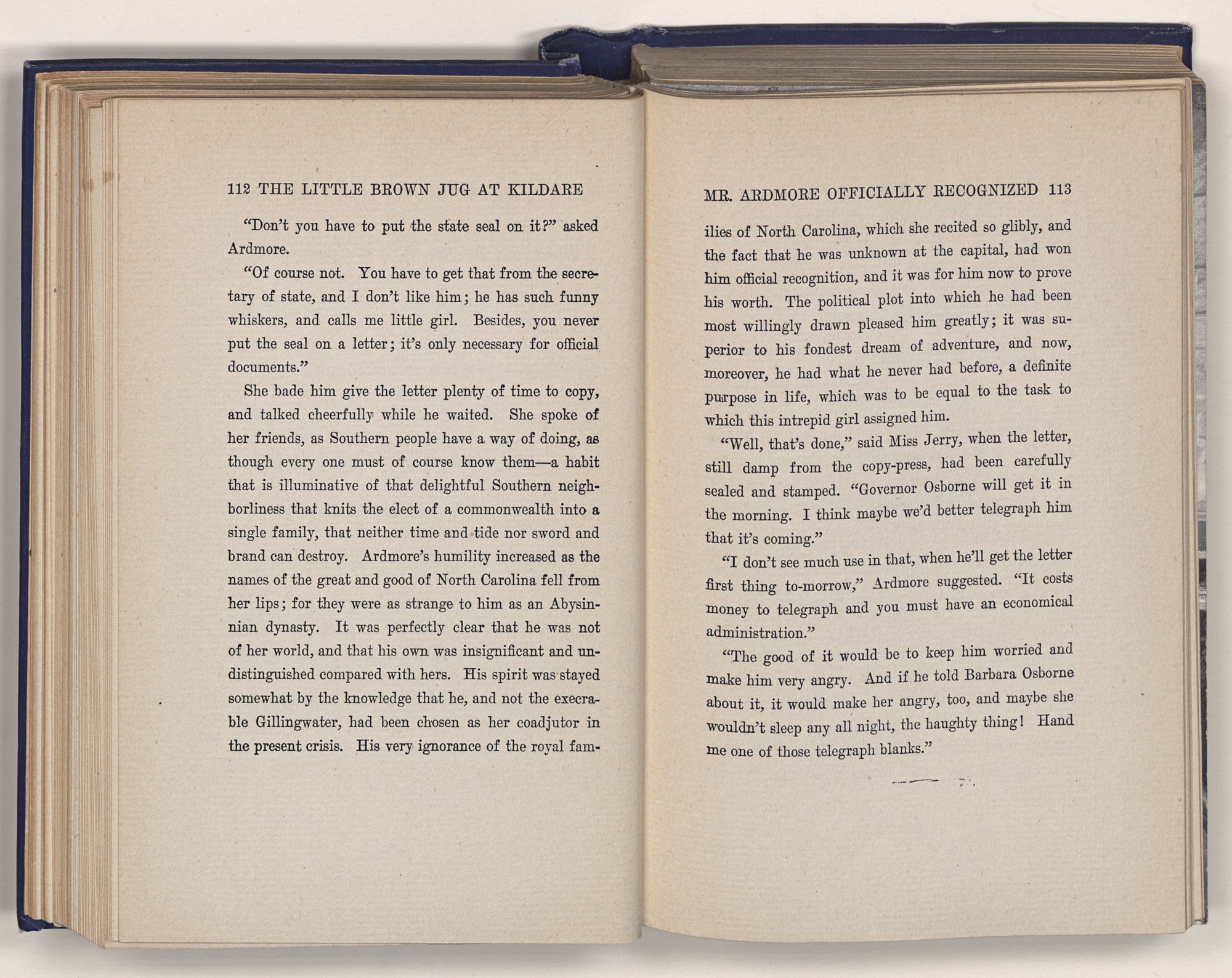 Both governors had at almost the same moment turned down their glasses. It even seemed that they had been drilled in the part, so dexterous were they in reversing them, so nimbly did they put from them the hope of wine. The members of the house-party noted this act of the two governors with well-bred surprise; and Ardmore was grieved, feeling that in some measure the illustrious guests were criticizing his hospitality. The butler at this moment spoke to him, and much relieved he smiled and nodded. A moment later two jugs, two little brown jugs, were carried in, and one was placed quietly in front of each governor at precisely the same moment. Expectation was instantly a-tiptoe.