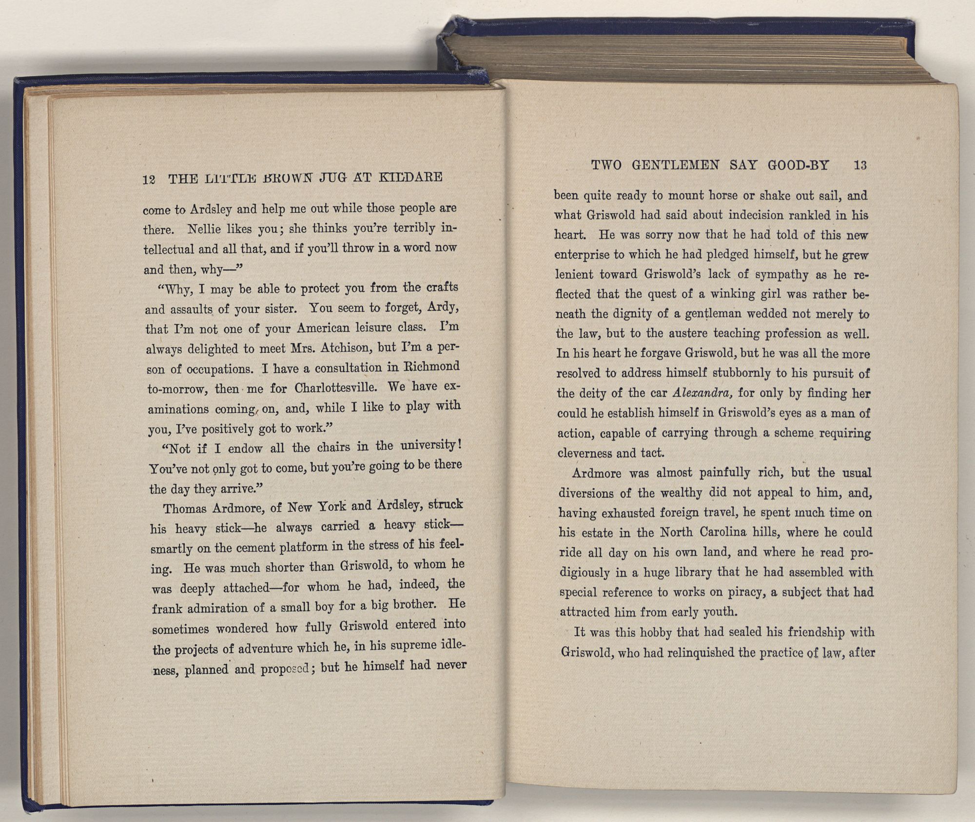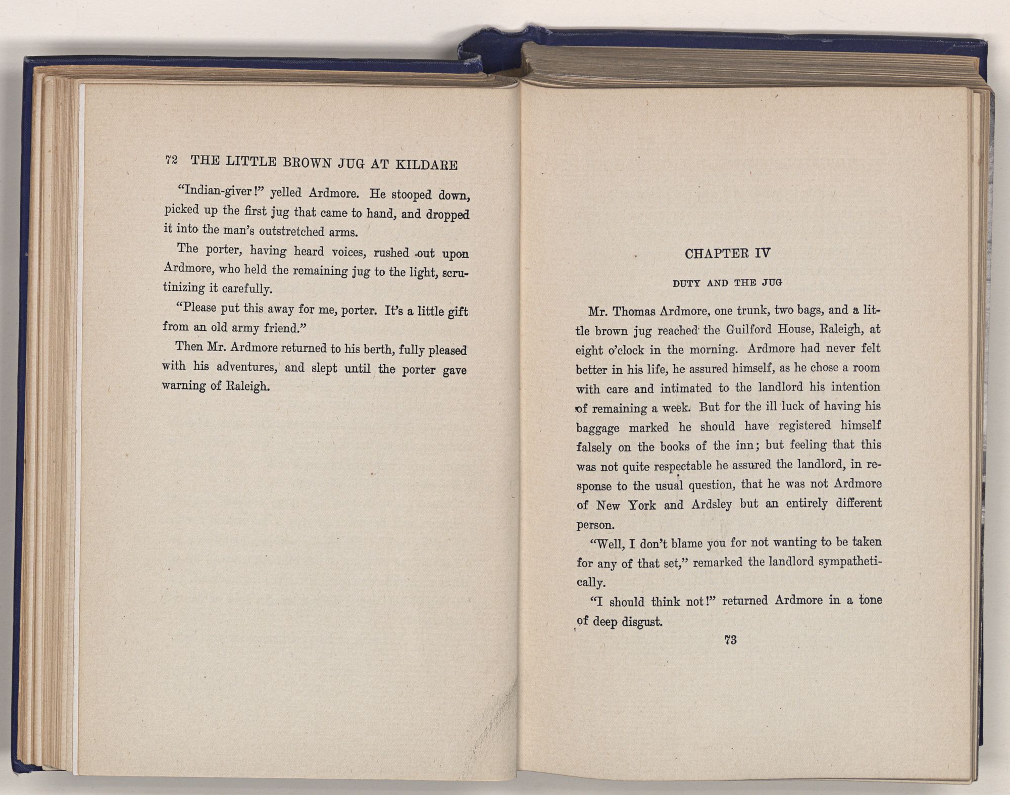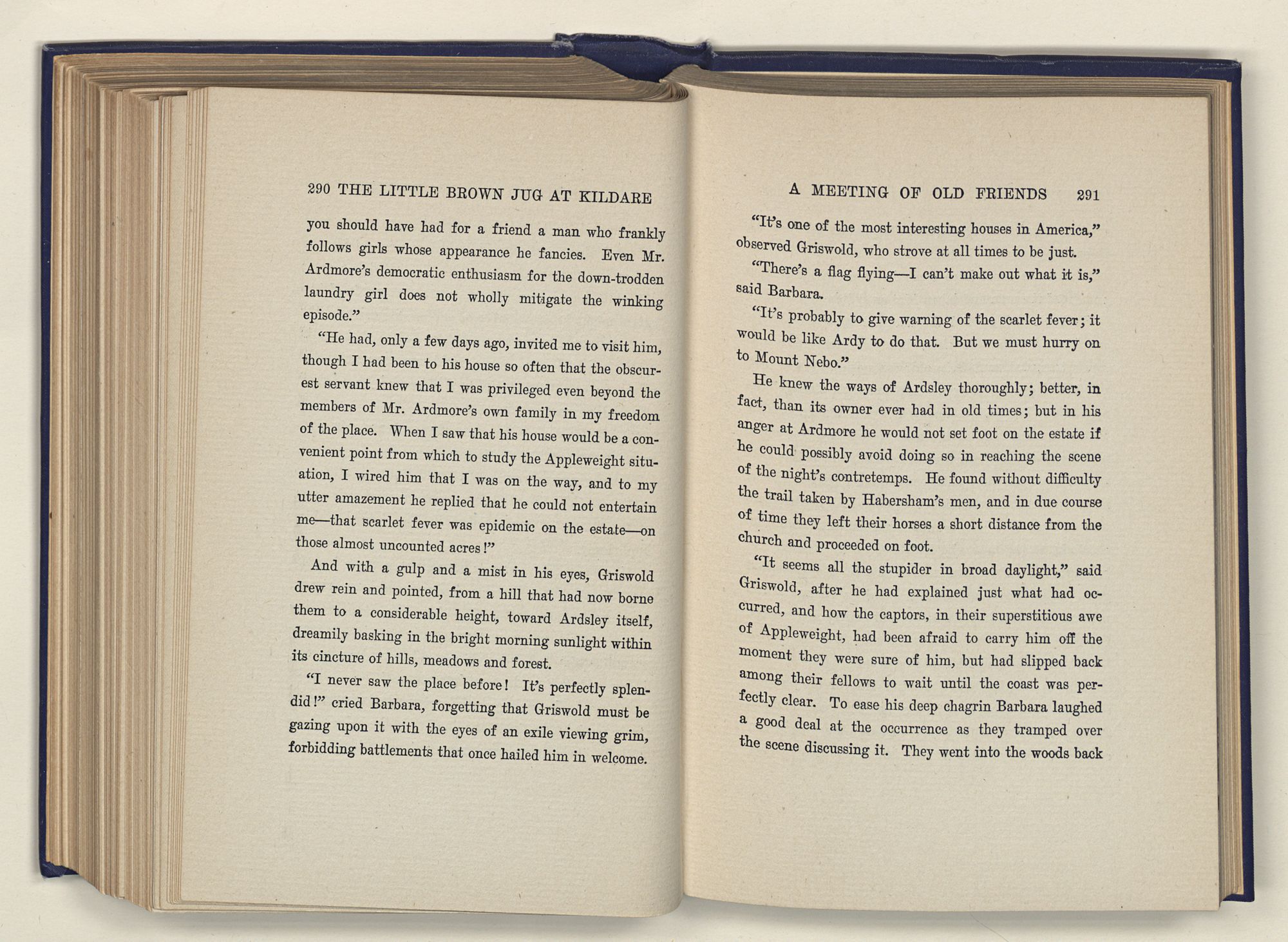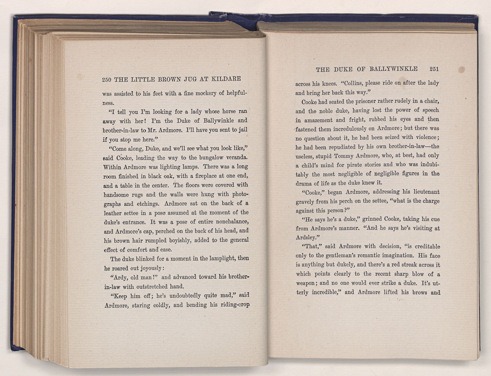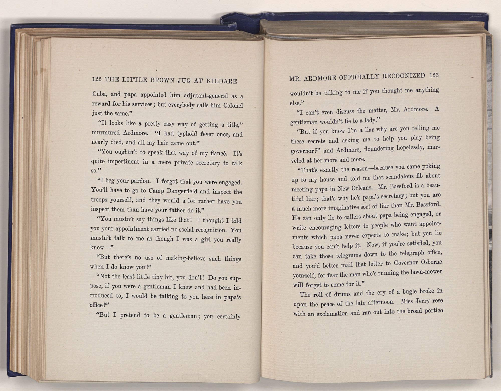 Both governors had at almost the same moment turned down their glasses. It even seemed that they had been drilled in the part, so dexterous were they in reversing them, so nimbly did they put from them the hope of wine. The members of the house-party noted this act of the two governors with well-bred surprise; and Ardmore was grieved, feeling that in some measure the illustrious guests were criticizing his hospitality. The butler at this moment spoke to him, and much relieved he smiled and nodded. A moment later two jugs, two little brown jugs, were carried in, and one was placed quietly in front of each governor at precisely the same moment. Expectation was instantly a-tiptoe.