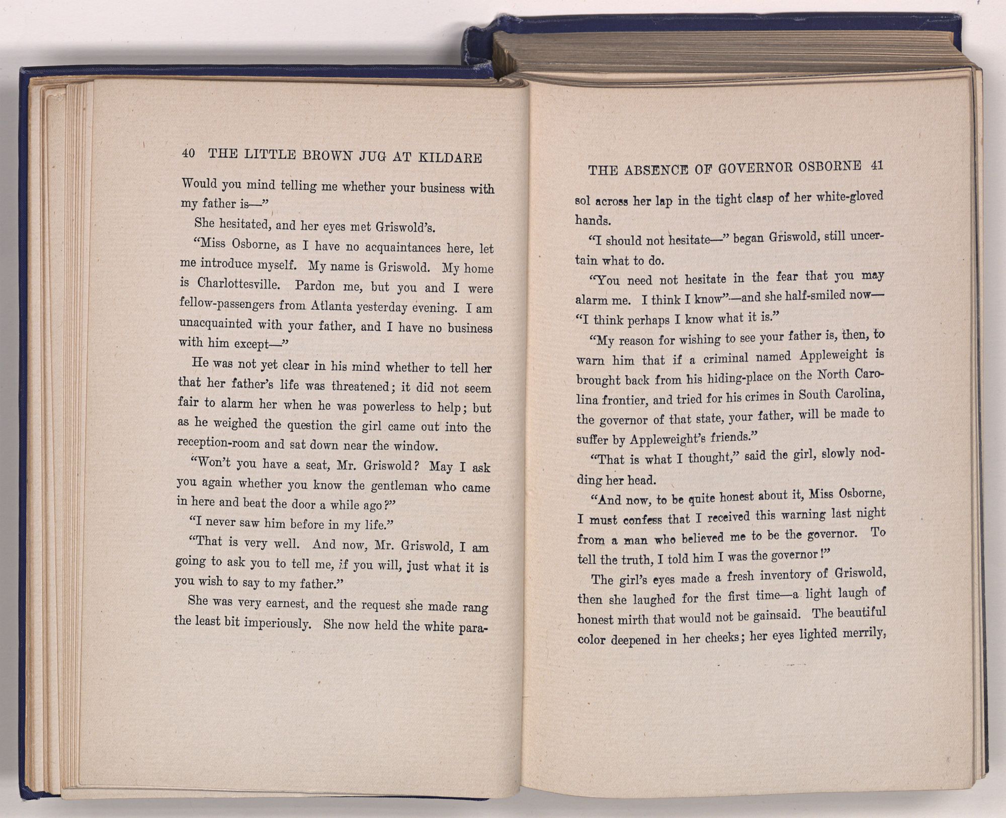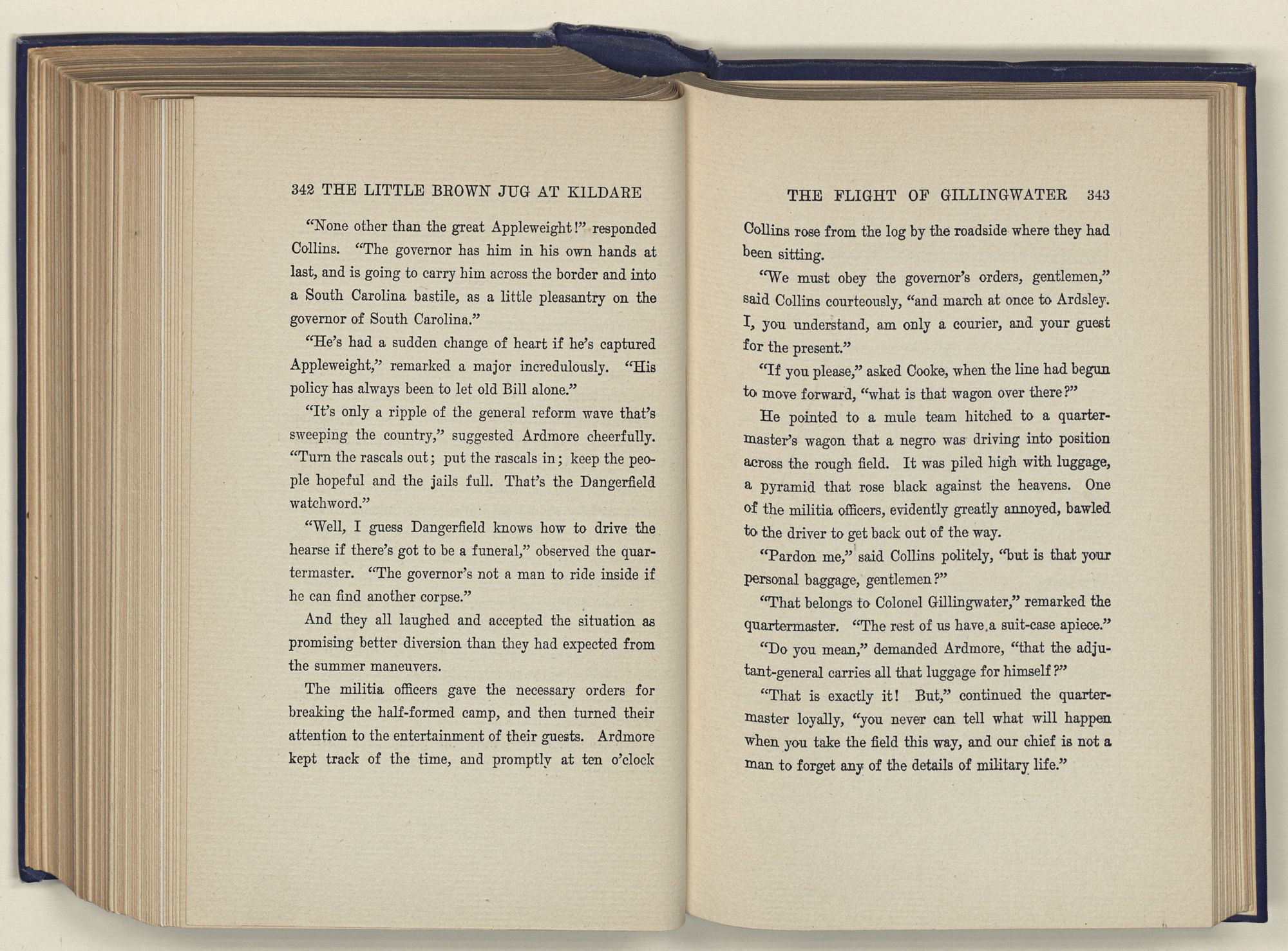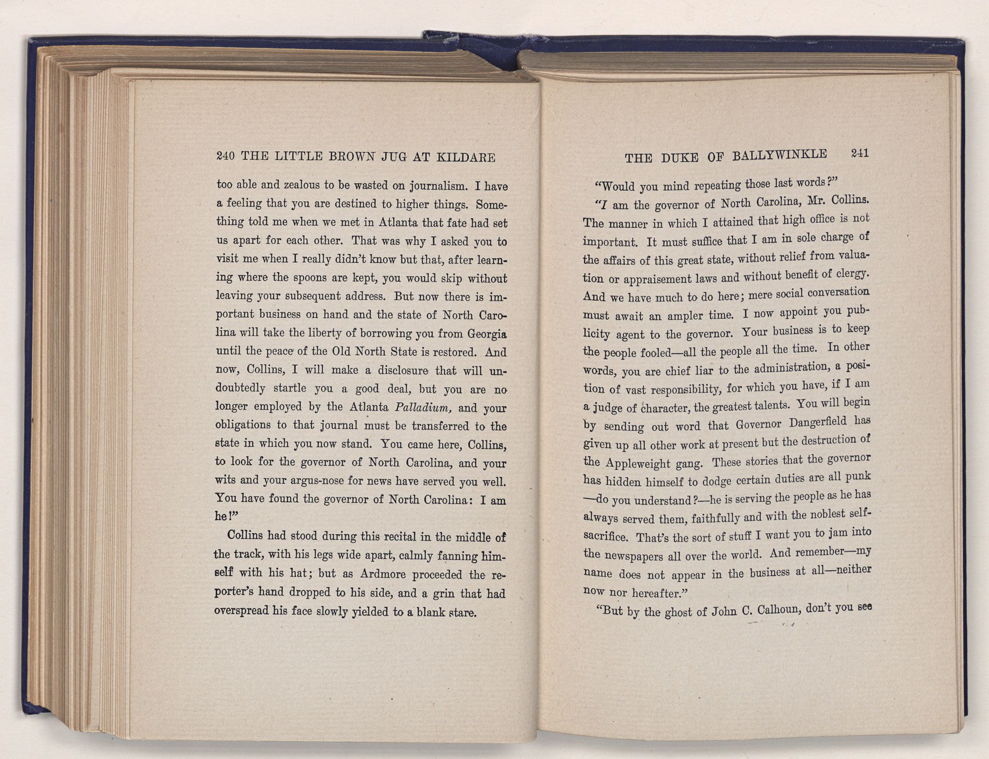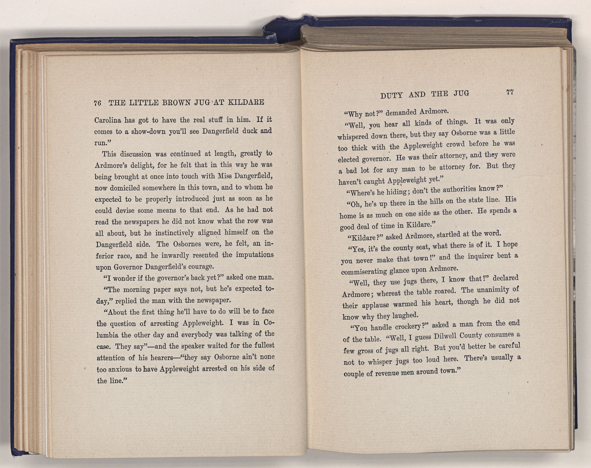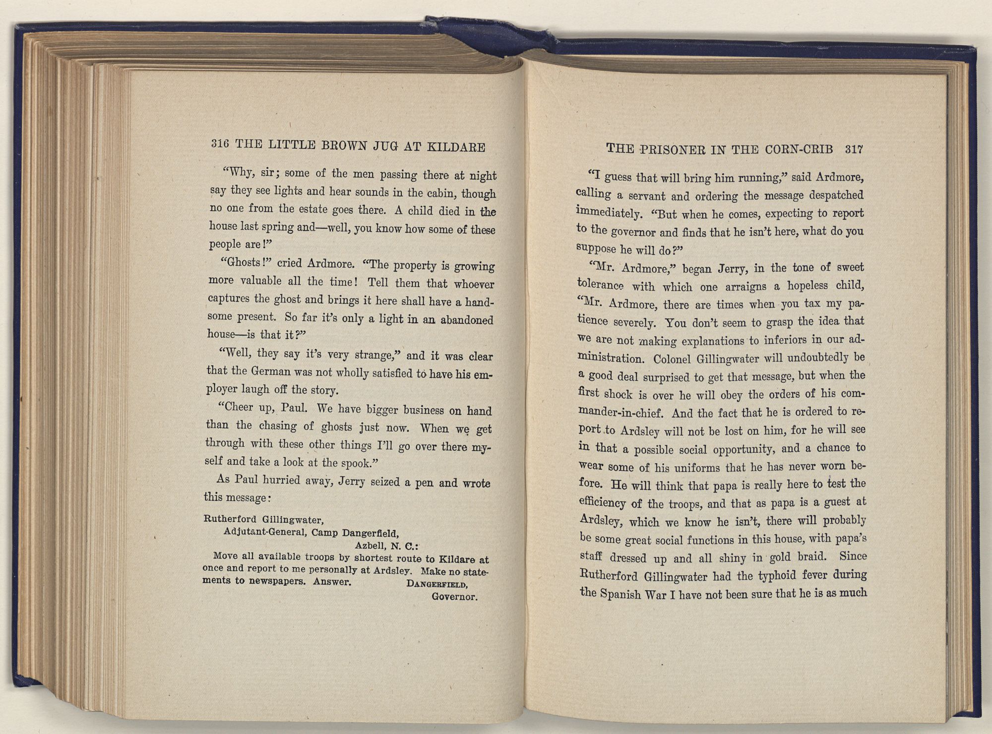 “Gentlemen,” said Ardmore, addressing the governors, “these jugs have just been left at the house by our old friend, Mr. Bill Appleweight, alias Poteet, with his compliments, for the governors of the two greatest states in the Union. I note that there's a bit of pink calico around the stopper of Governor Dangerfield's jug, while Governor Osborne's is garnished with blue and white gingham.”