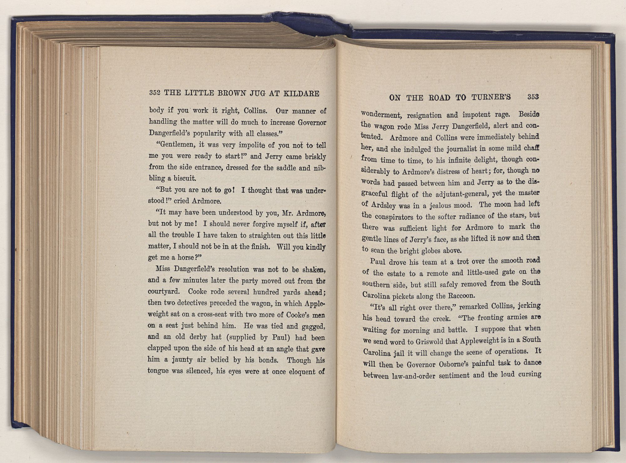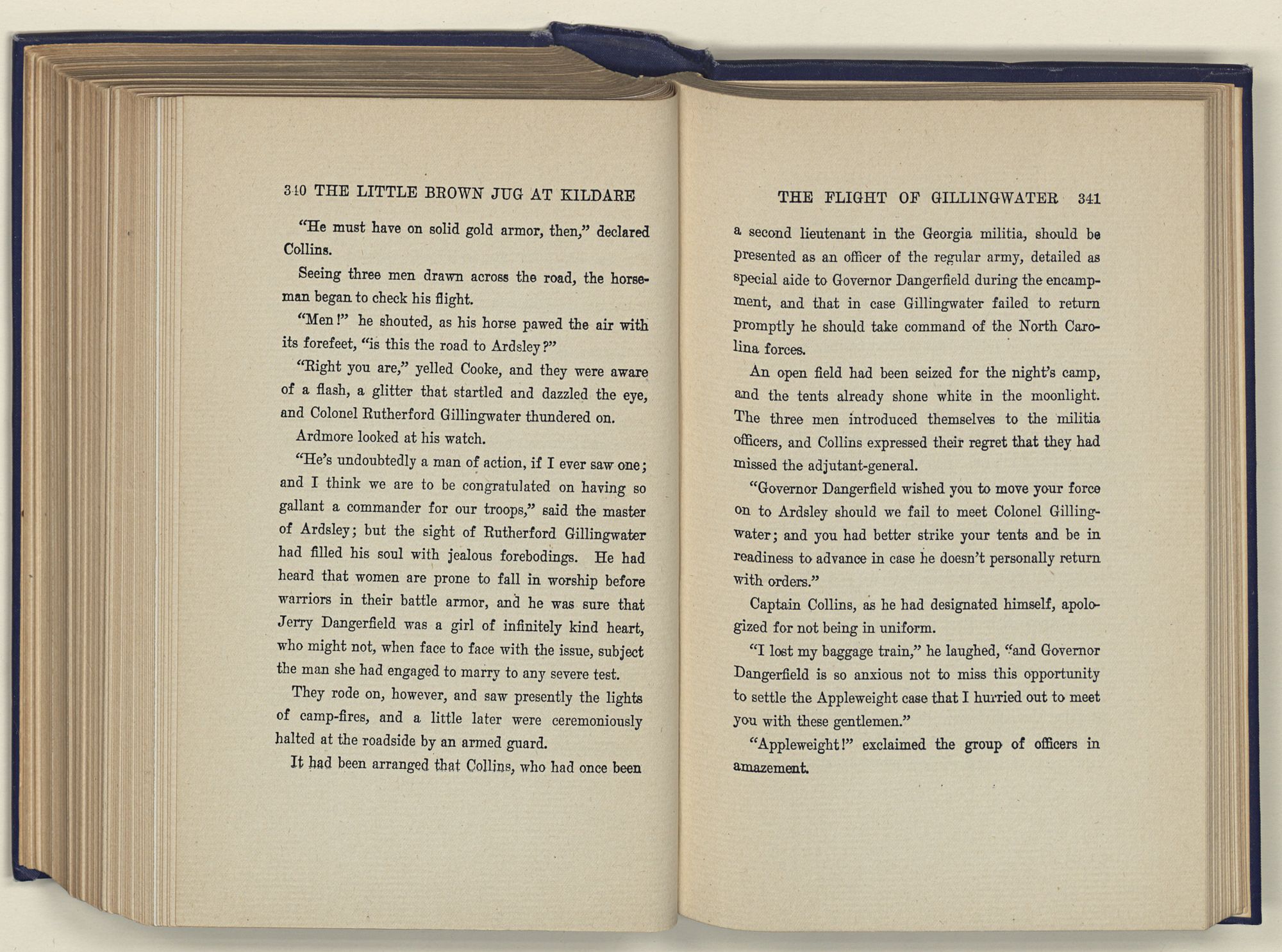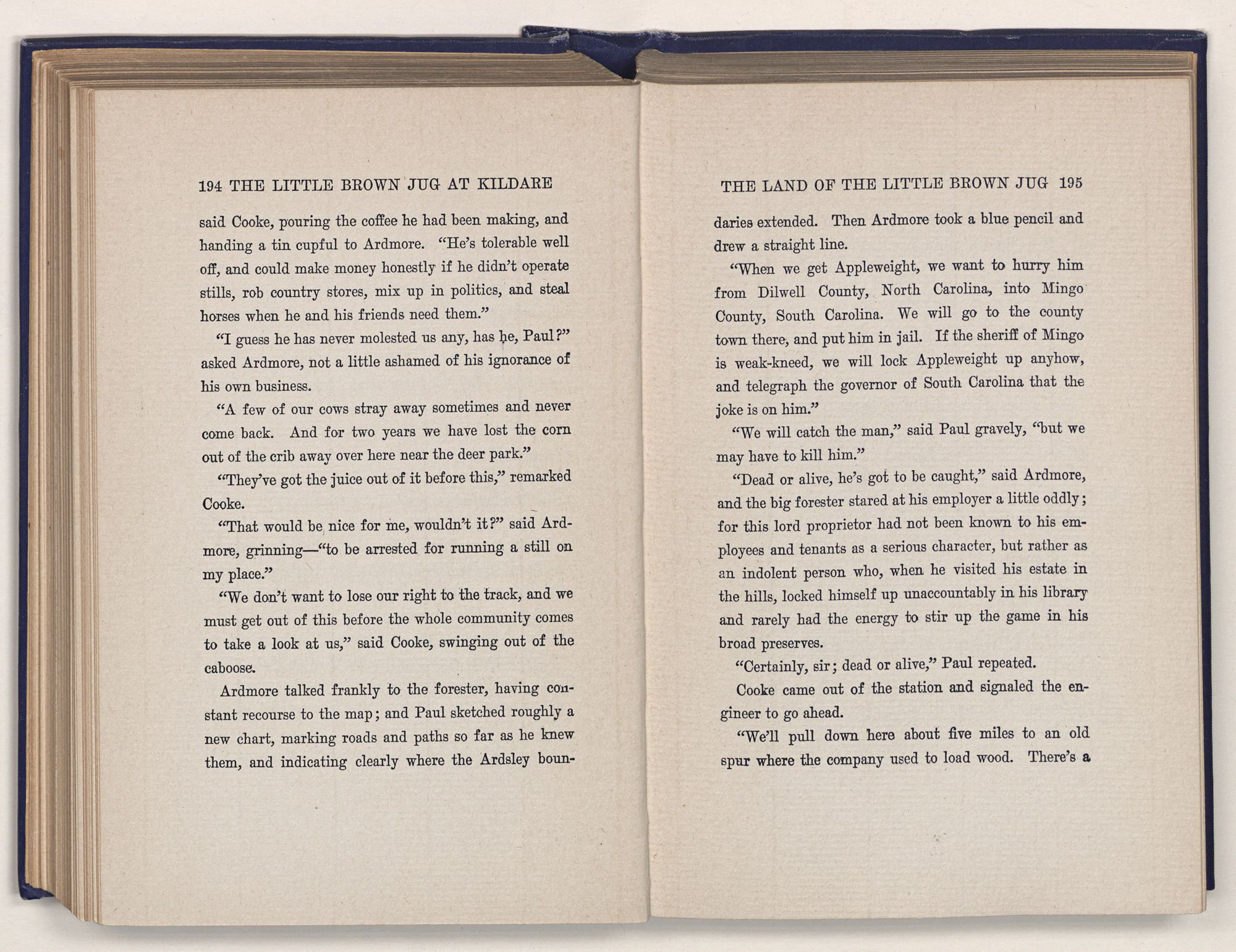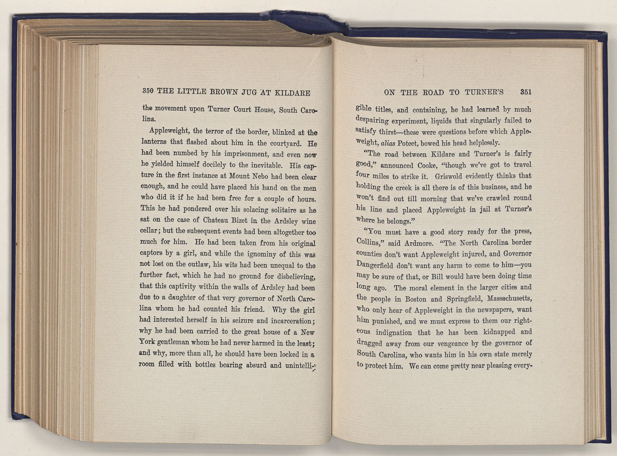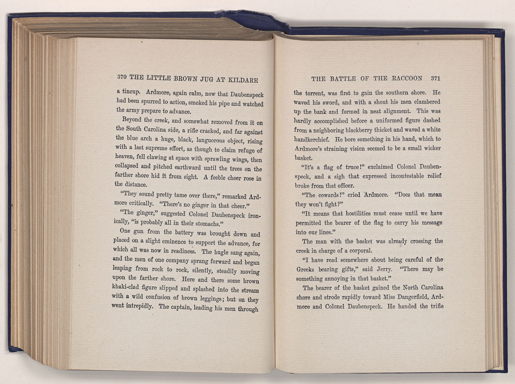 “Gentlemen,” said Ardmore, addressing the governors, “these jugs have just been left at the house by our old friend, Mr. Bill Appleweight, alias Poteet, with his compliments, for the governors of the two greatest states in the Union. I note that there's a bit of pink calico around the stopper of Governor Dangerfield's jug, while Governor Osborne's is garnished with blue and white gingham.”