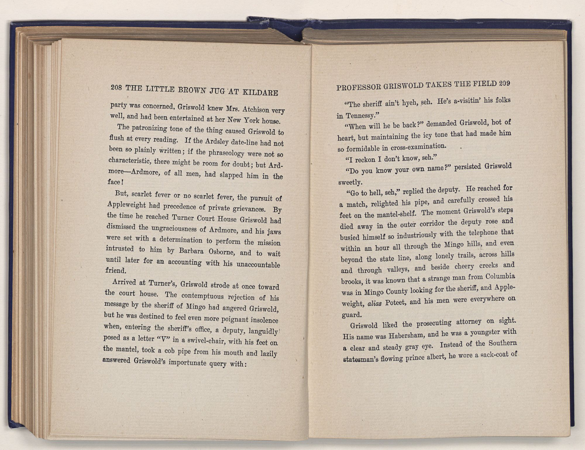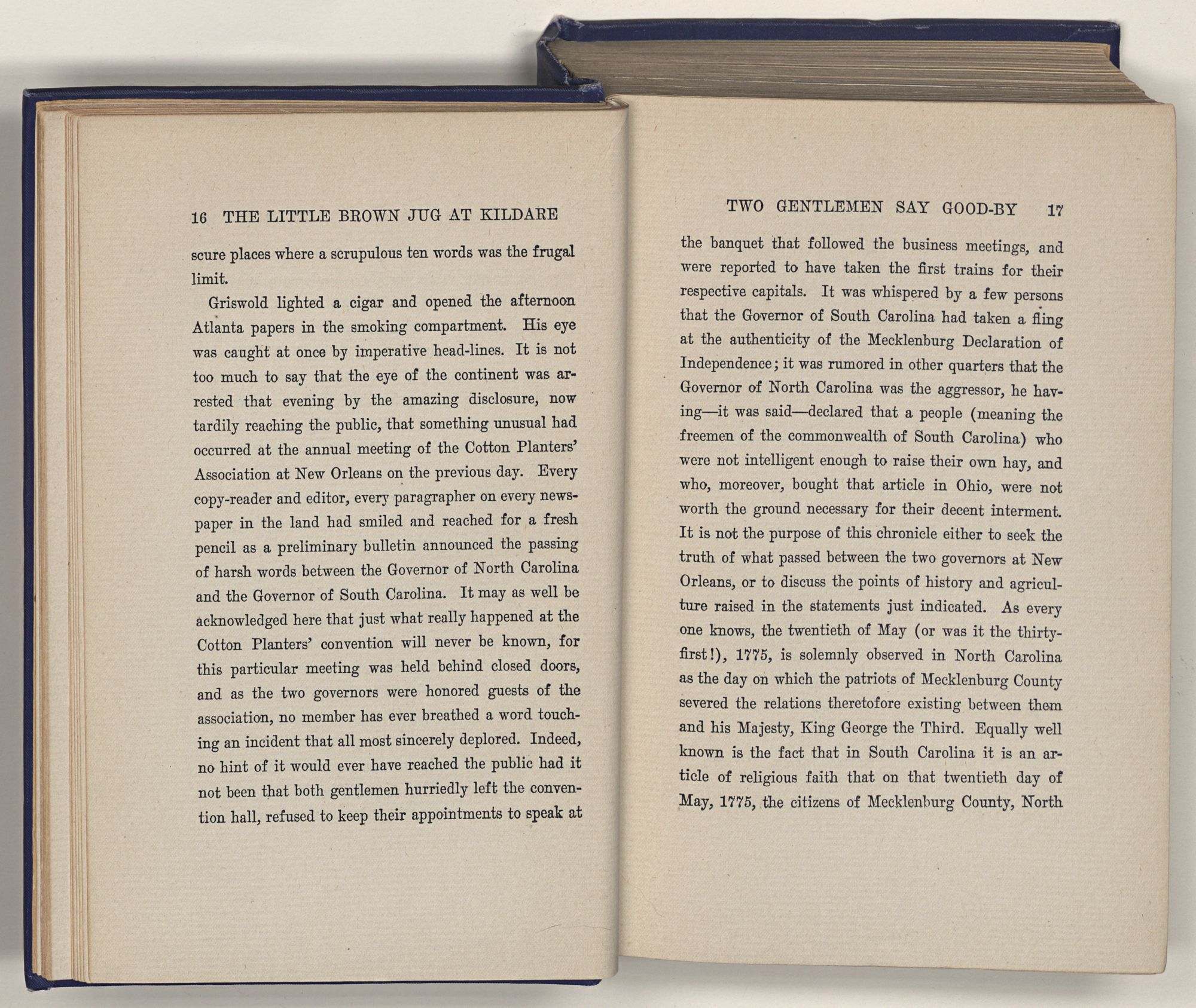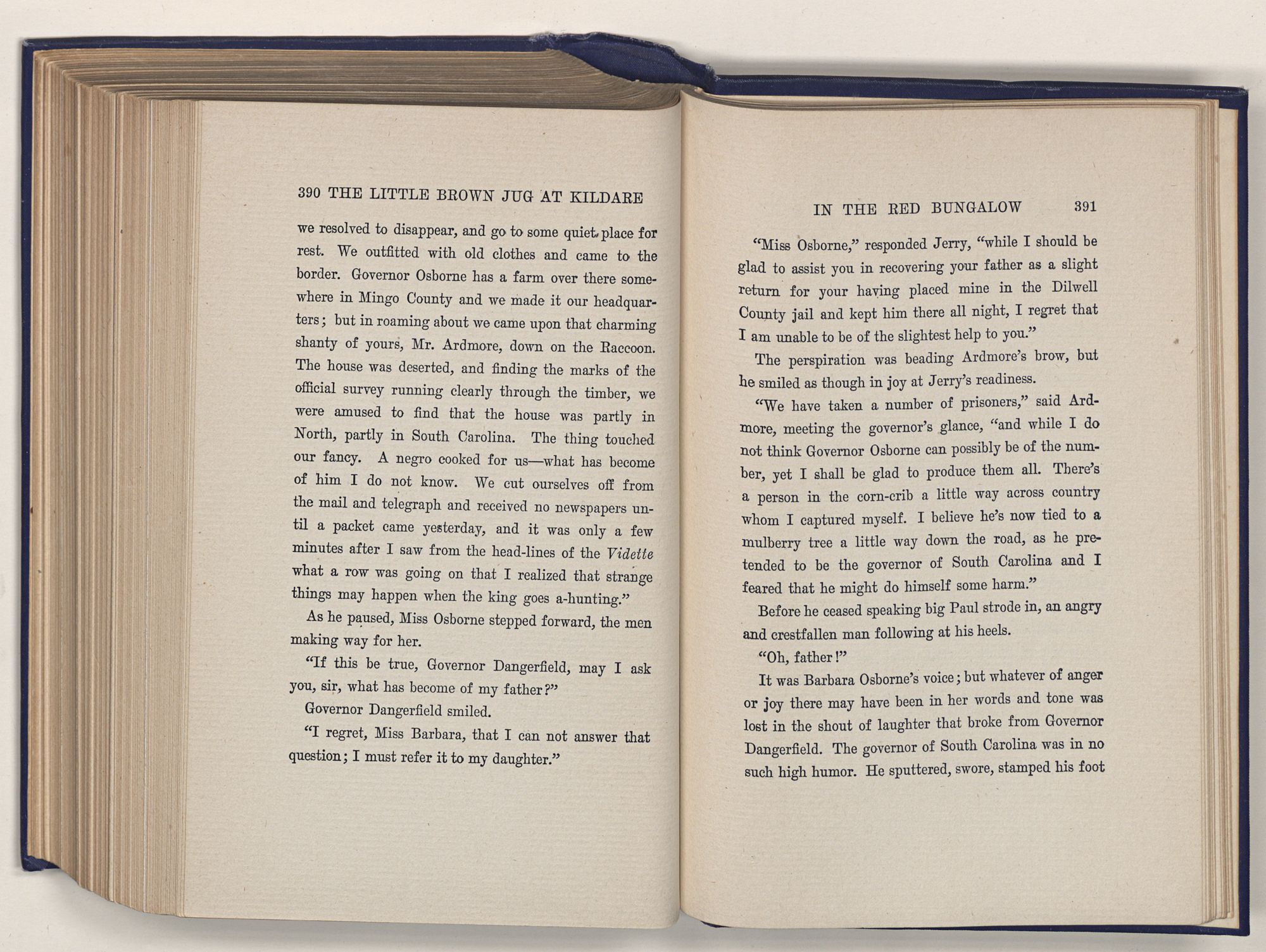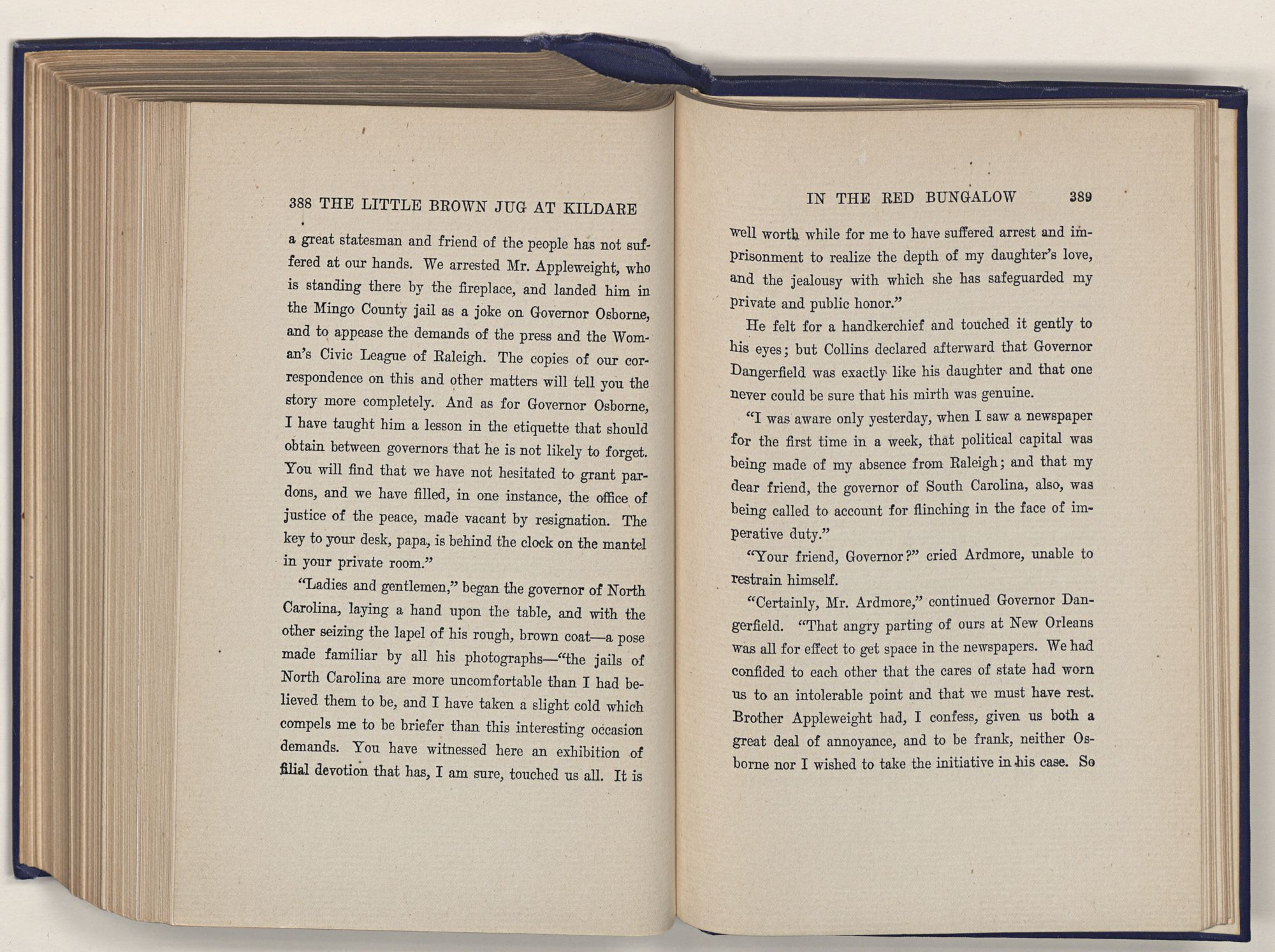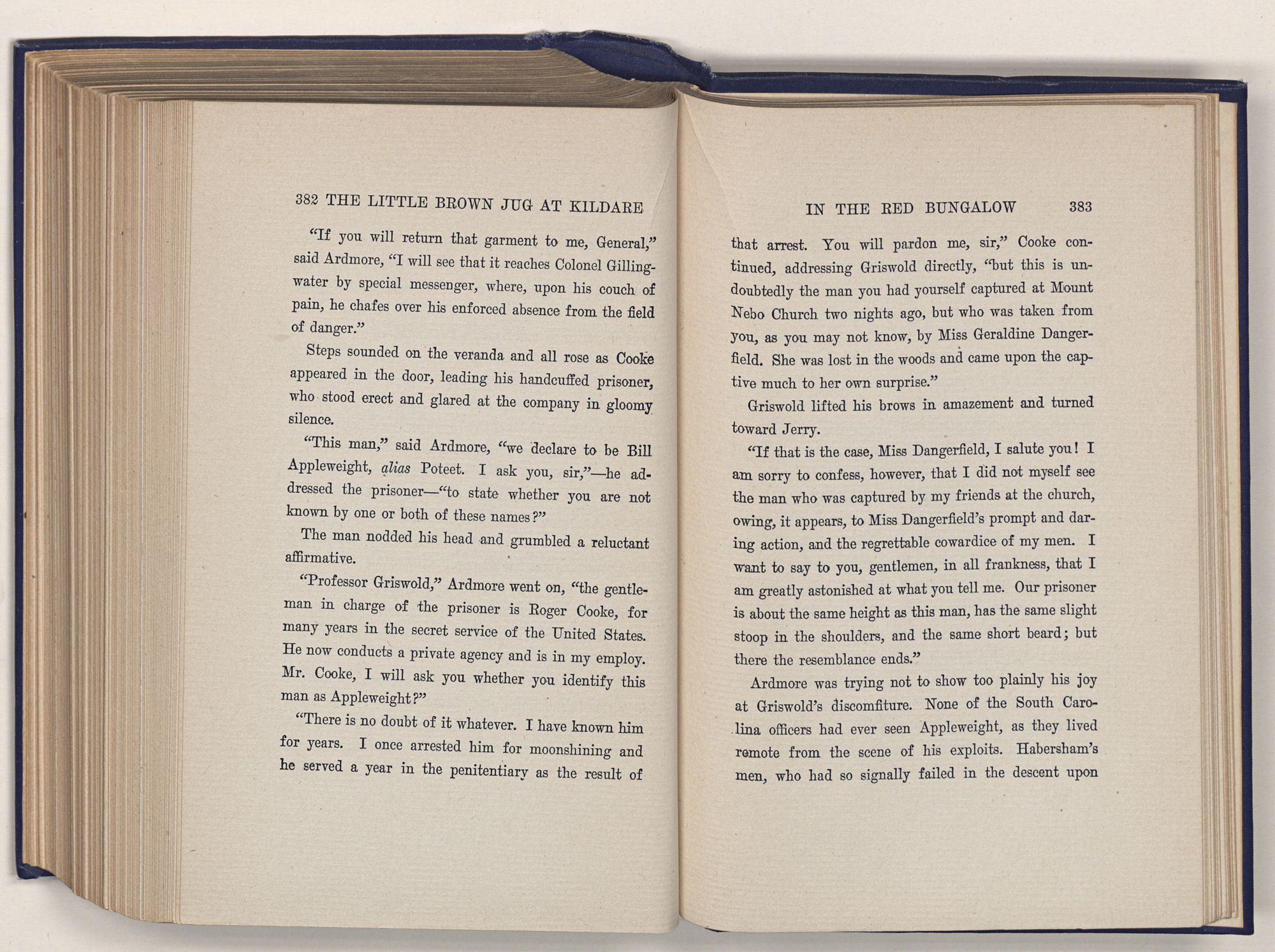 “Gentlemen,” said Ardmore, addressing the governors, “these jugs have just been left at the house by our old friend, Mr. Bill Appleweight, alias Poteet, with his compliments, for the governors of the two greatest states in the Union. I note that there's a bit of pink calico around the stopper of Governor Dangerfield's jug, while Governor Osborne's is garnished with blue and white gingham.”