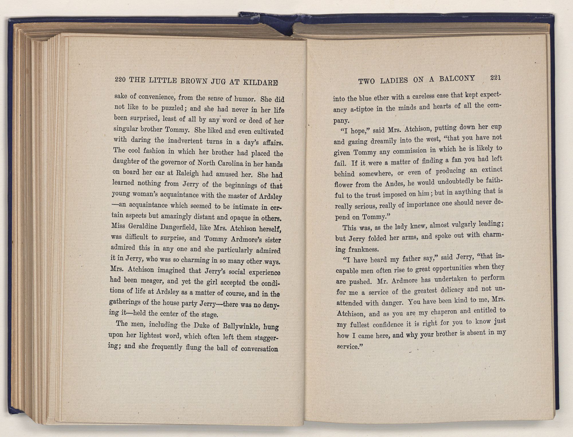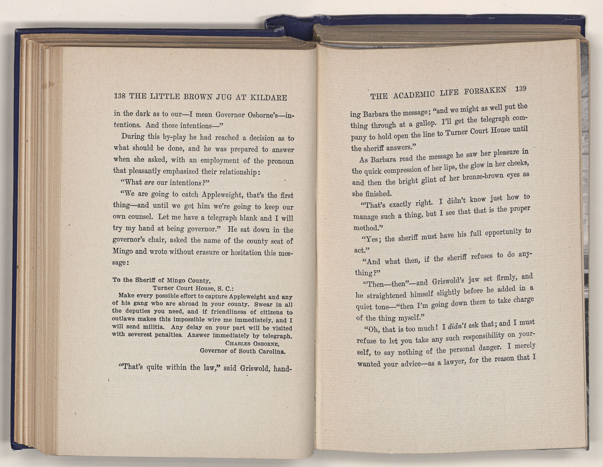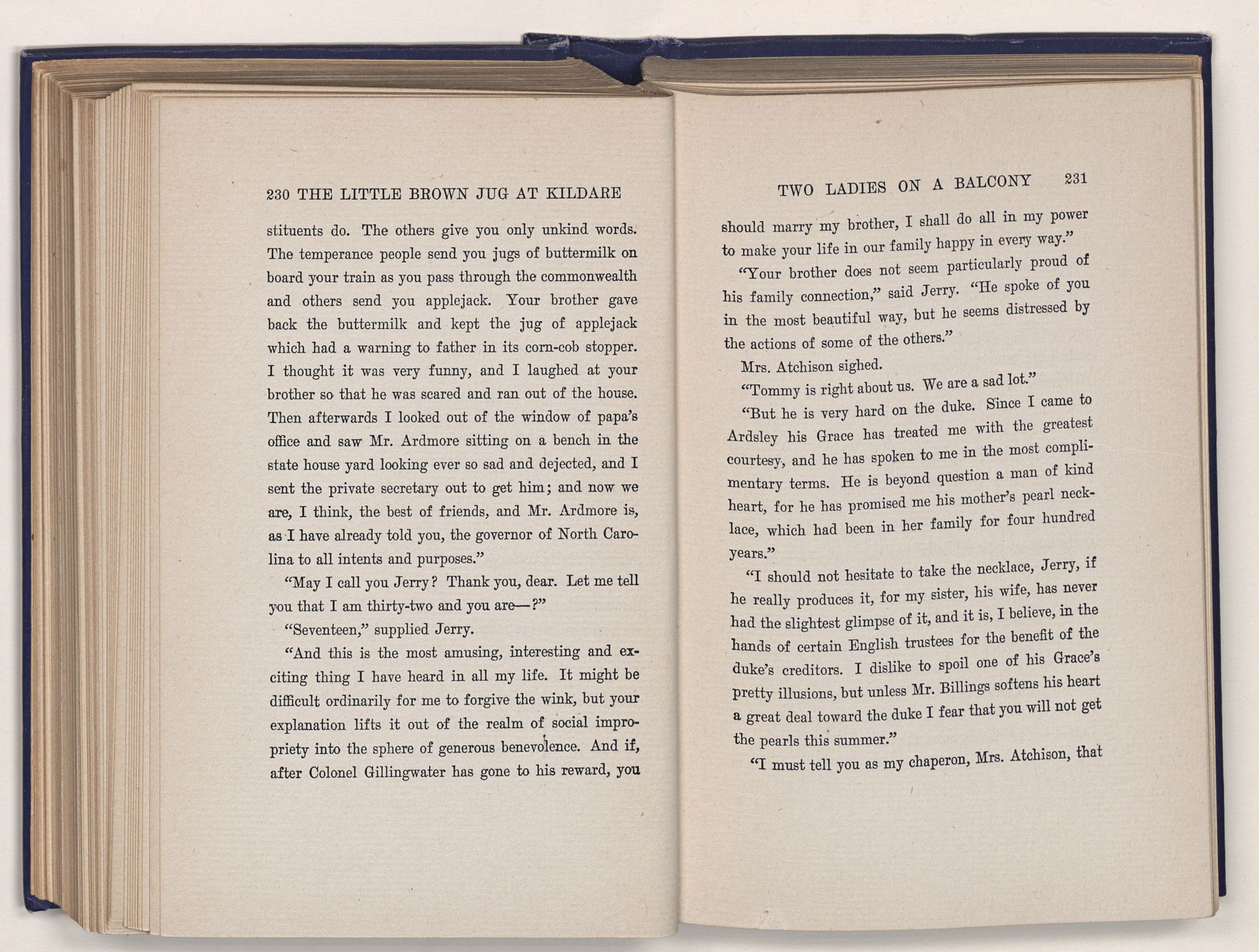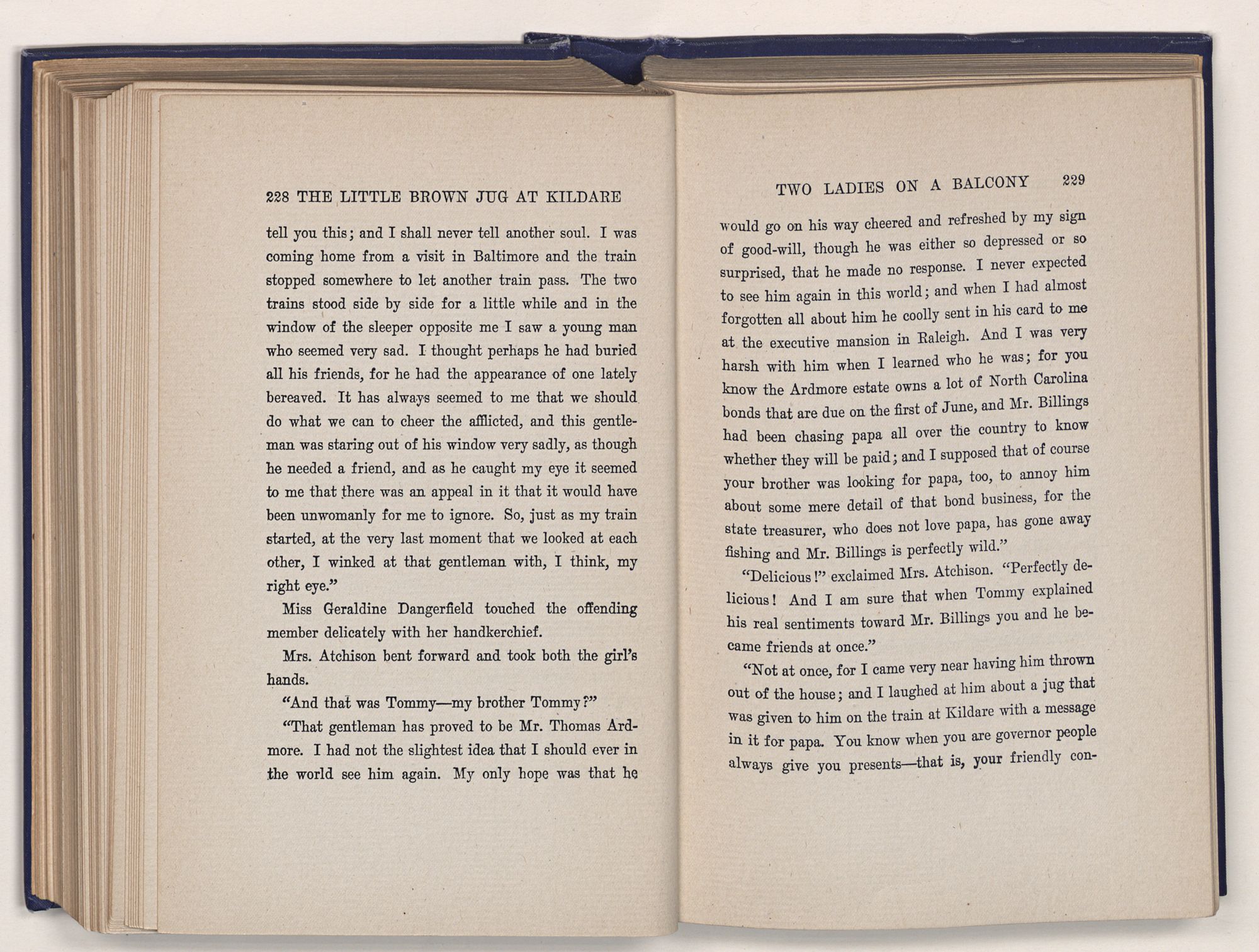 “Mr. Ardmore,” she said, “you may not be aware that when you asked me to be your wife—and that, I take it, was your intention—you were standing in South Carolina, while I stood with both feet on the sacred soil of the Old North State. Under the circumstances I do not think your proposal is legal. Moreover, unless you are quite positive which eye it was that so far forgot itself as to wink, I do not think the matter can go further.”