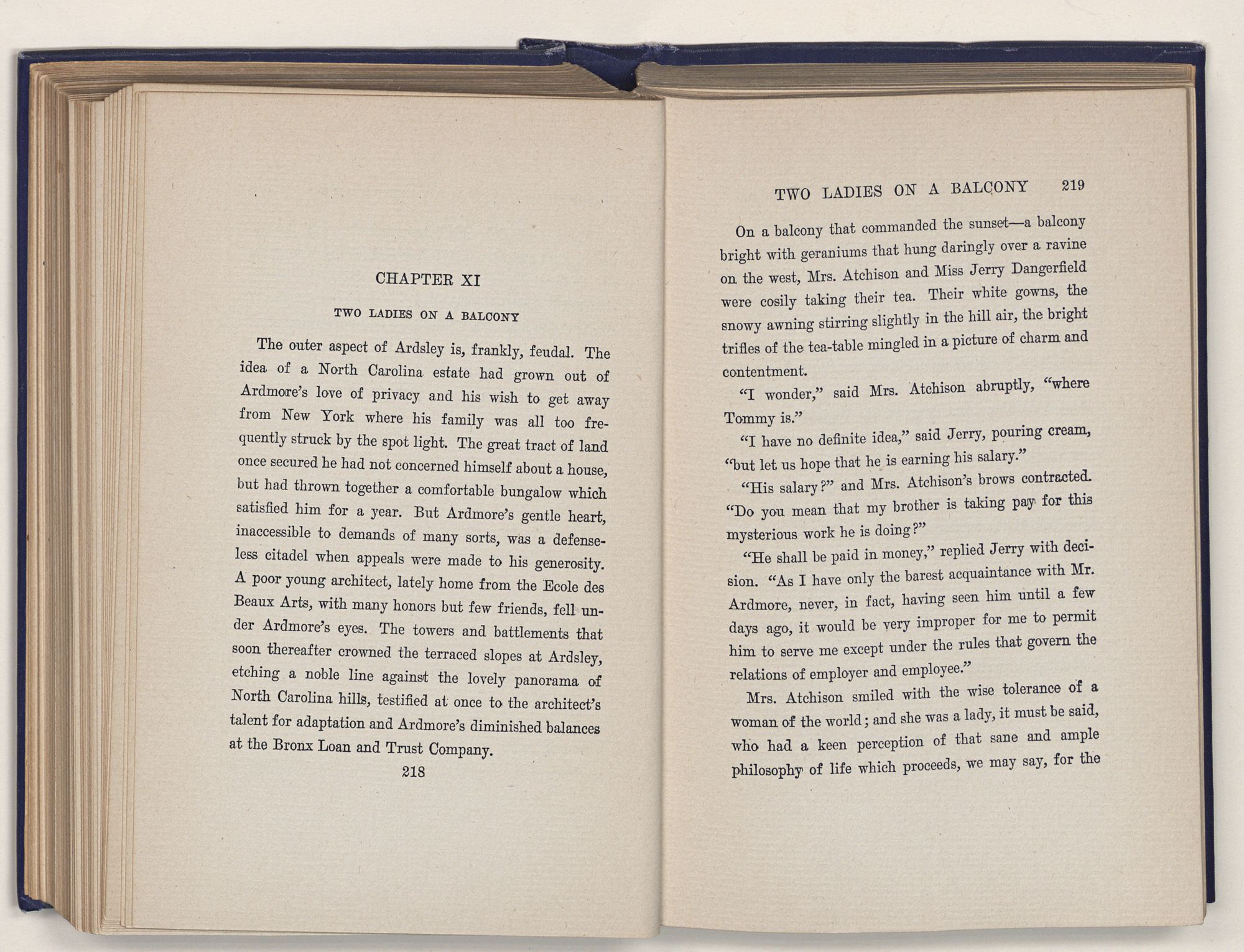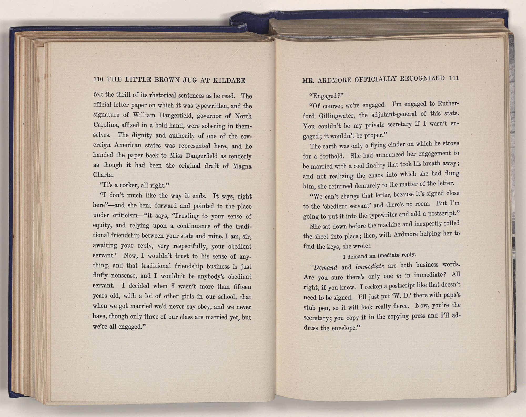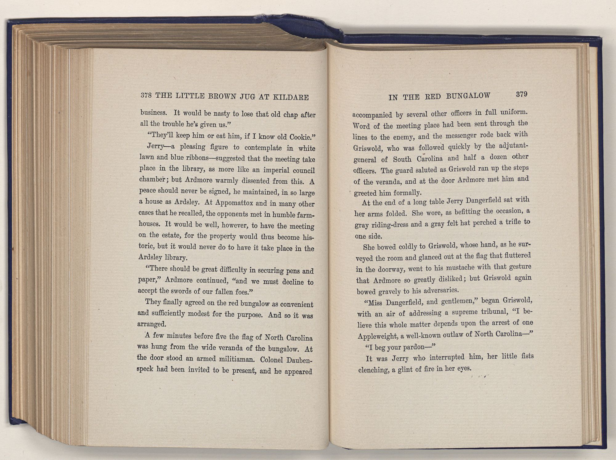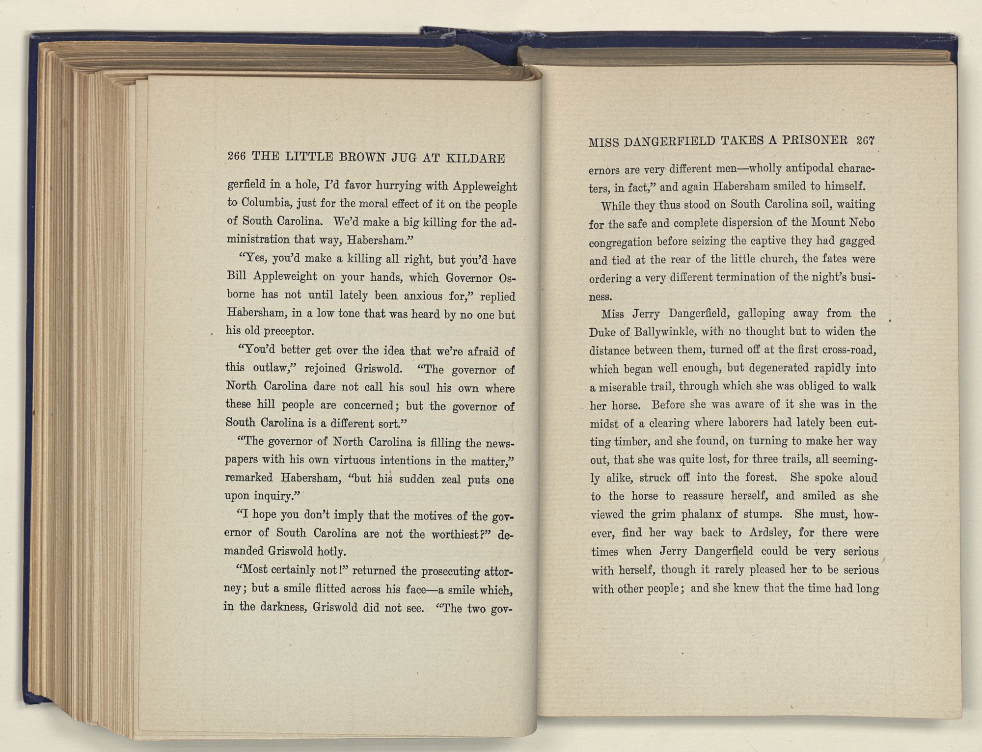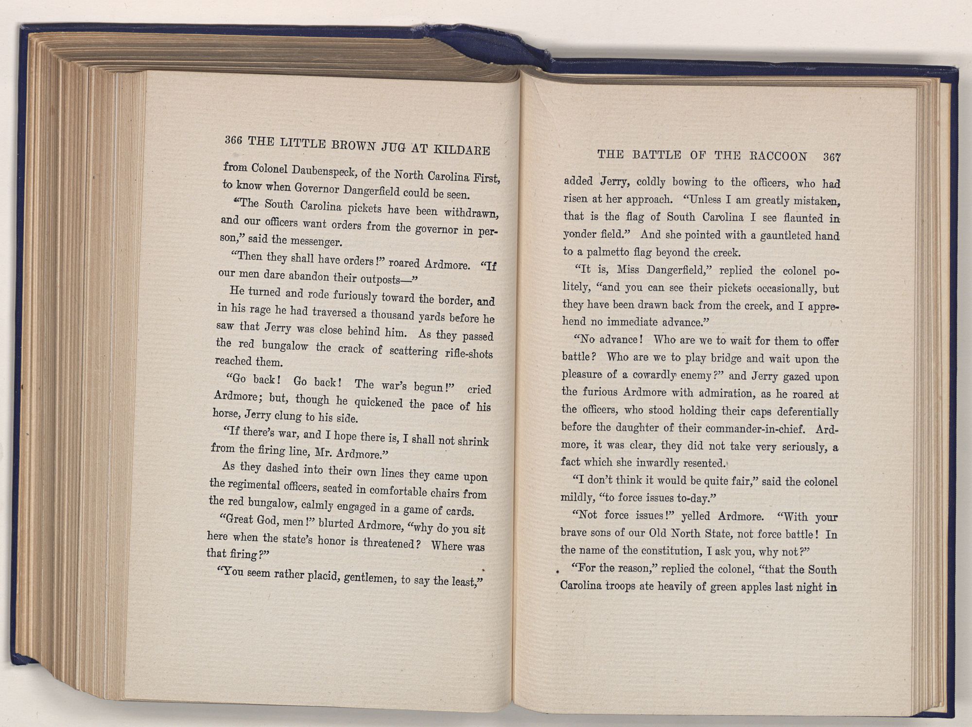 “Mr. Ardmore,” she said, “you may not be aware that when you asked me to be your wife—and that, I take it, was your intention—you were standing in South Carolina, while I stood with both feet on the sacred soil of the Old North State. Under the circumstances I do not think your proposal is legal. Moreover, unless you are quite positive which eye it was that so far forgot itself as to wink, I do not think the matter can go further.”