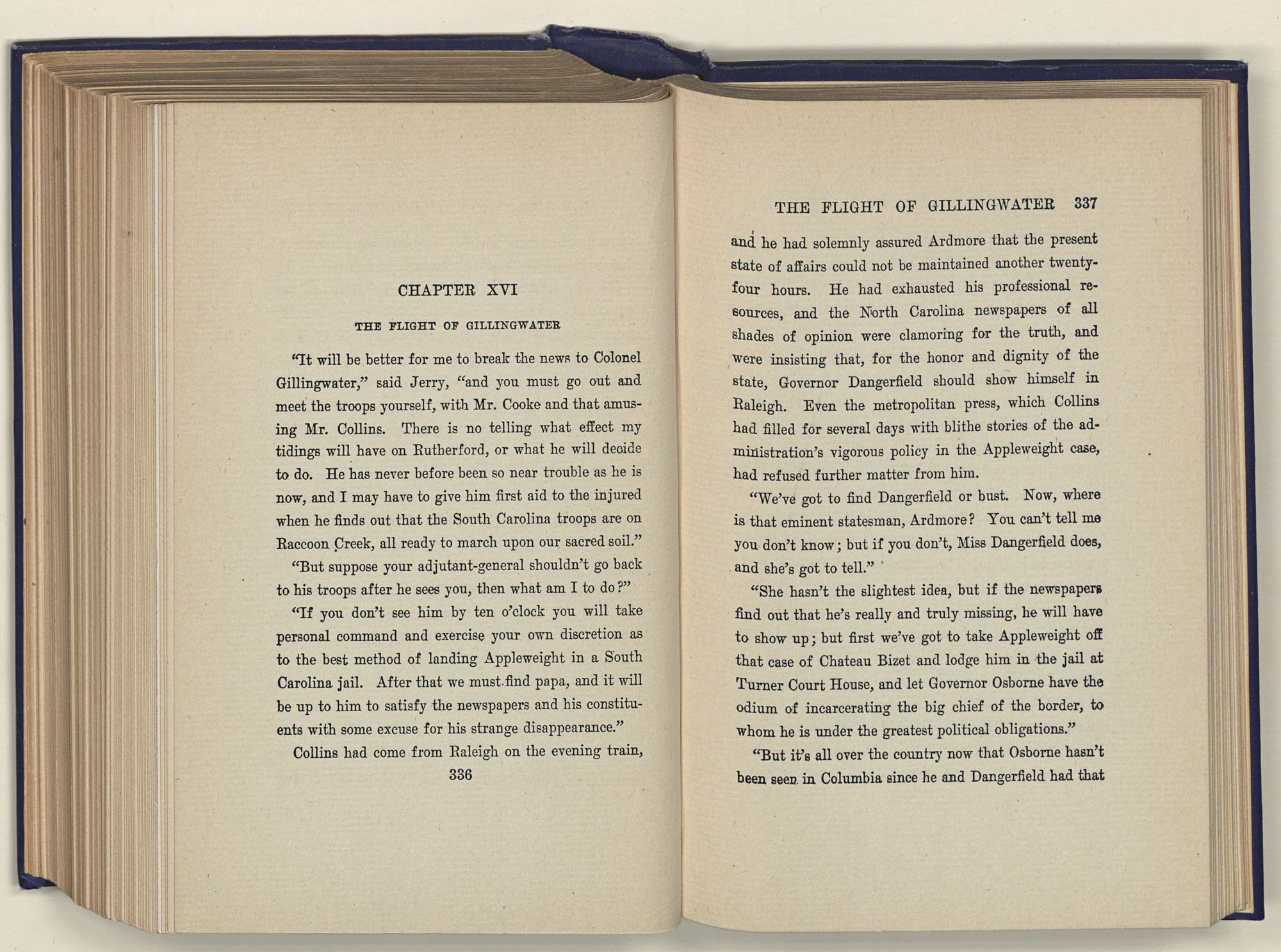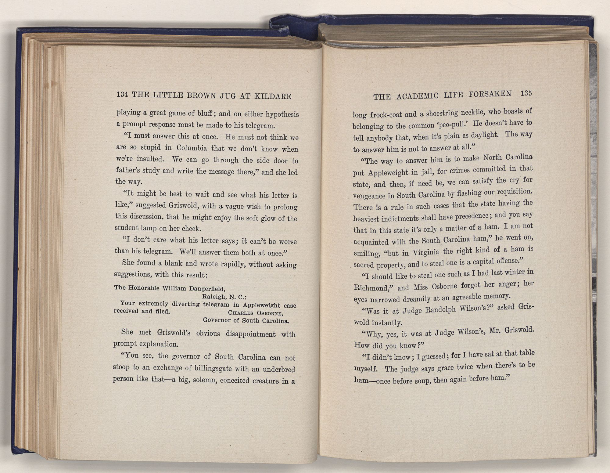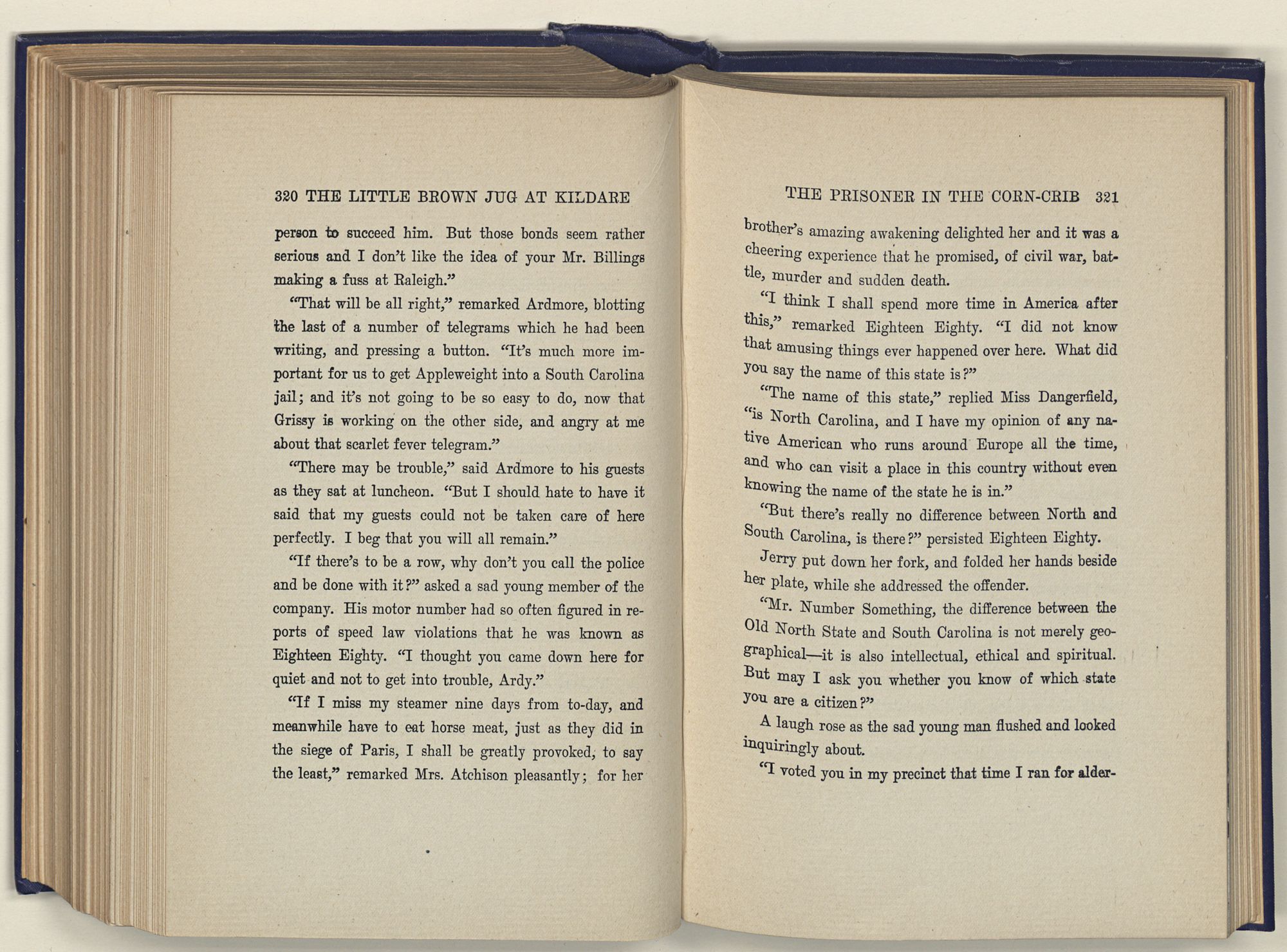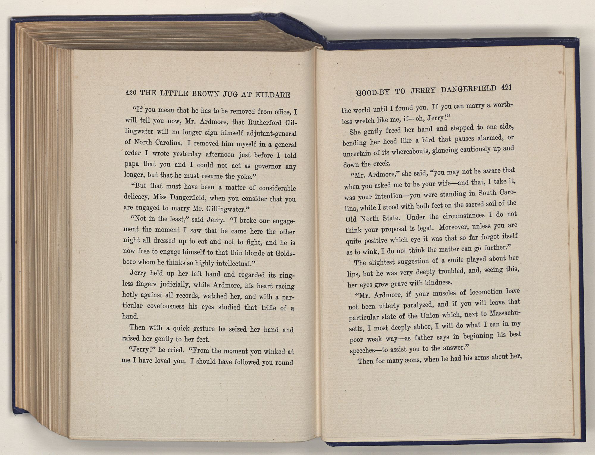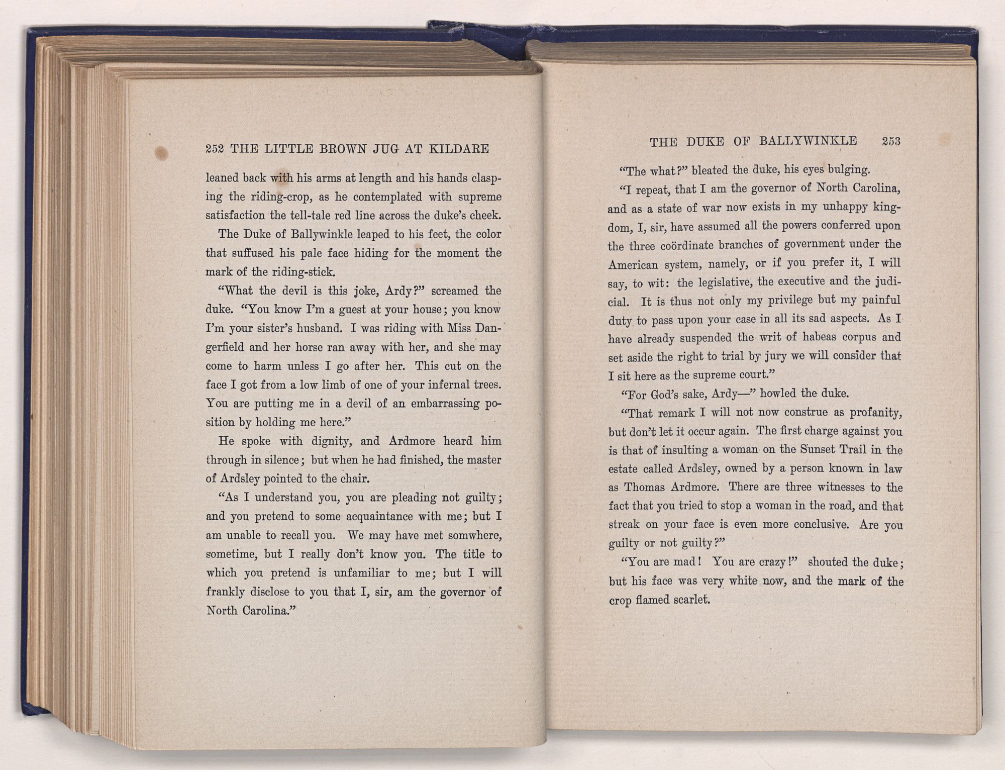 “Mr. Ardmore,” she said, “you may not be aware that when you asked me to be your wife—and that, I take it, was your intention—you were standing in South Carolina, while I stood with both feet on the sacred soil of the Old North State. Under the circumstances I do not think your proposal is legal. Moreover, unless you are quite positive which eye it was that so far forgot itself as to wink, I do not think the matter can go further.”