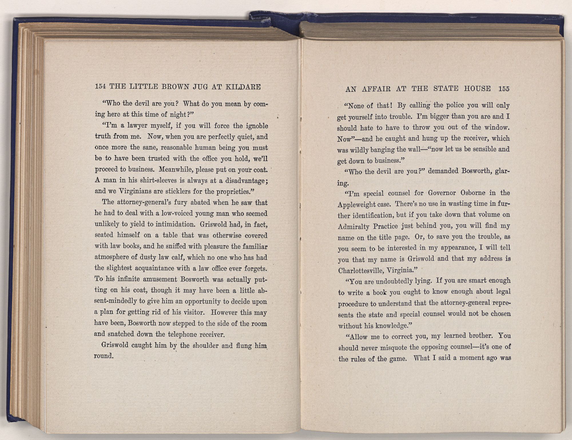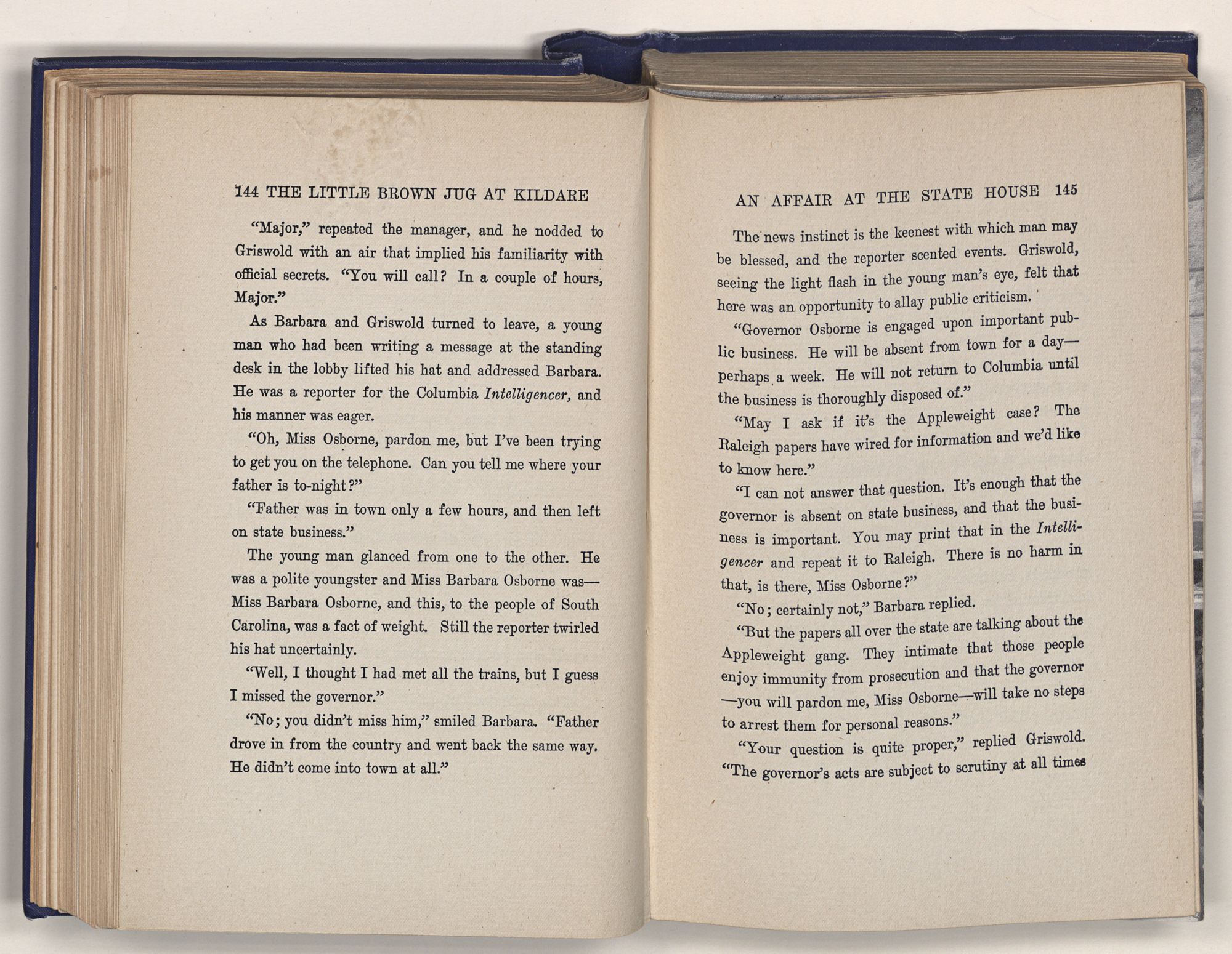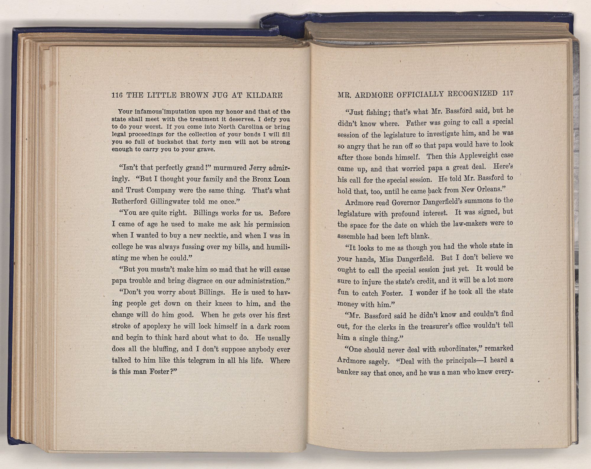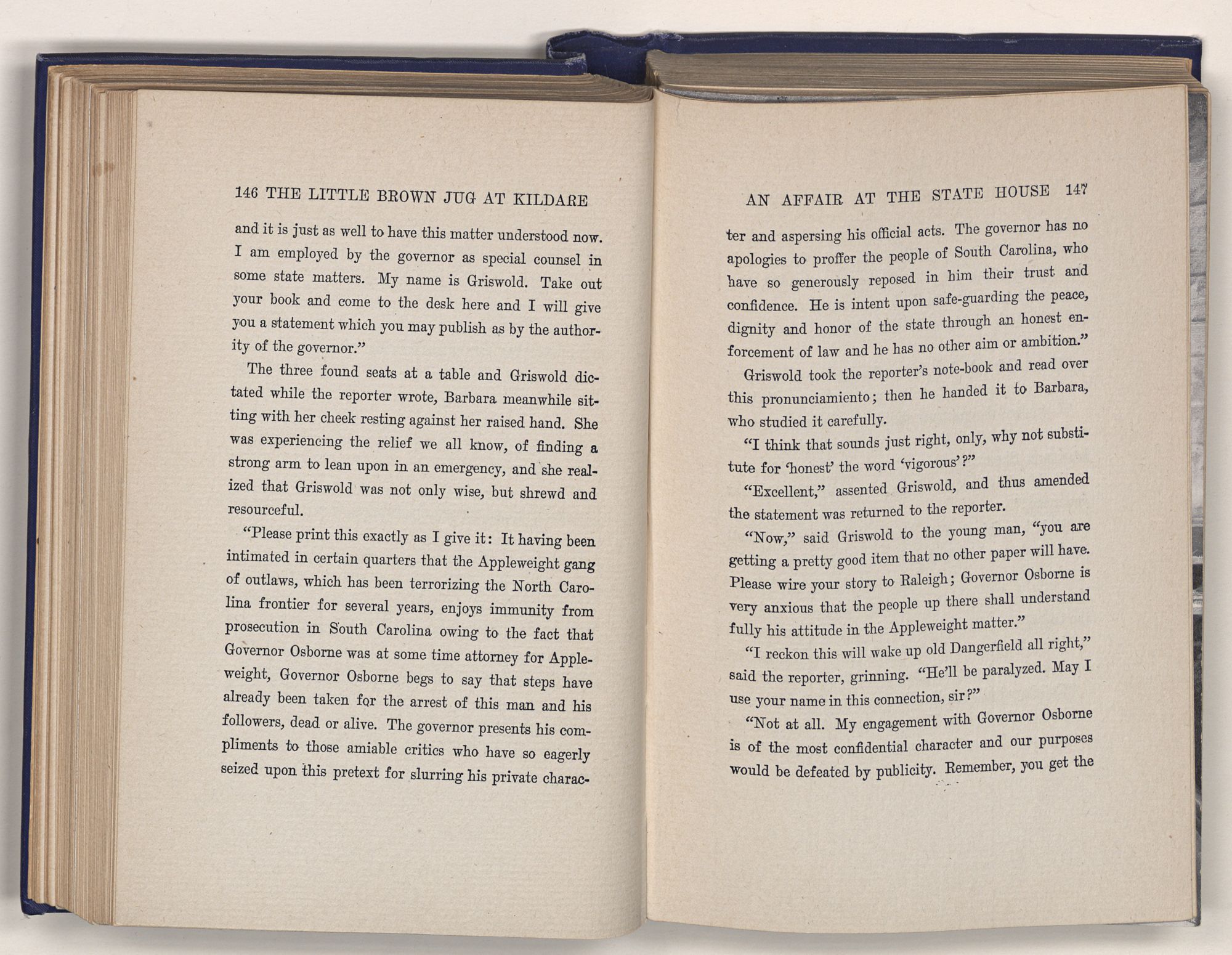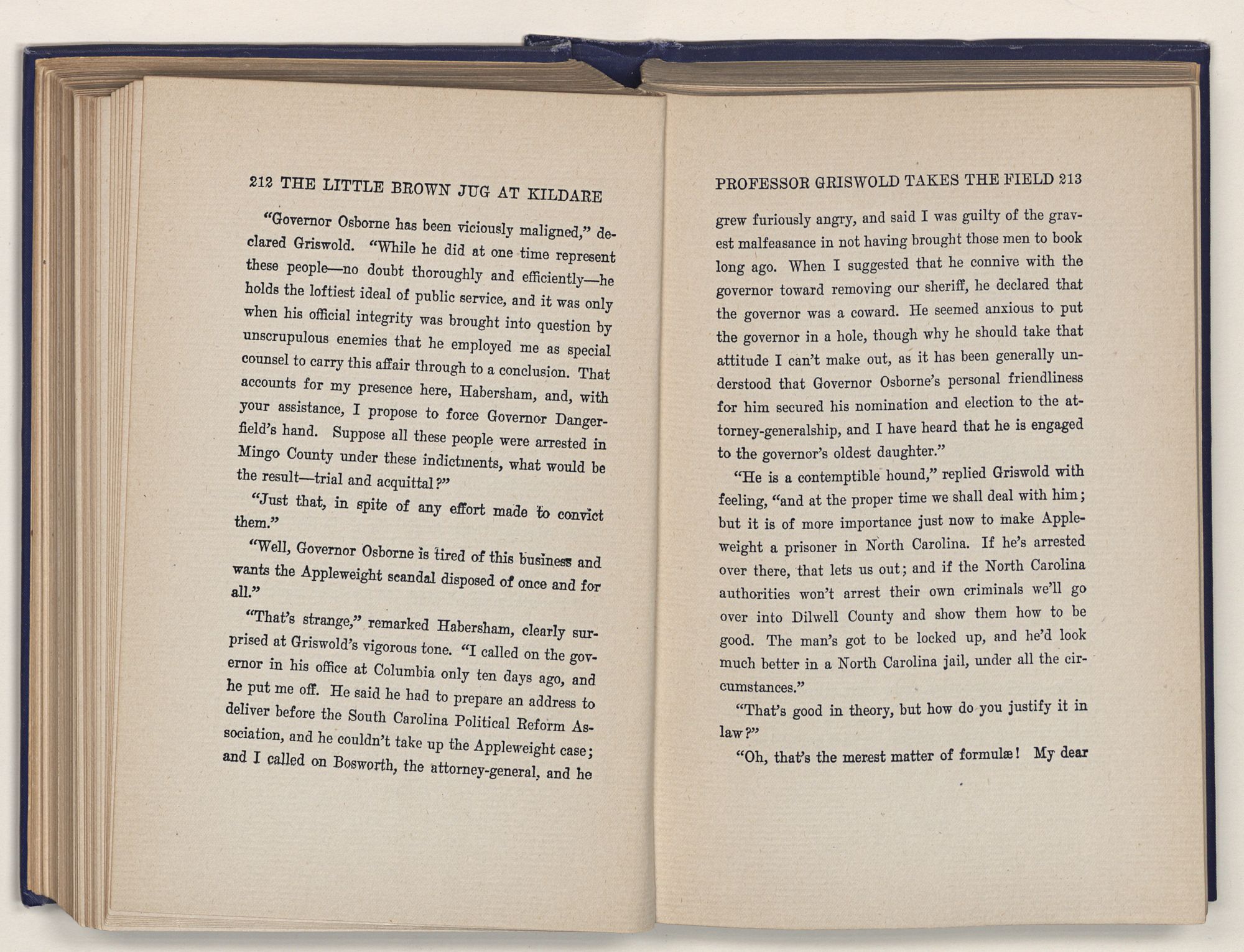 “The reputations of two governors and of two states are in their hands,” said the governor of South Carolina, with feeling. “It would be a distressing end of my public services if the truth of all these matters should be known. The fact that Governor Dangerfield and I had merely withdrawn from public life for a little quiet poker in the country would sound like the grossest immorality to my exacting constituency.”