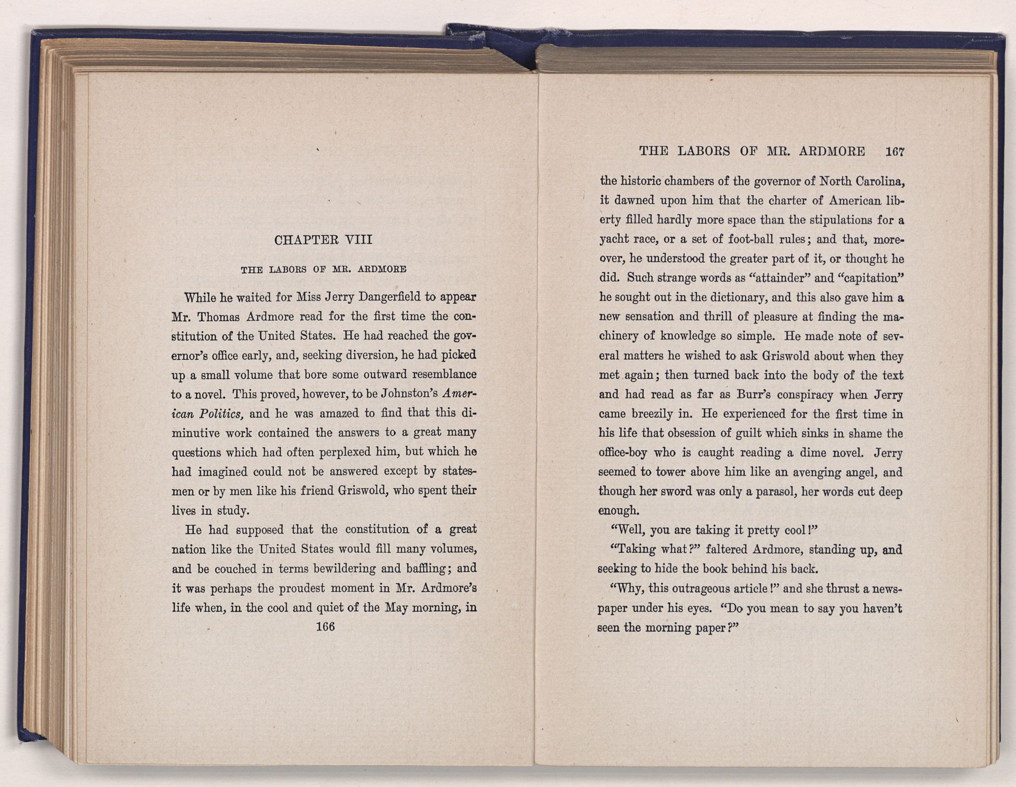 “If you mean that he has to be removed from office, I will tell you now, Mr. Ardmore, that Rutherford Gillingwater will no longer sign himself adjutant-general of North Carolina. I removed him myself in a general order I wrote yesterday afternoon just before I told papa that you and I could not act as governor any longer, but that he must resume the yoke.”