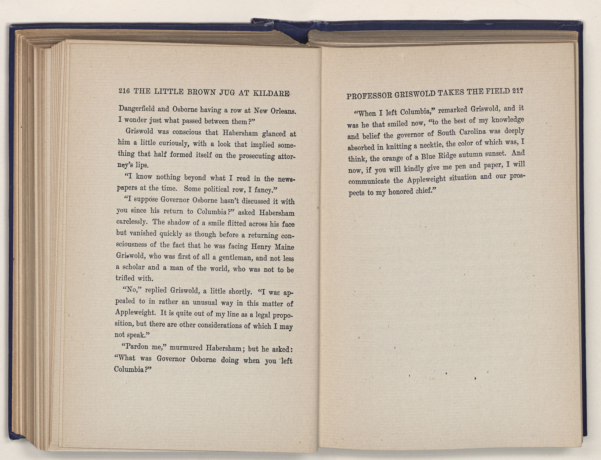 “Don't ever refer to it again, if you love me,” spluttered Griswold amiably, as he washed off the lather. “I, too, have ruled over a kingdom, and I have seen history in the making, quorum pars magna fui.”