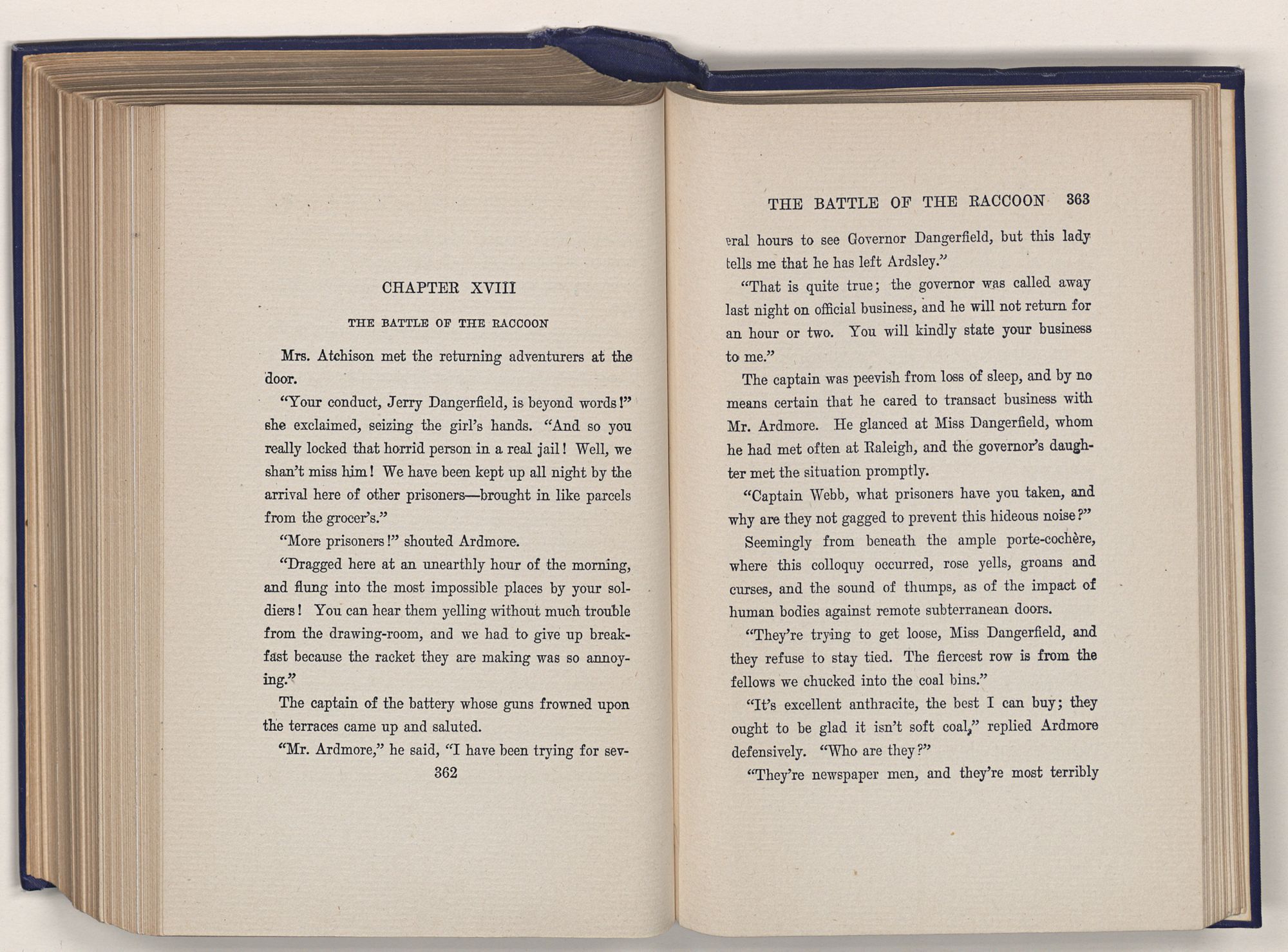 Breakfast was a lingering affair at Ardsley that morning. The two governors and the national guard officers who had spent the night in the house were not in the slightest hurry to break up the party, for such a company, they all knew, could hardly be assembled again. The governors were a trifle nervous as to the attitude of the press, in spite of Collins’ efforts to dictate what history should say of the affair on the Raccoon; but before they left the table the Raleigh morning papers were brought in and it was clear that the newspaper men were keeping their contract.
