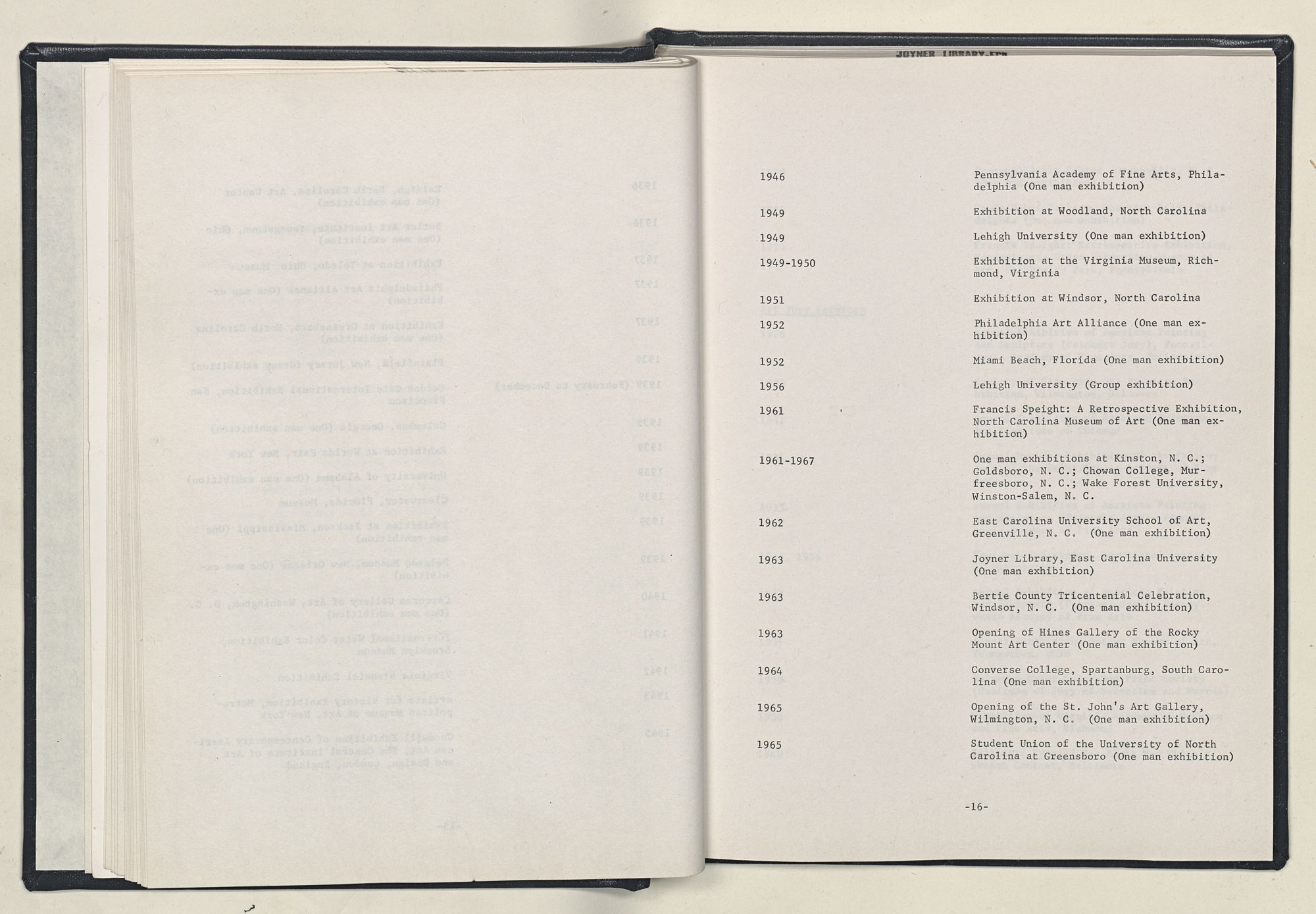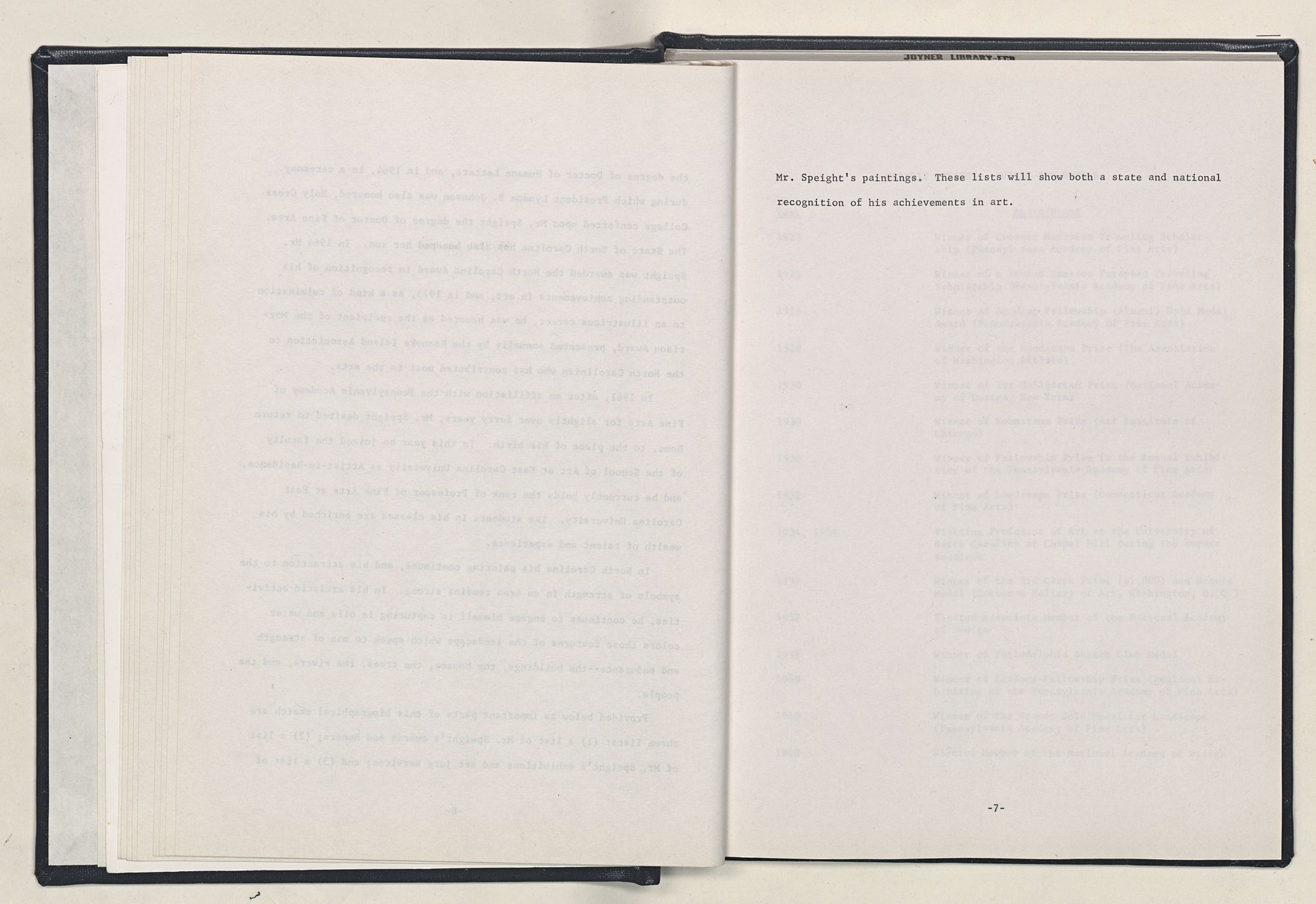 Provided below as important parts of this biographical sketch are three lists: (1) a list of Mr. Speight's awards and honors; (2) a list of Mr. Speight's exhibitions and art jury services; and (3) a list of