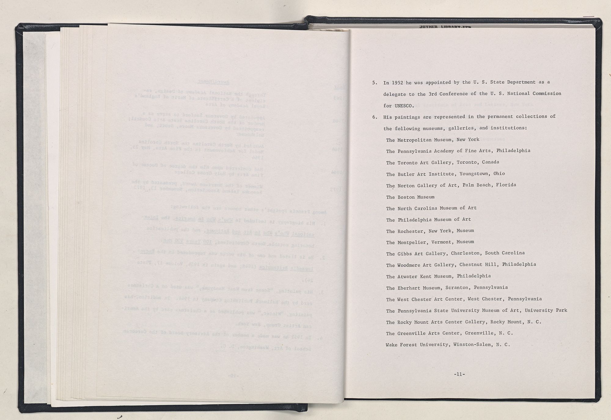 1934, 1935Visiting Professor of Art at the University of North Carolina at Chapel Hill during the summer sessions