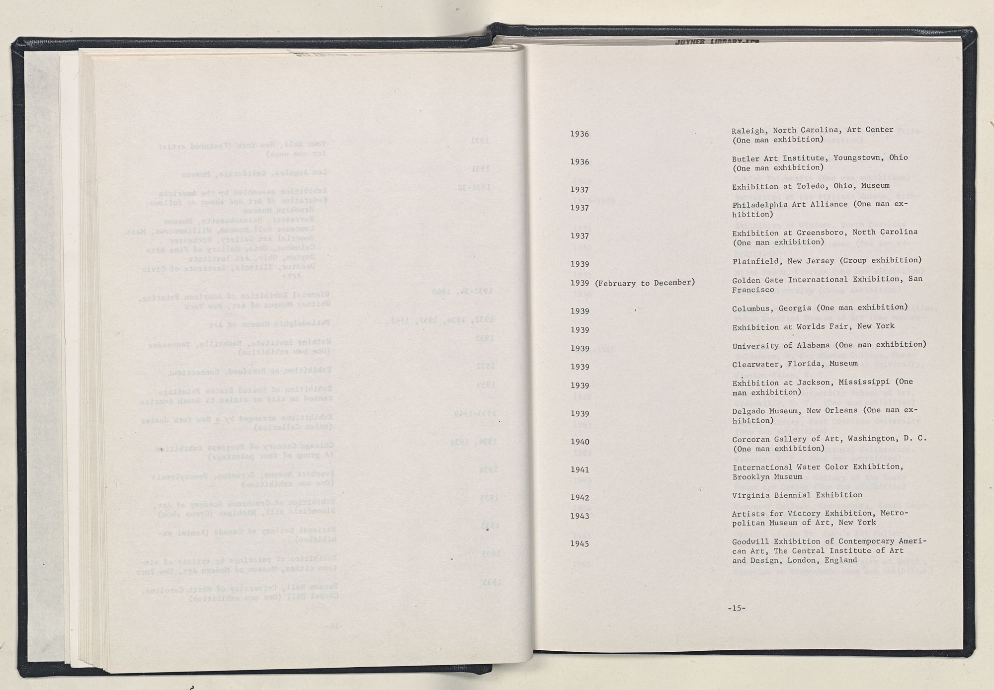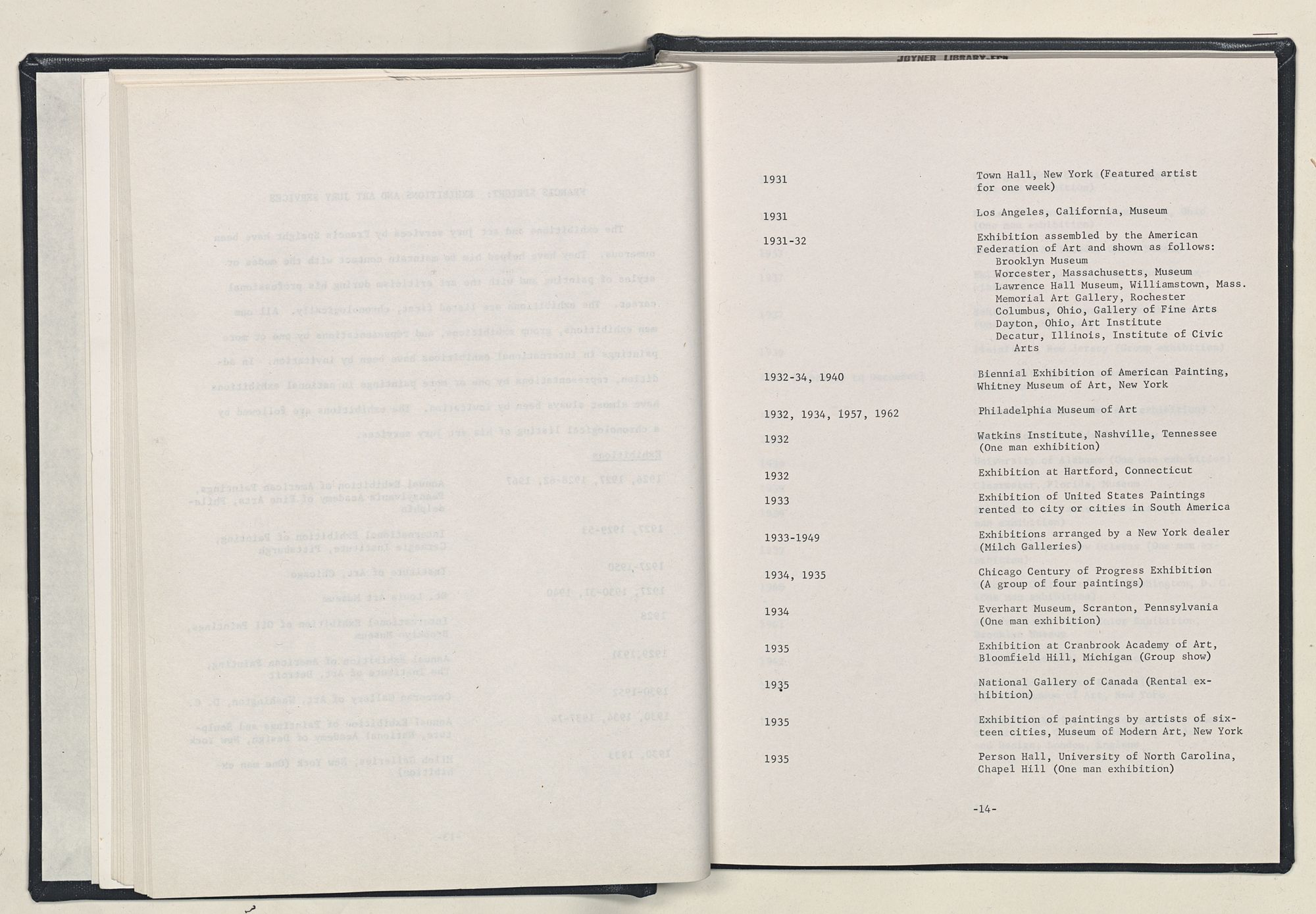 Exhibited Corcoran Gallery of Art, 1937; N. C. Museum of Art, 1961