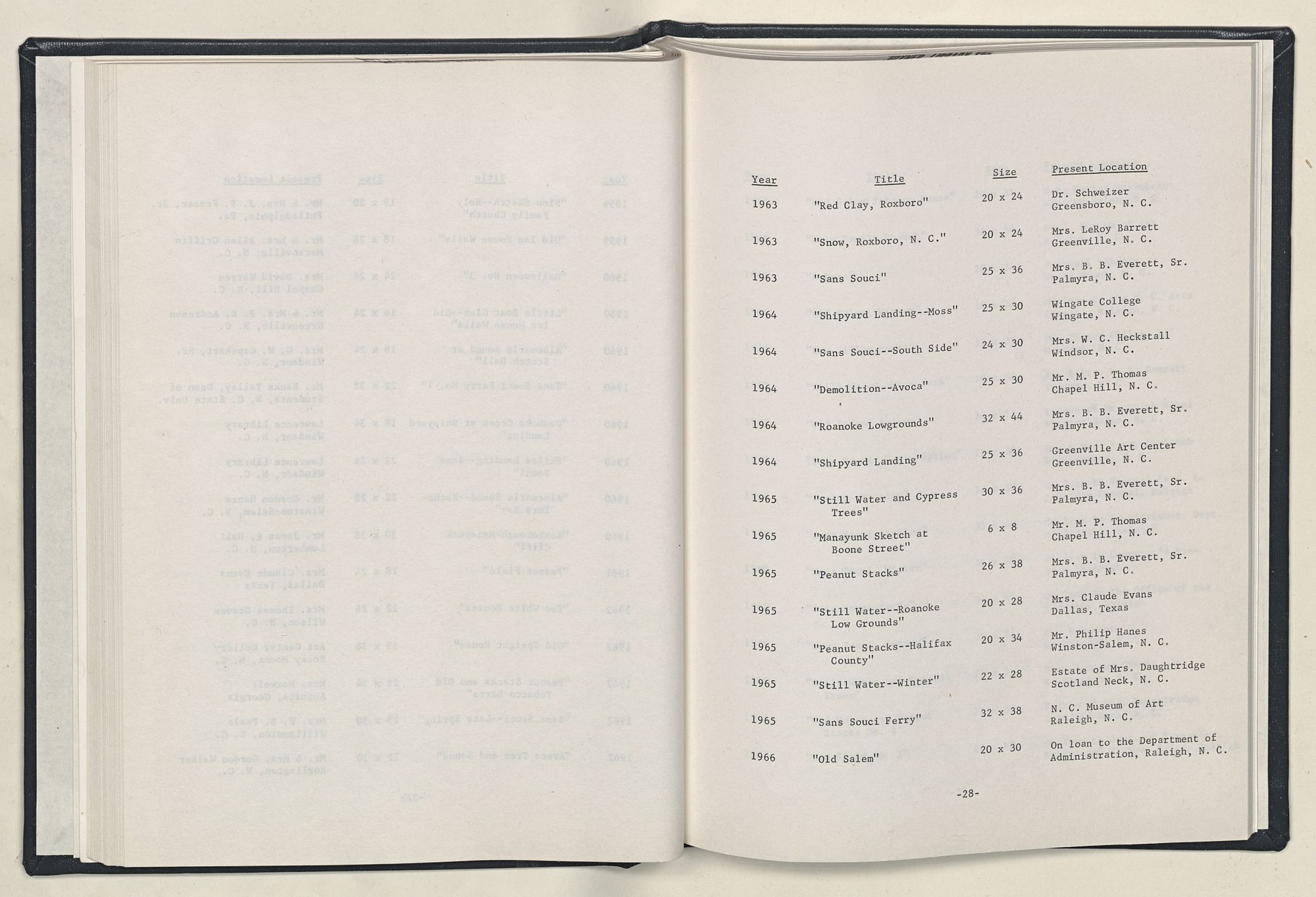 In North Carolina his painting continues, and his attraction to the symbols of strength in an area remains strong. In his artistic activities, he continues to engage himself in capturing in oils and water colors those features of the landscape which speak to man of strength and endurance—the buildings, the houses, the trees, the rivers, and the people.