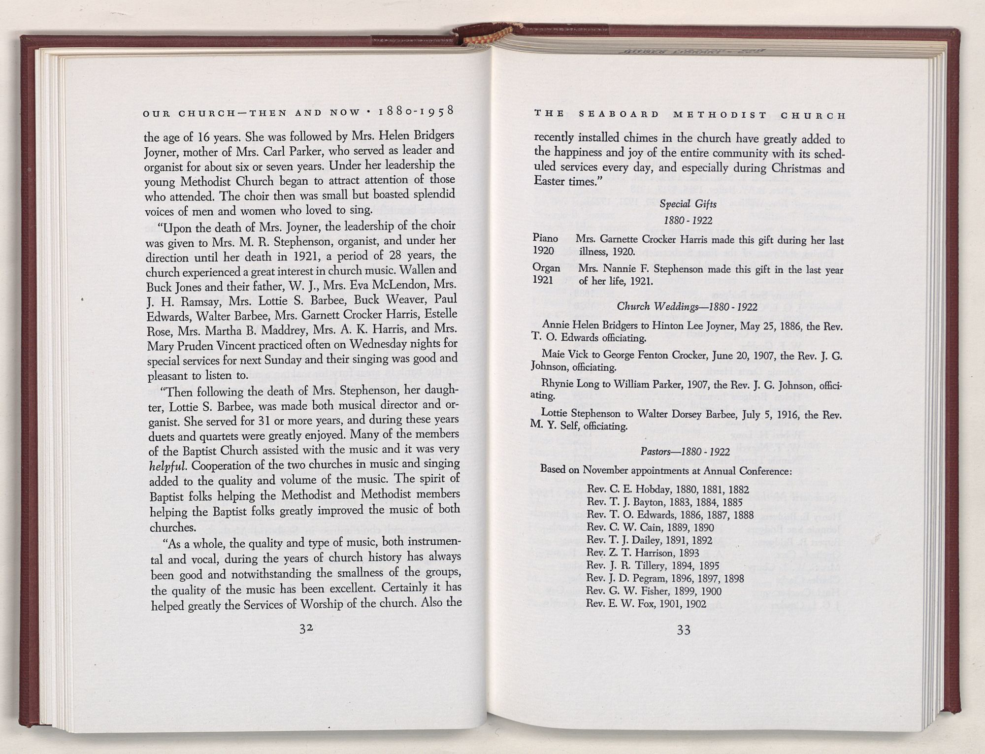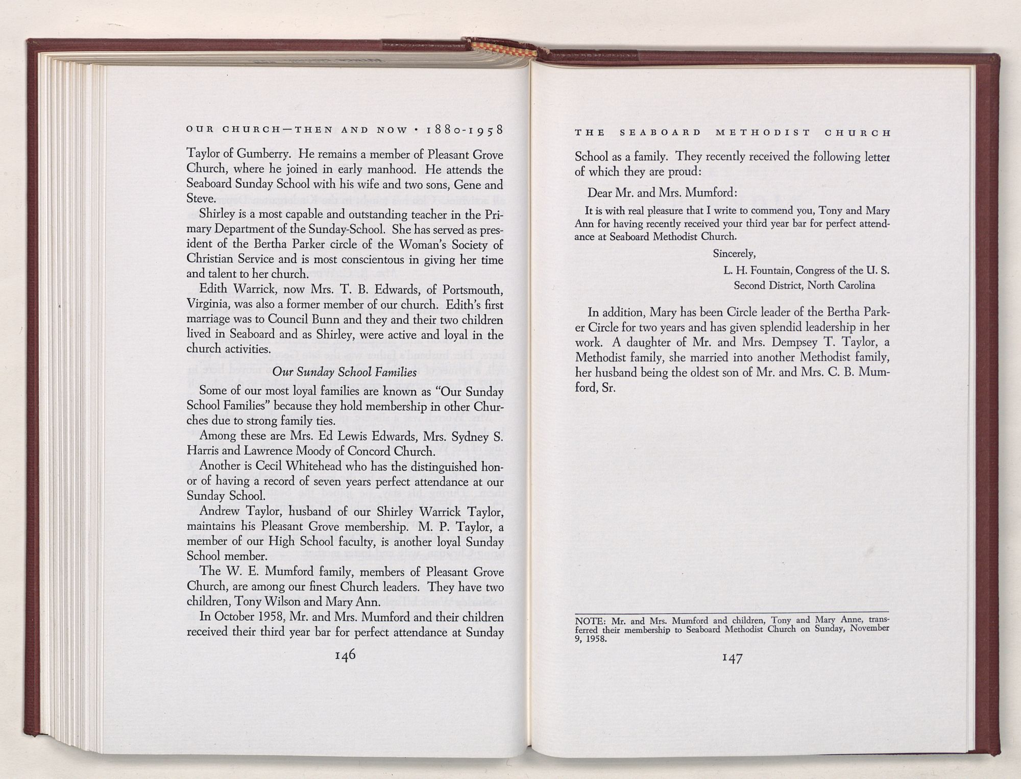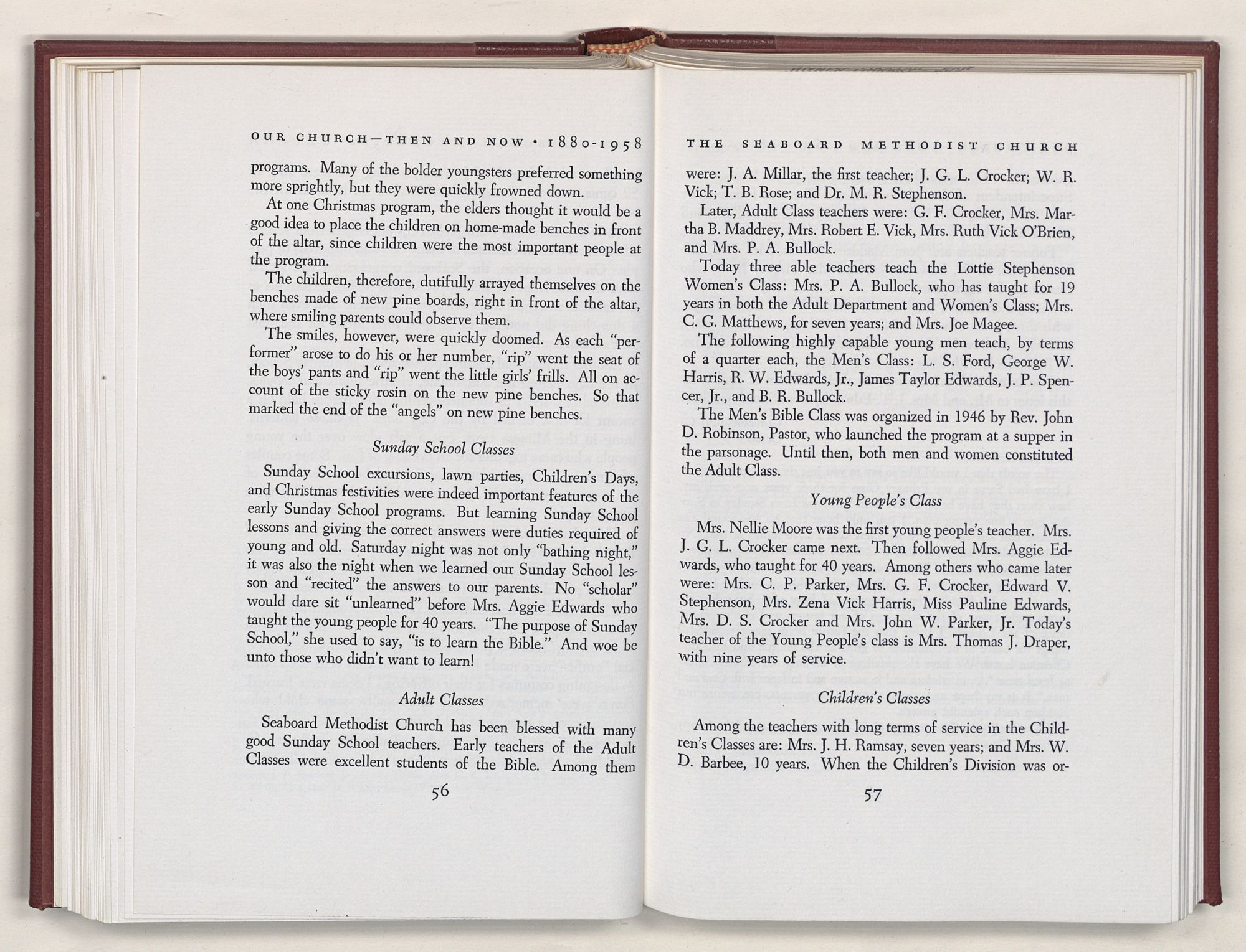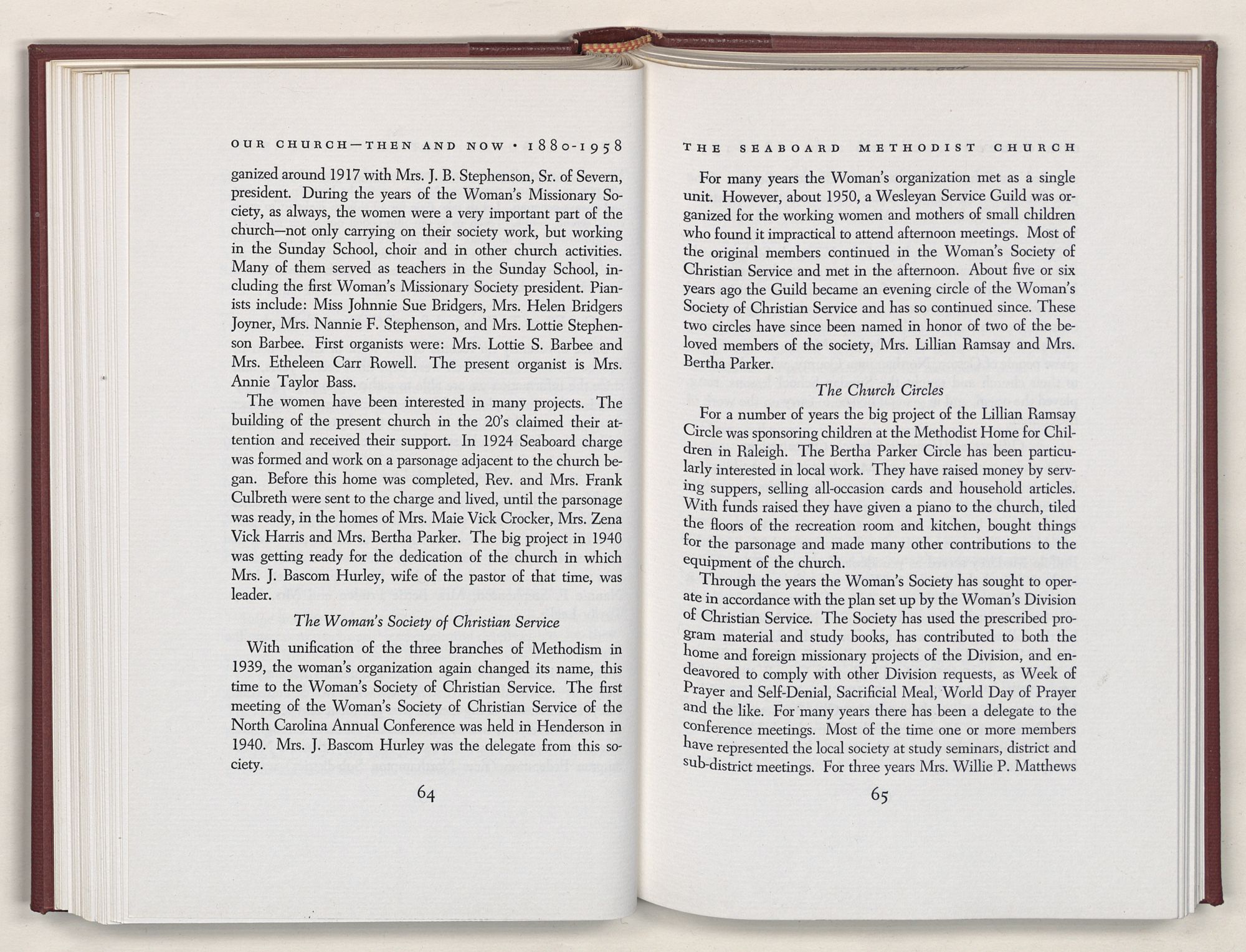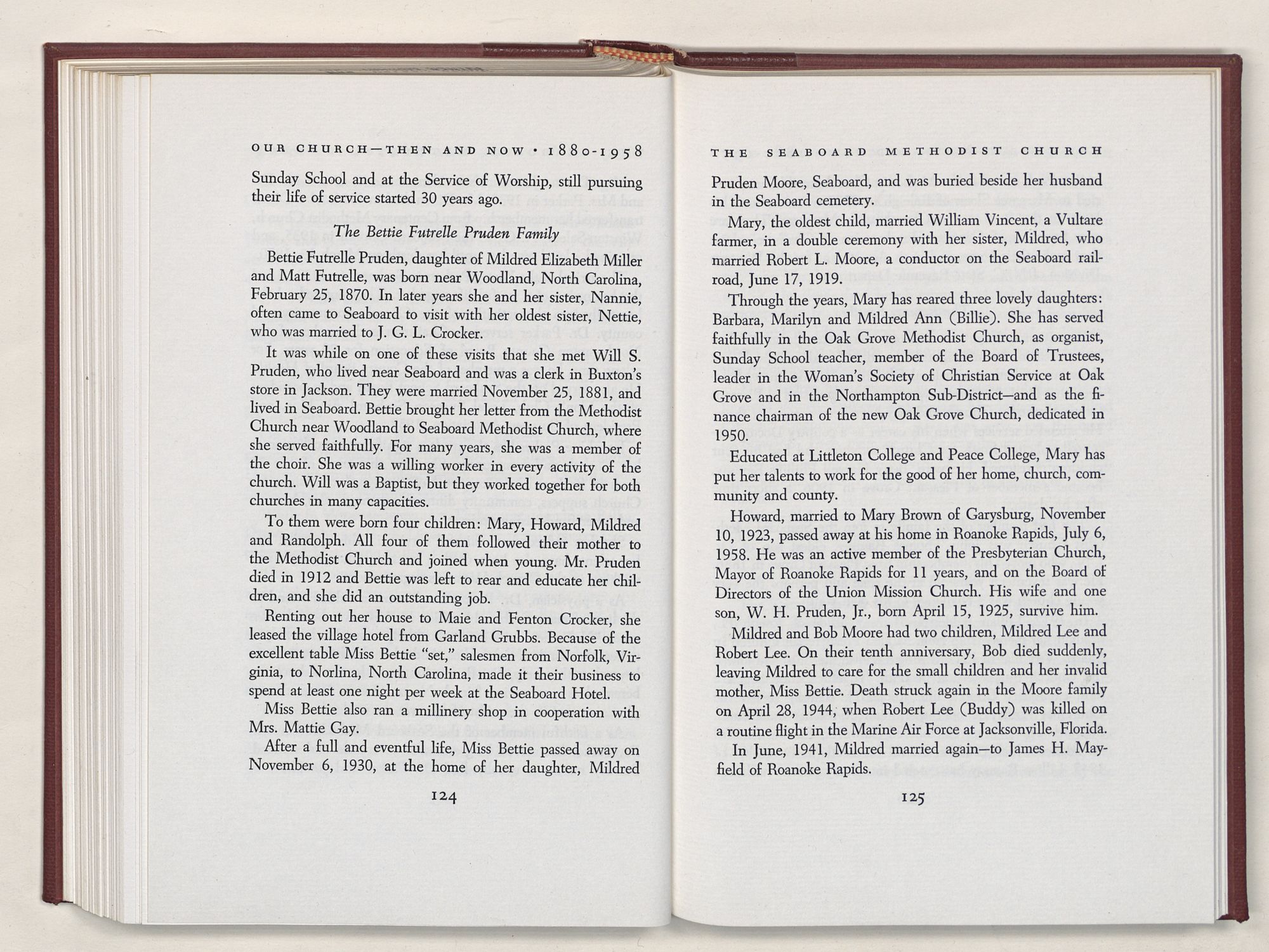 Nevertheless, it is our belief that the history of the Seaboard Methodist Church as related within these pages is basically factual. Furthermore, we believe this booklet will stimulate our Church officials and its members to keep more accurate records as well as more personal history of their families. Emerson, the great American essayist, once said: “There is properly no history, only biography.”