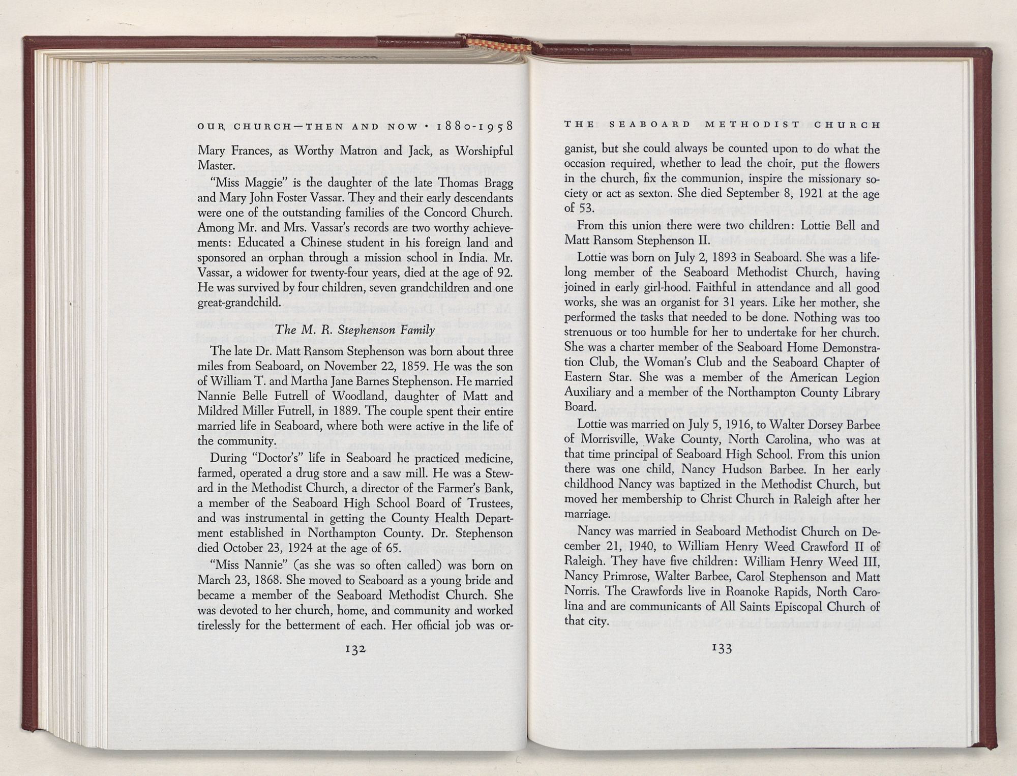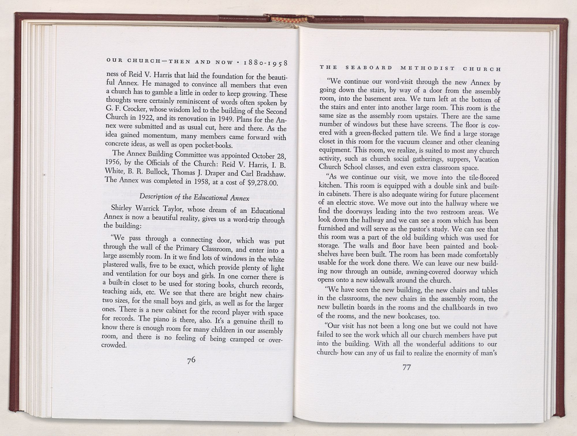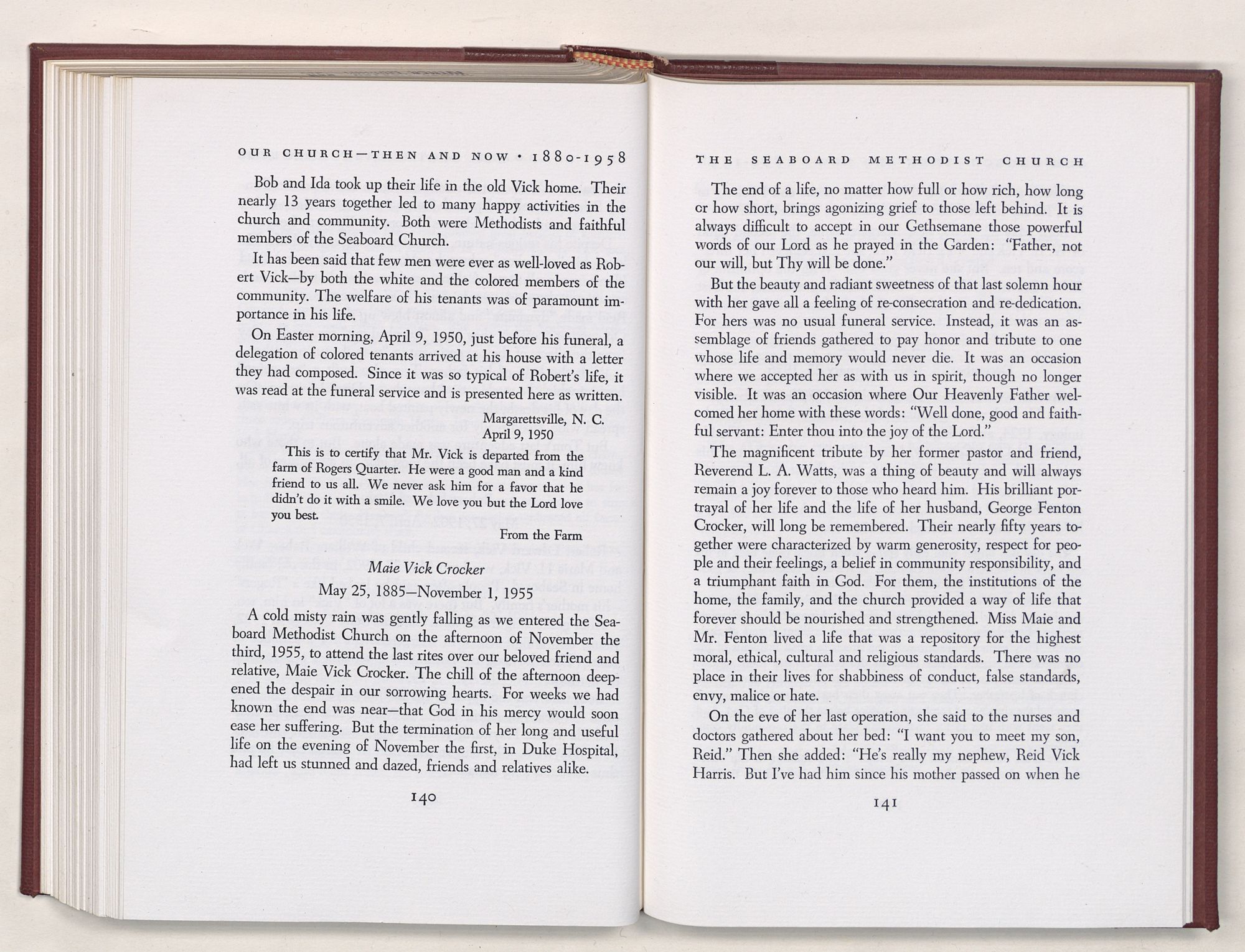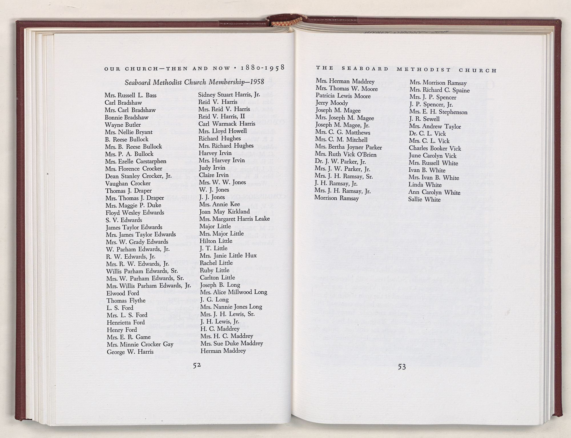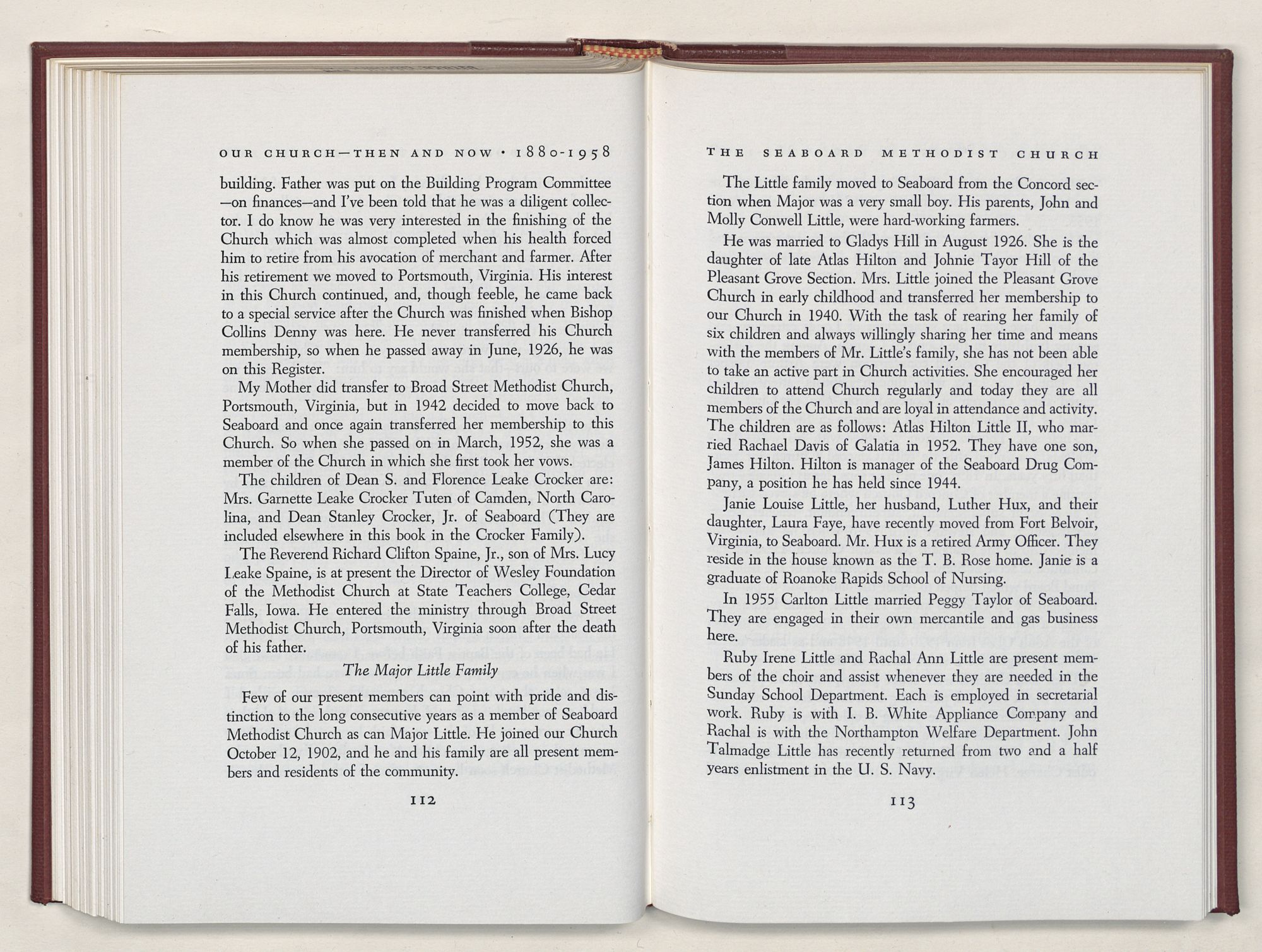 Nevertheless, it is our belief that the history of the Seaboard Methodist Church as related within these pages is basically factual. Furthermore, we believe this booklet will stimulate our Church officials and its members to keep more accurate records as well as more personal history of their families. Emerson, the great American essayist, once said: “There is properly no history, only biography.”