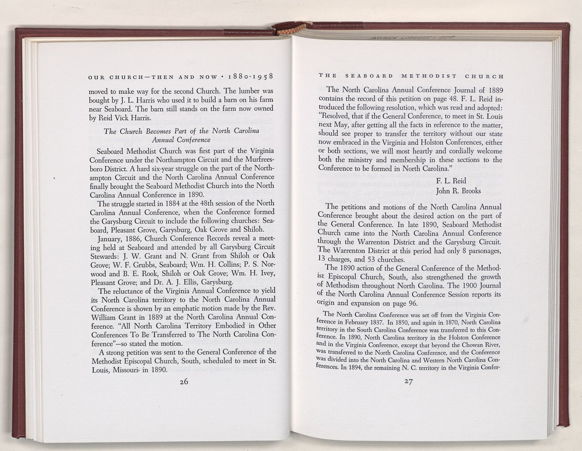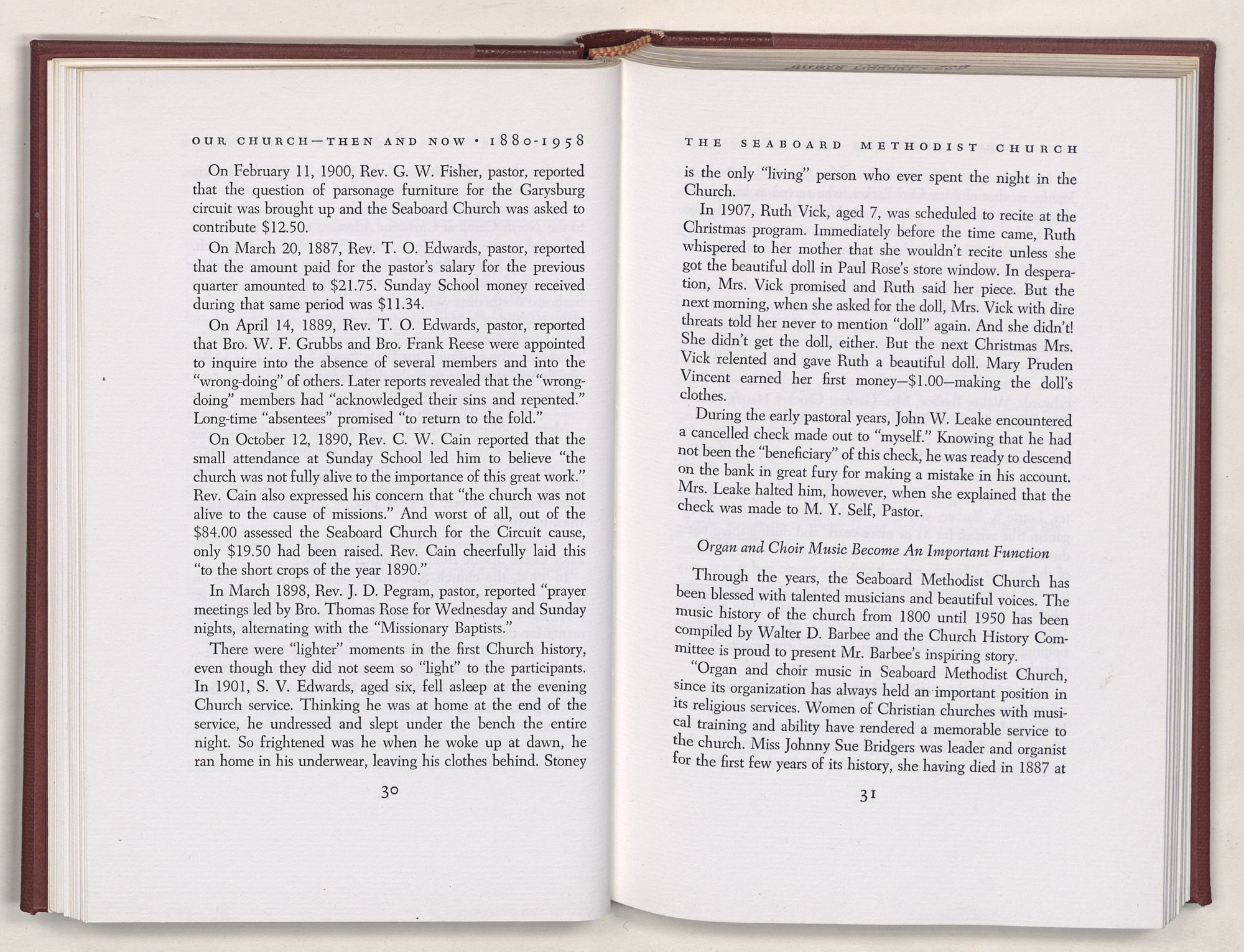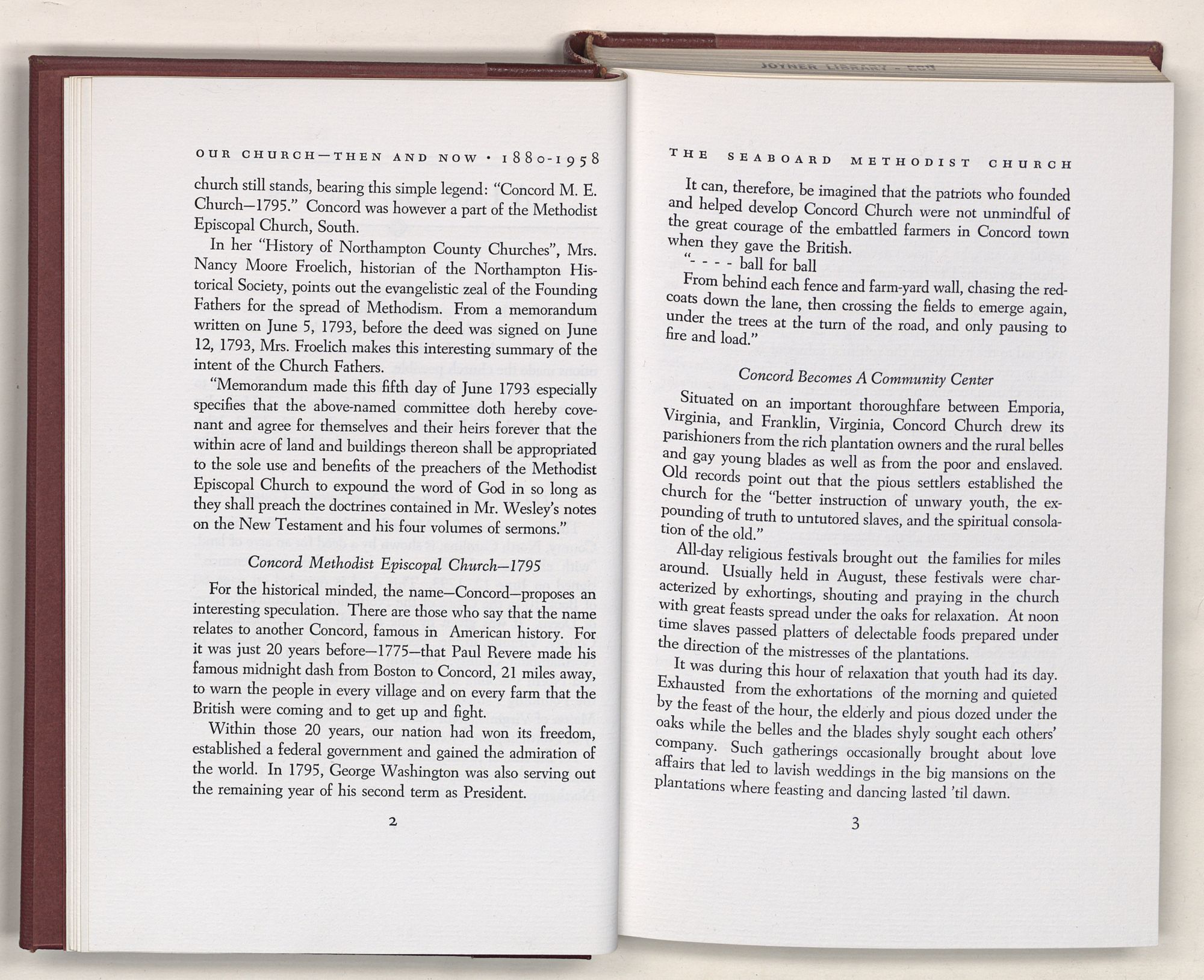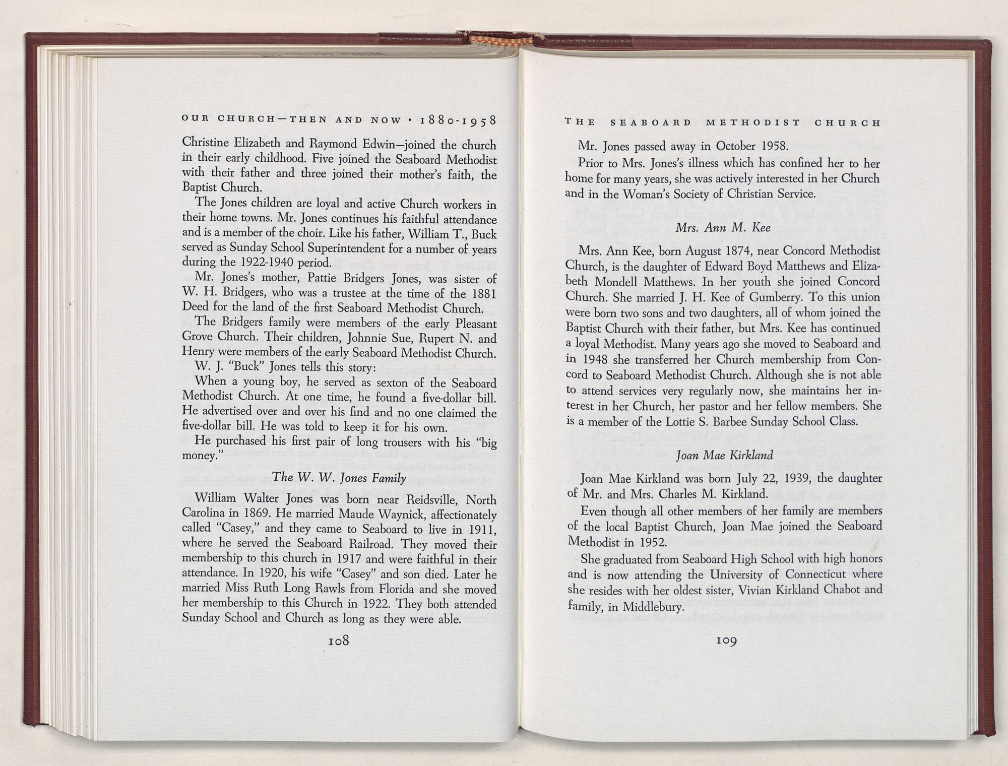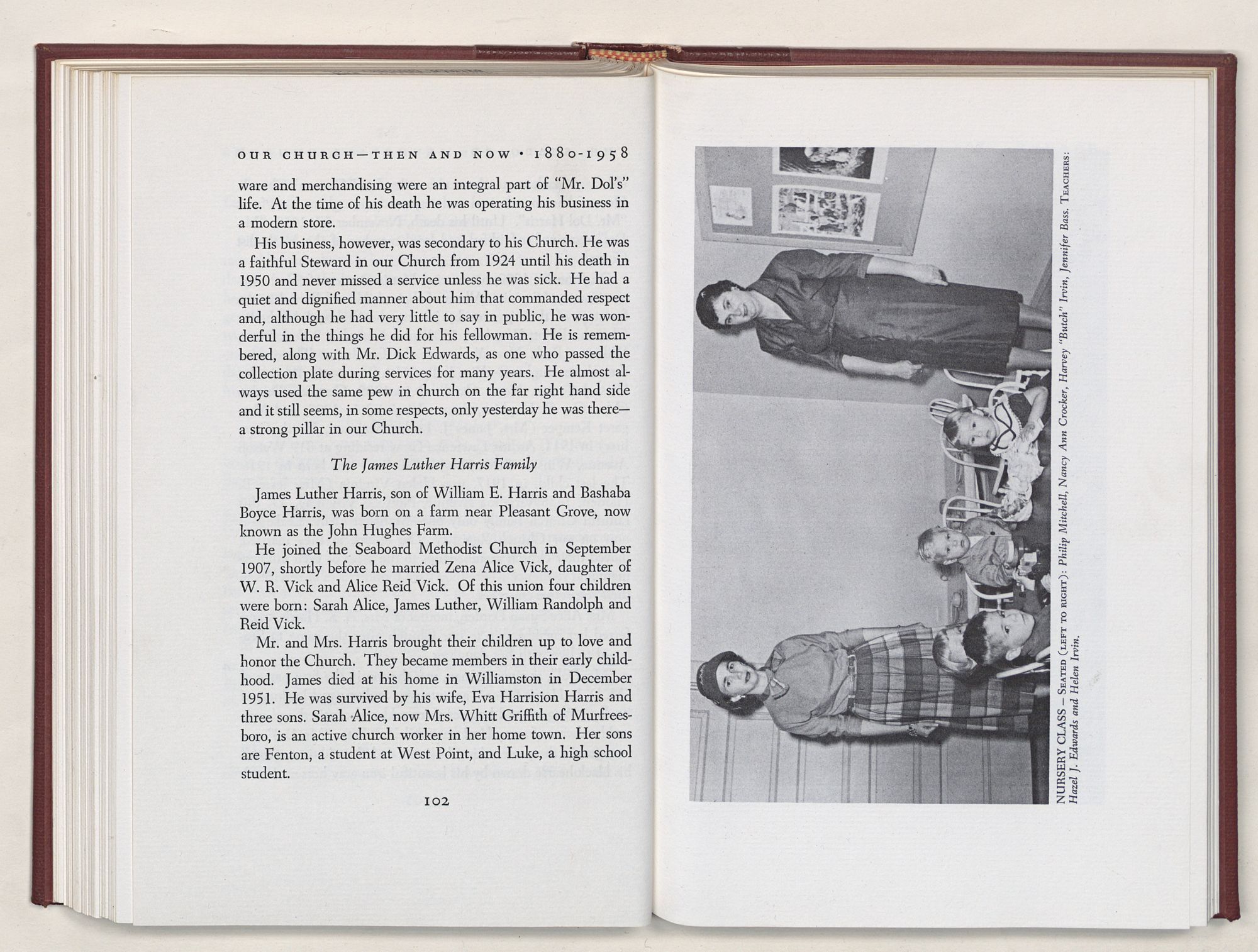 Nevertheless, it is our belief that the history of the Seaboard Methodist Church as related within these pages is basically factual. Furthermore, we believe this booklet will stimulate our Church officials and its members to keep more accurate records as well as more personal history of their families. Emerson, the great American essayist, once said: “There is properly no history, only biography.”