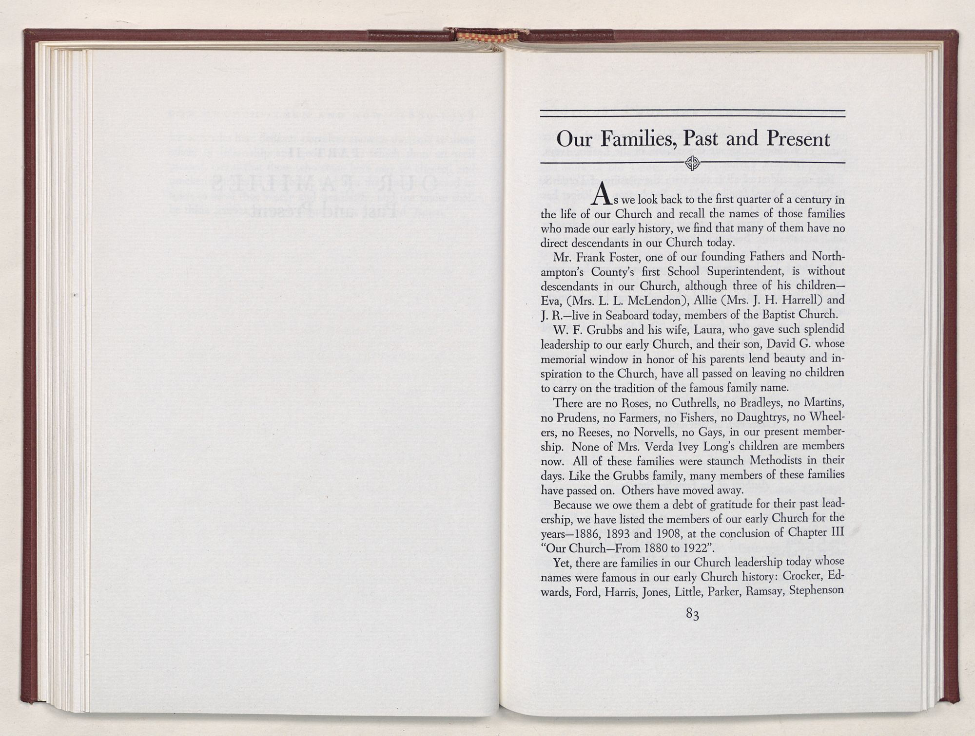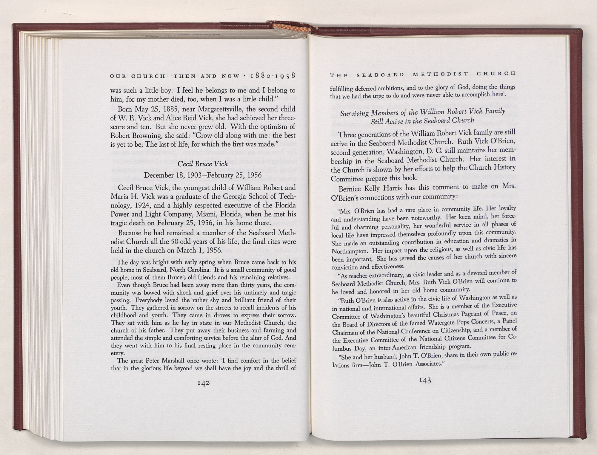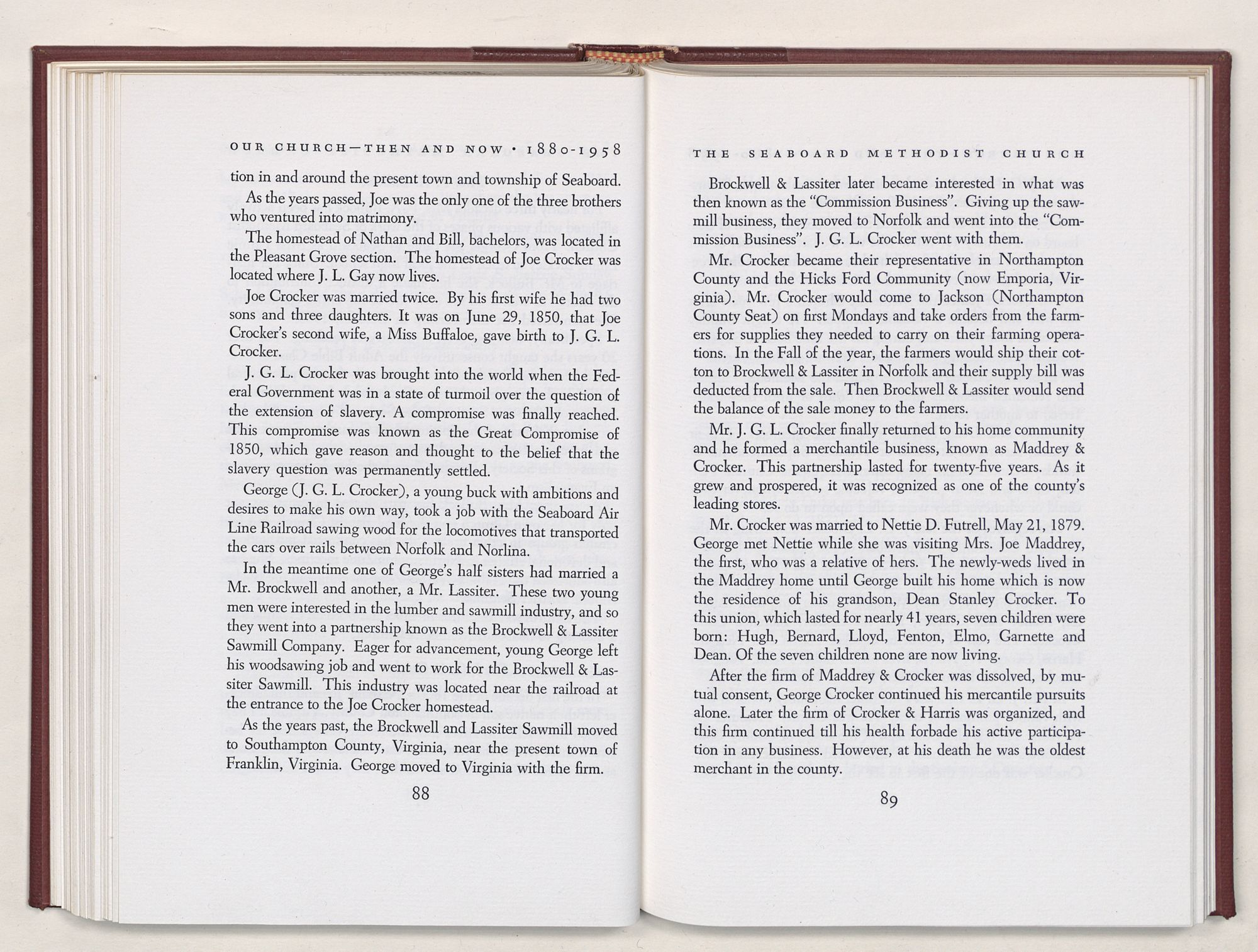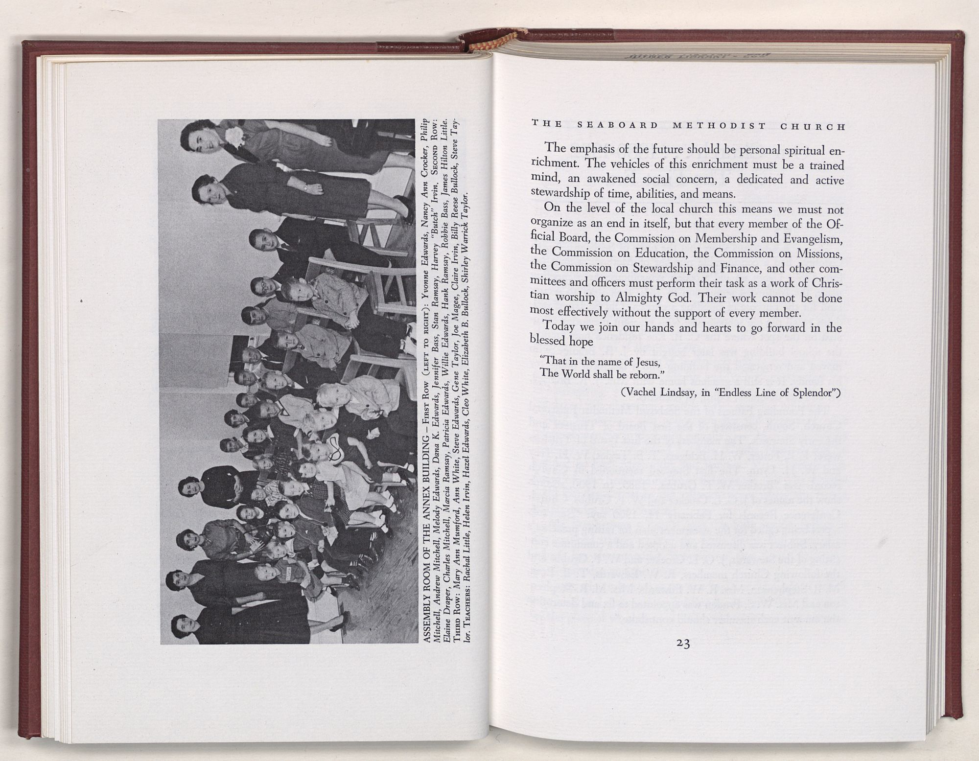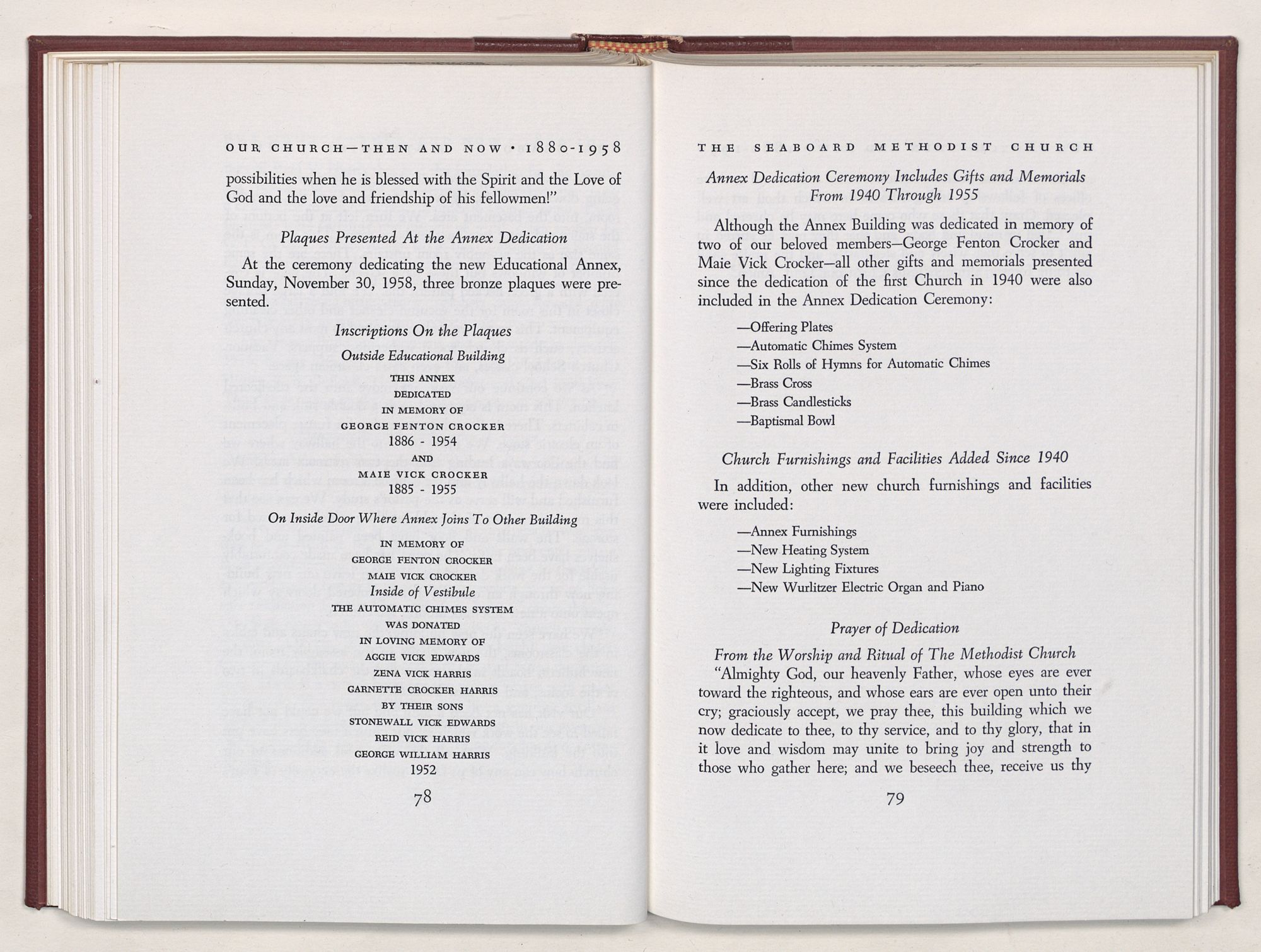 Nevertheless, it is our belief that the history of the Seaboard Methodist Church as related within these pages is basically factual. Furthermore, we believe this booklet will stimulate our Church officials and its members to keep more accurate records as well as more personal history of their families. Emerson, the great American essayist, once said: “There is properly no history, only biography.”