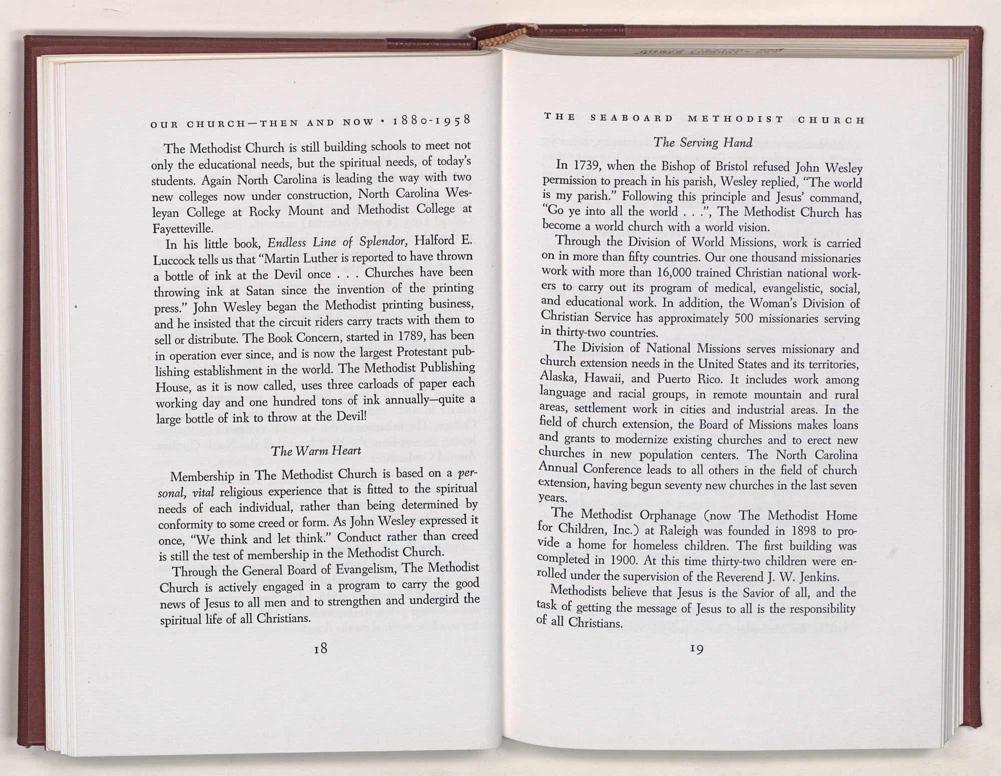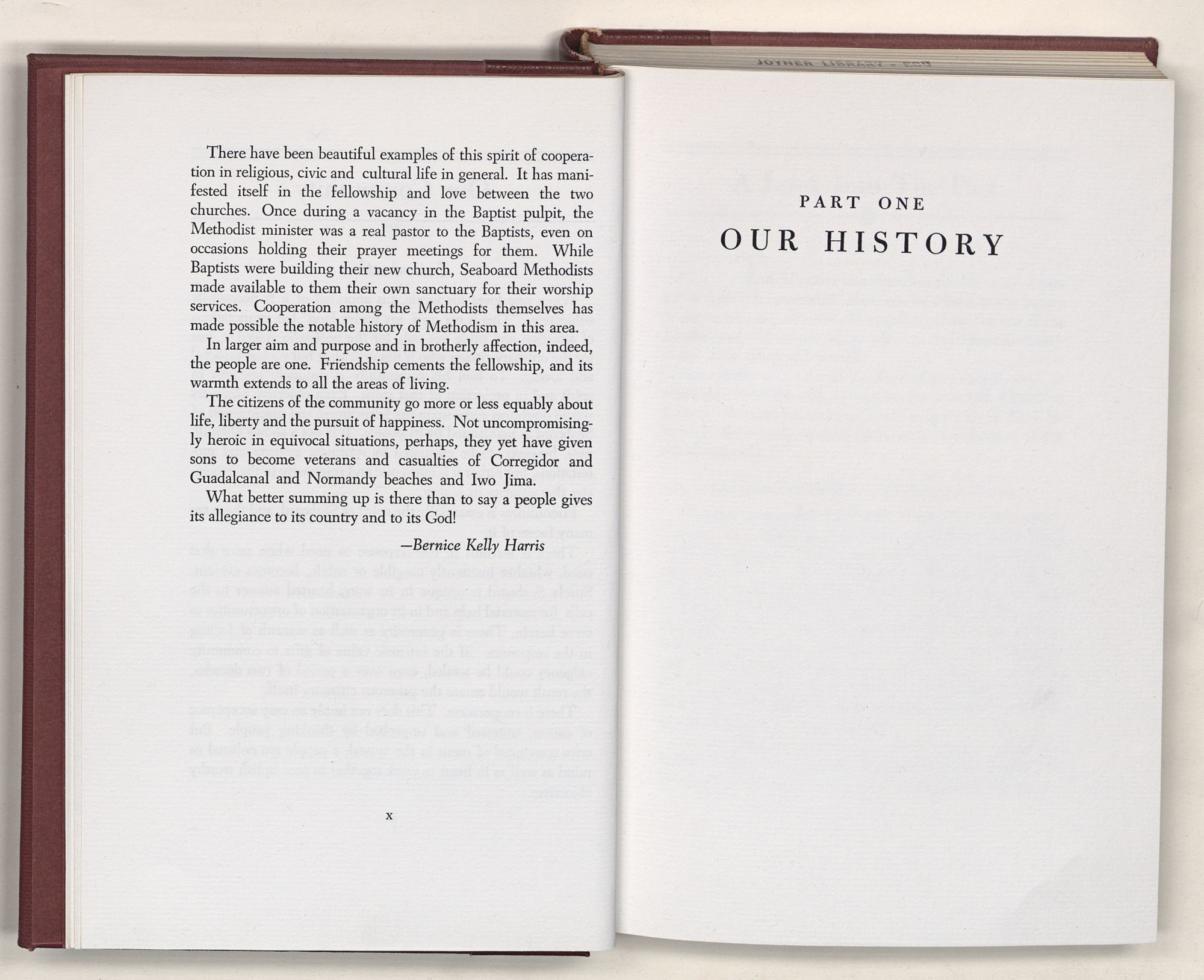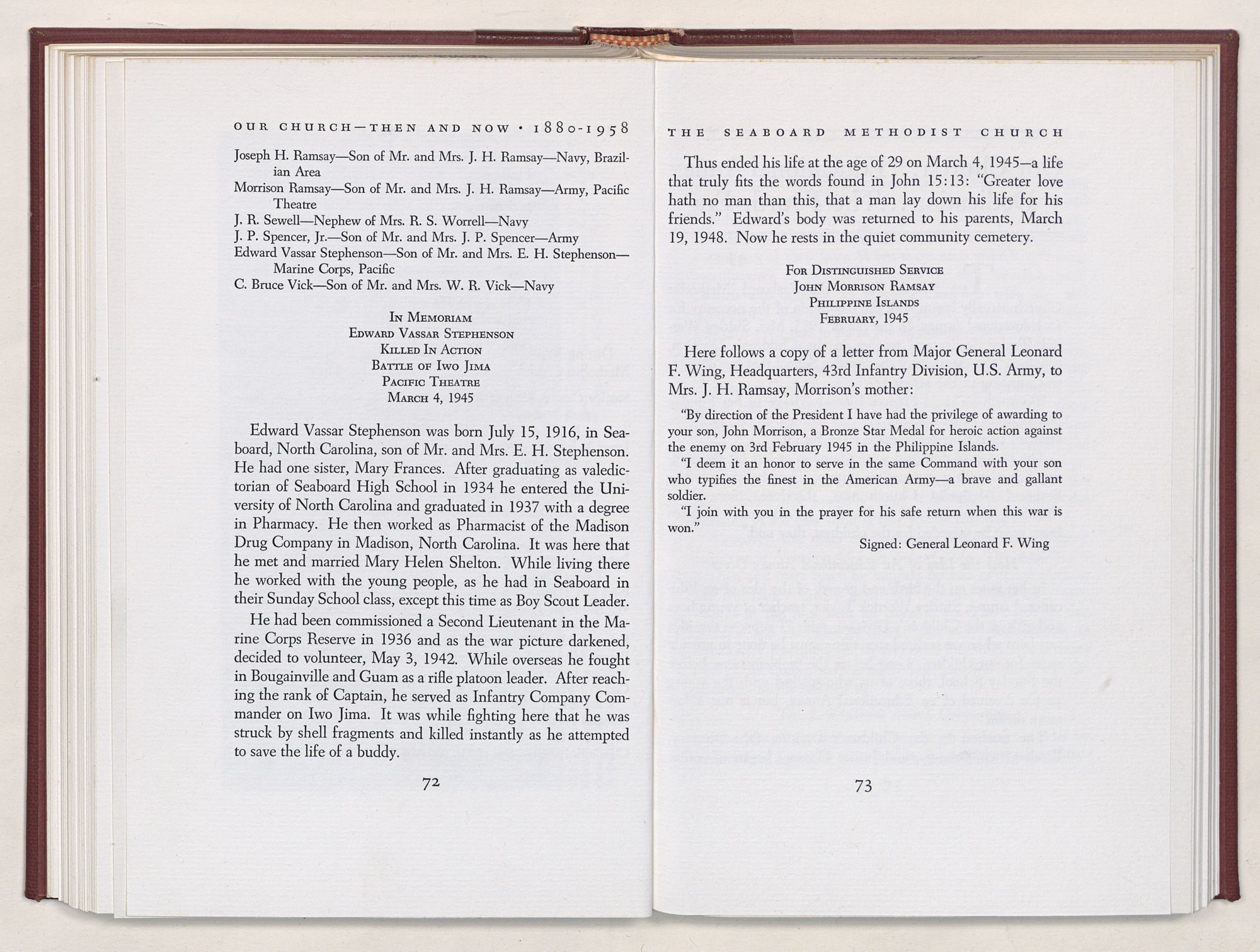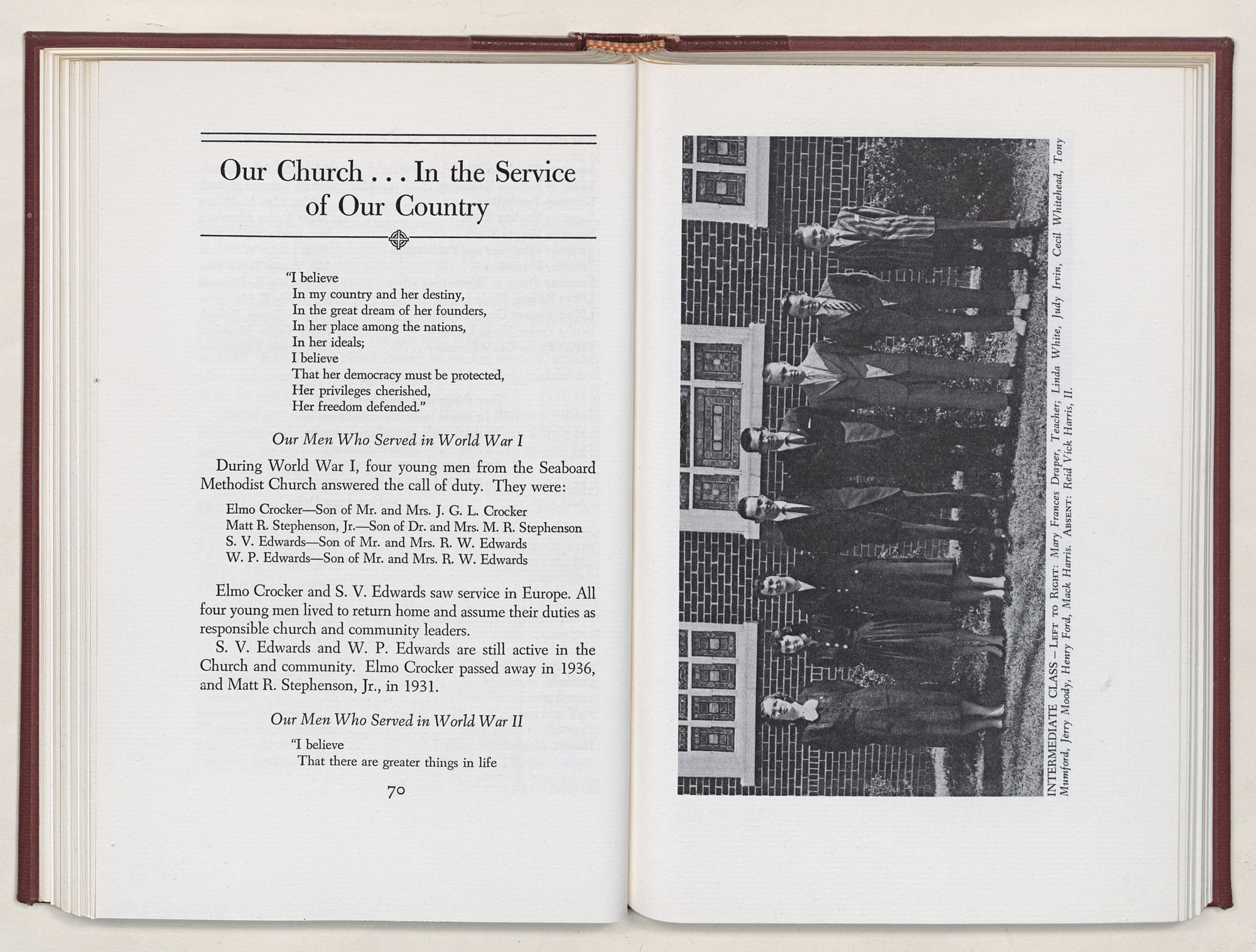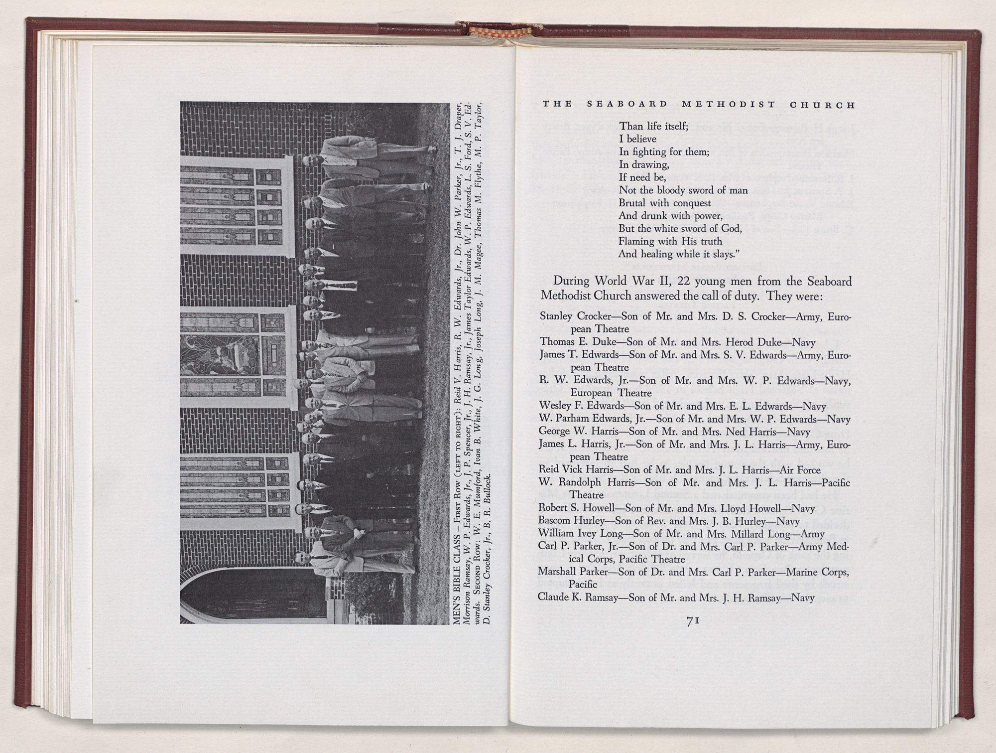 Nevertheless, it is our belief that the history of the Seaboard Methodist Church as related within these pages is basically factual. Furthermore, we believe this booklet will stimulate our Church officials and its members to keep more accurate records as well as more personal history of their families. Emerson, the great American essayist, once said: “There is properly no history, only biography.”