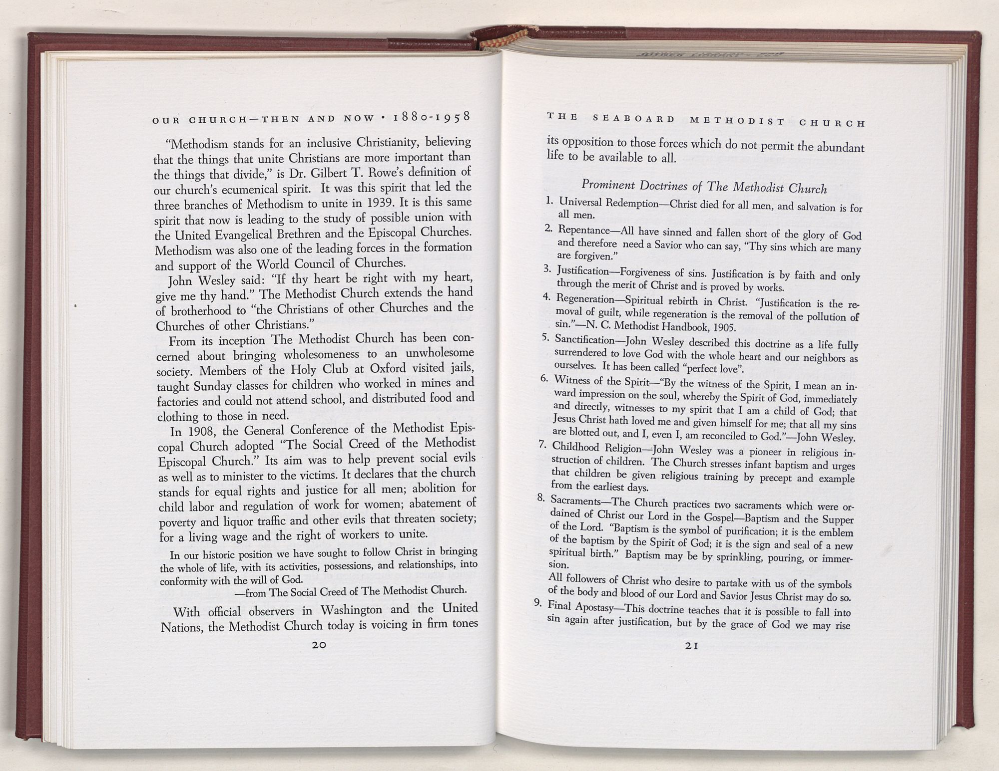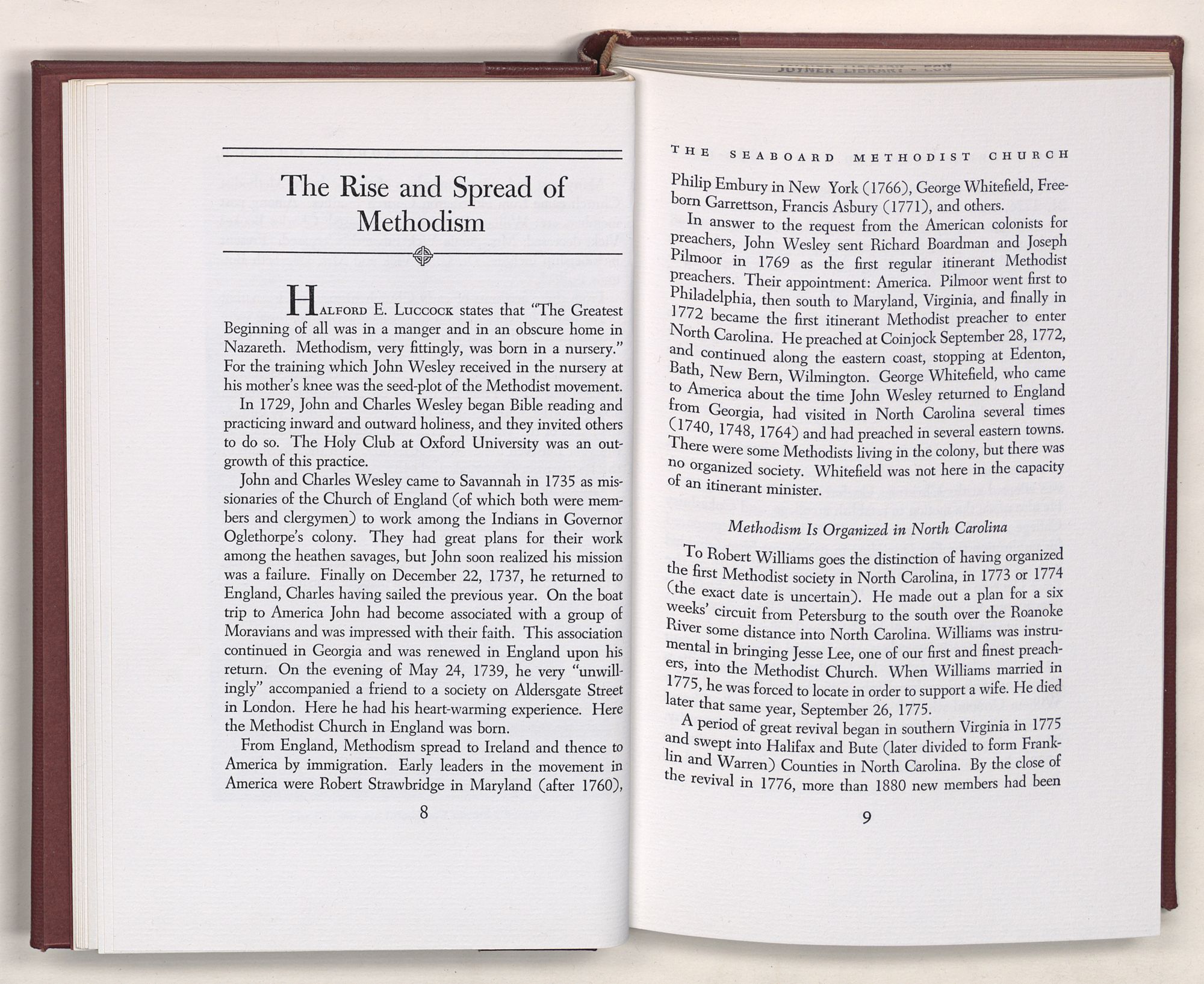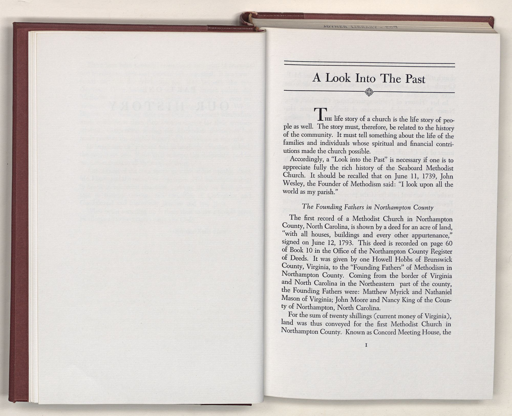 Accordingly, a “Look into the Past” is necessary if one is to appreciate fully the rich history of the Seaboard Methodist Church. It should be recalled that on June 11, 1739, John Wesley, the Founder of Methodism said: “I look upon all the world as my parish.”