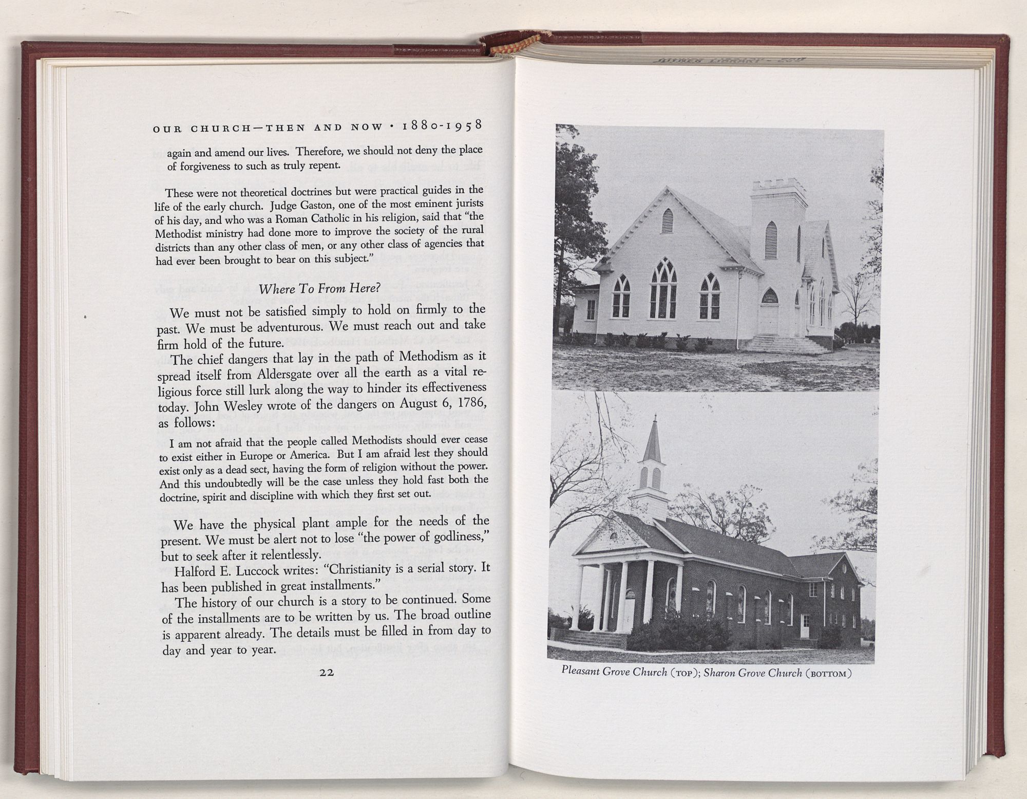 Sharon Methodist Episcopal Church—1839Three years after the founding of the Pleasant Grove Methodist Church, another Methodist Church—Sharon—was organized.