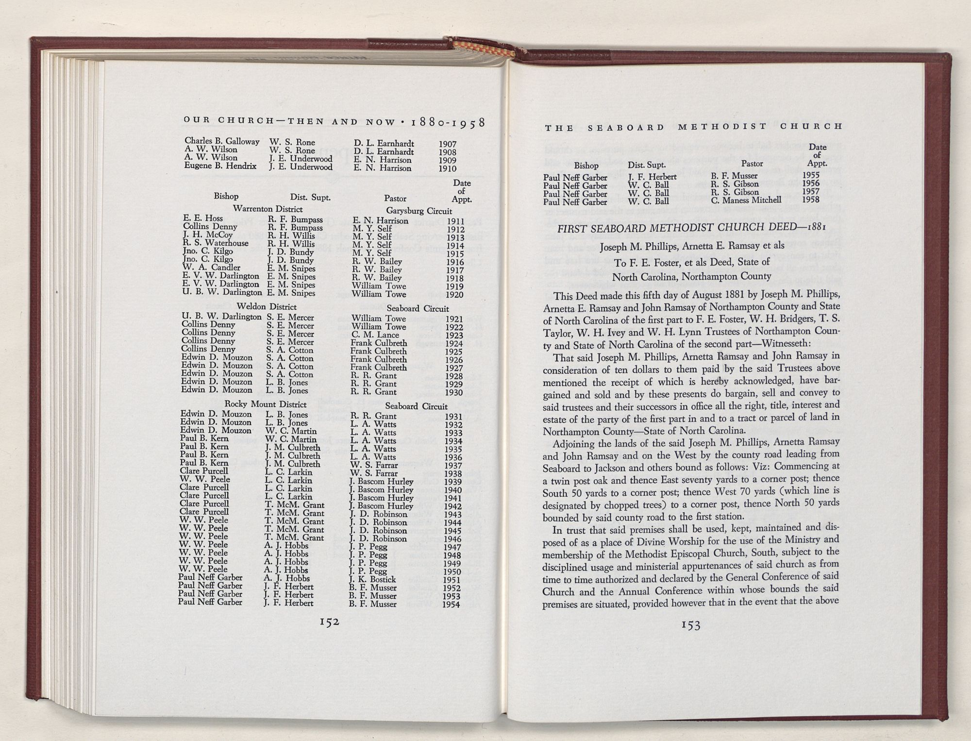 | Church Deeds: First Seaboard Methodist Church Deed—1881 | 153 |