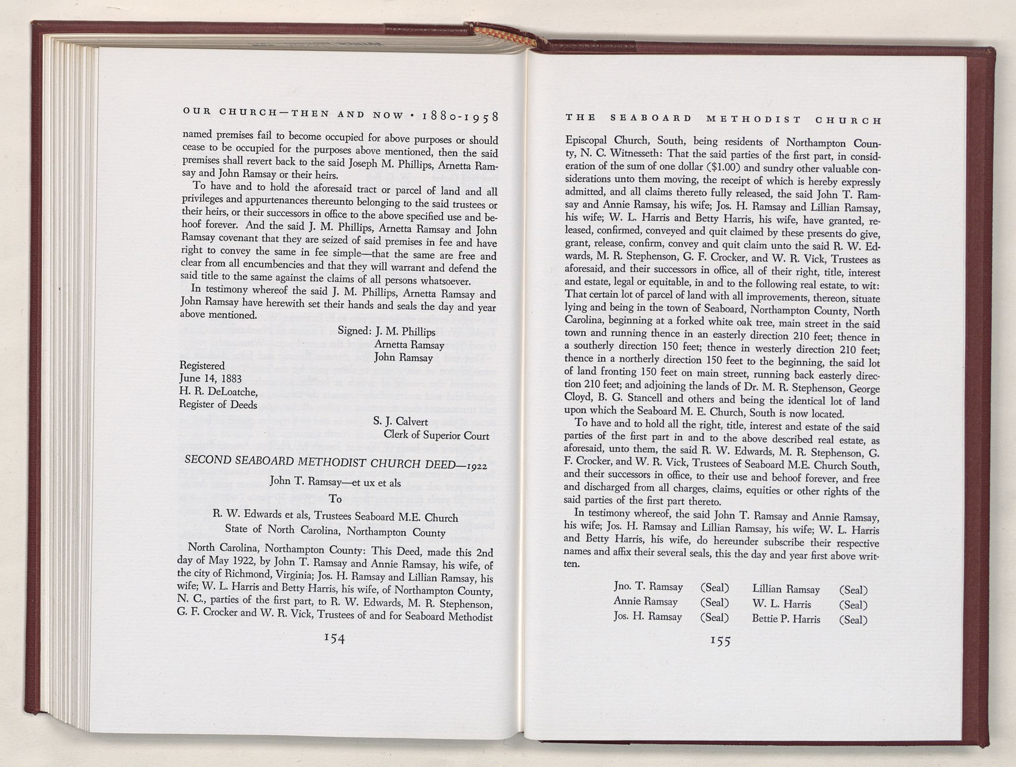 | Second Seaboard Methodist Church Deed—1922 | 154 |