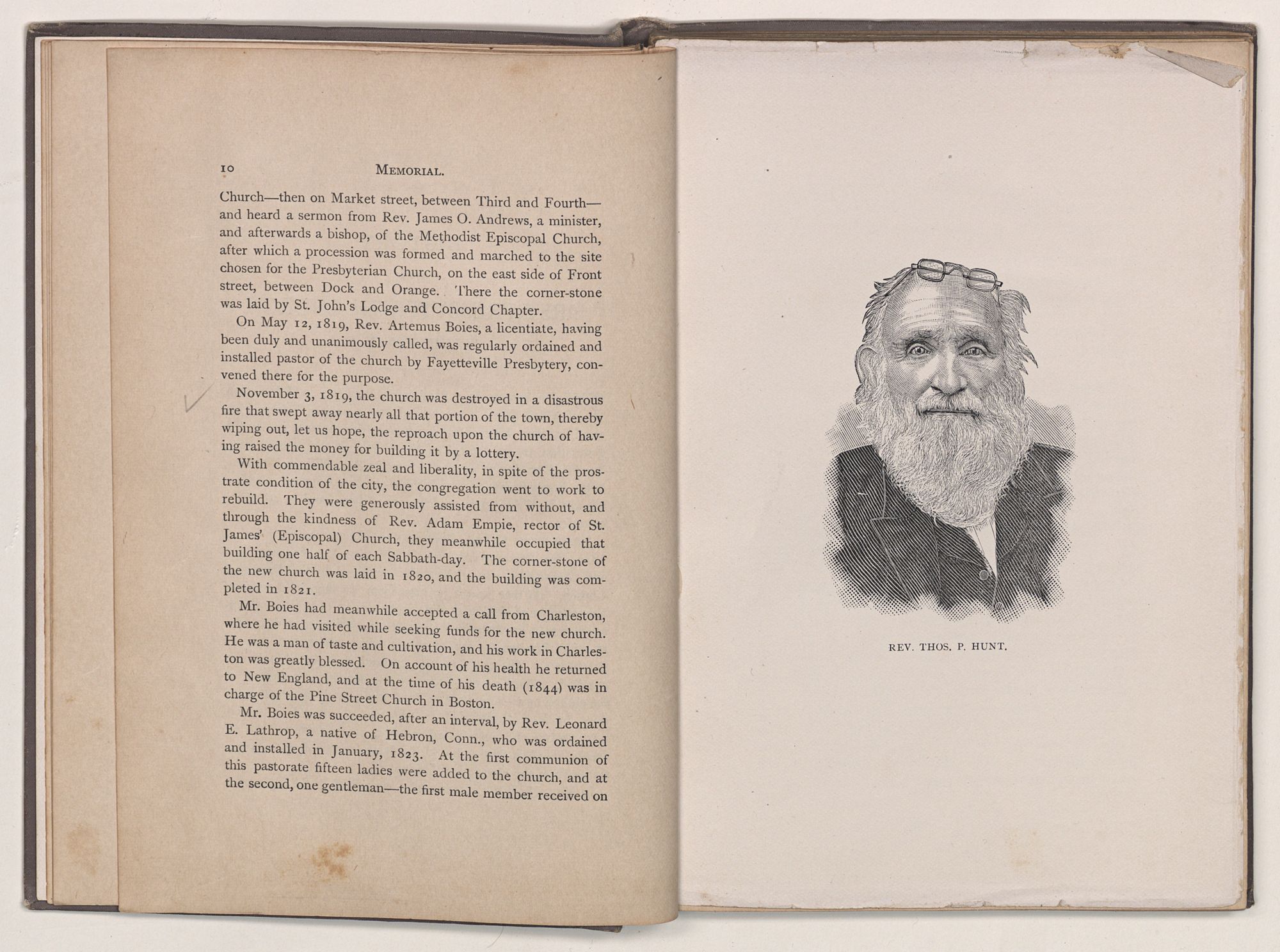 Mr. Boies had meanwhile accepted a call from Charleston, where he had visited while seeking funds for the new church. He was a man of taste and cultivation, and his work in Charleston was greatly blessed. On account of his health he returned to New England, and at the time of his death (1844) was in charge of the Pine Street Church in Boston.