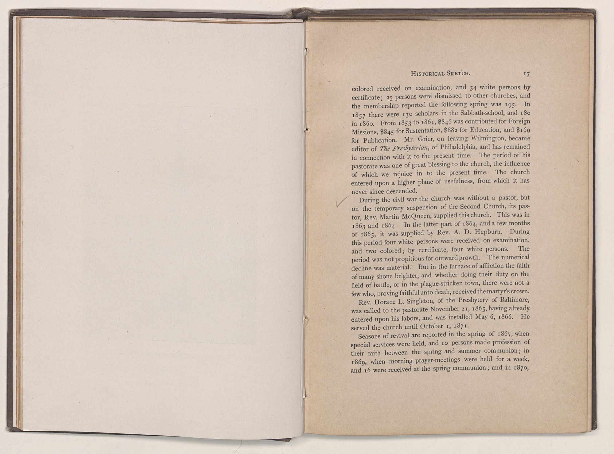 Pastorate of 1865-1871,REV. H. L. SINGLETON.*