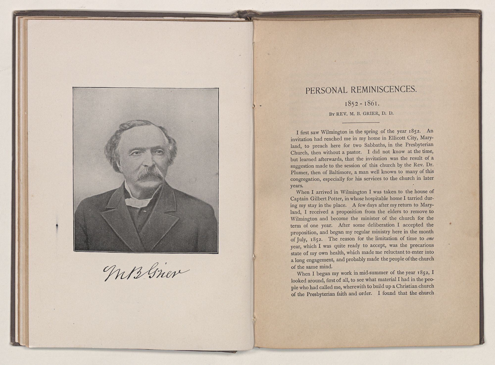 Pastorate of 1852-1861,REV. M. B. GRIER, D. D.