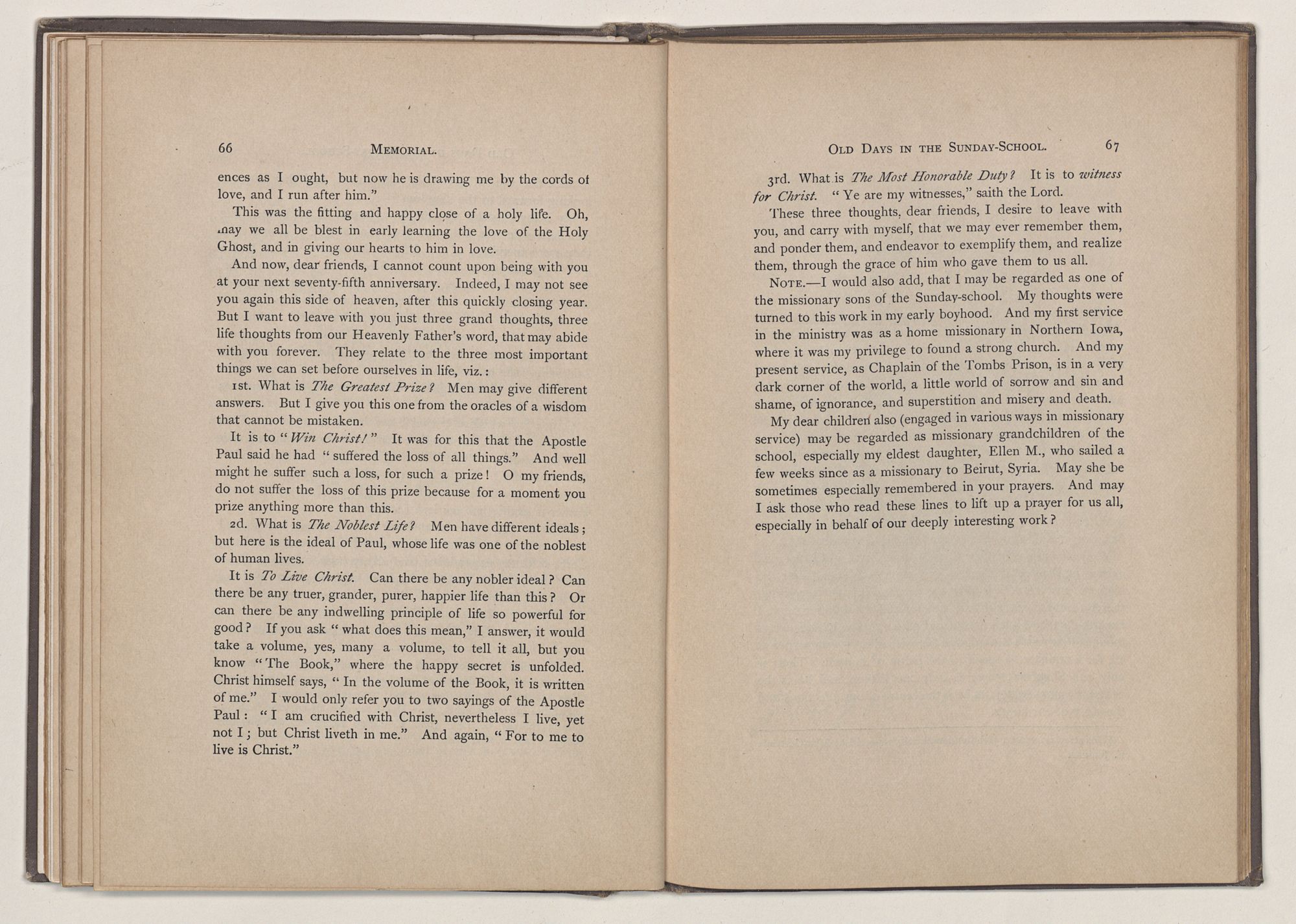 Address,—“Old Days in the Sunday-school,”REV. S. G. LAW.