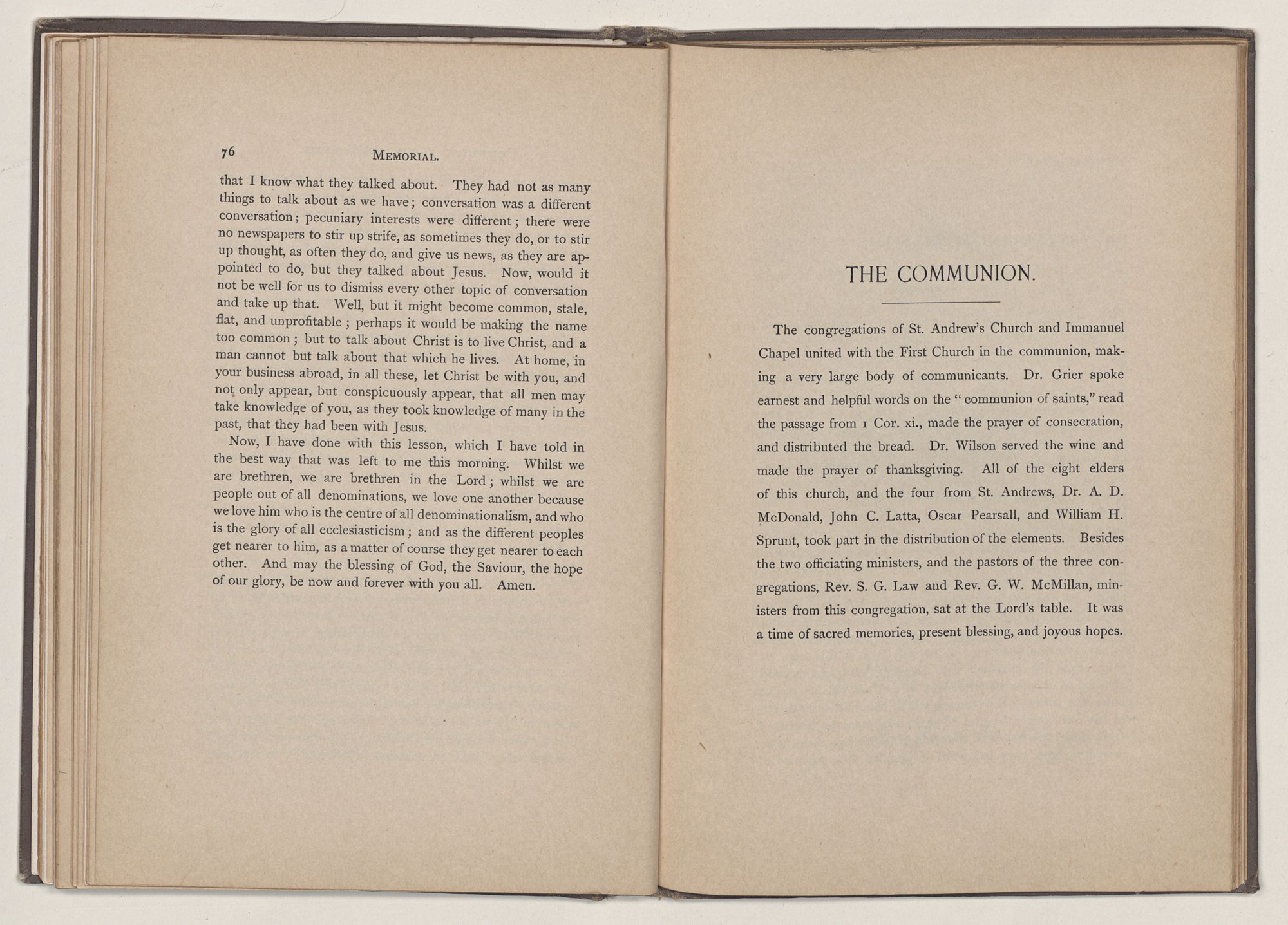 Communion of the Lord's Supper,DR. GRIER AND DR. WILSON.