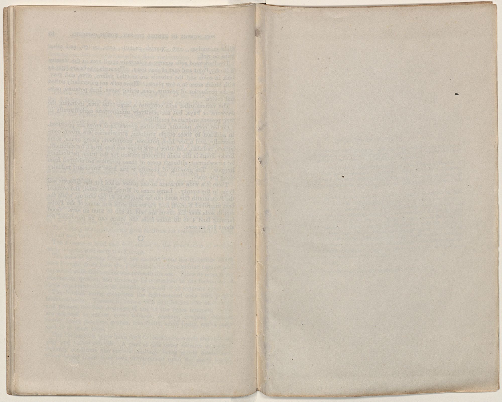 There are large undeveloped areas of good soil in the county which can be brought under cultivation at a small expense through the inauguration of an extensive system of drainage. In other prominent bodies, mainly the bays and pocosons, the soil would not be very productive if reclaimed.