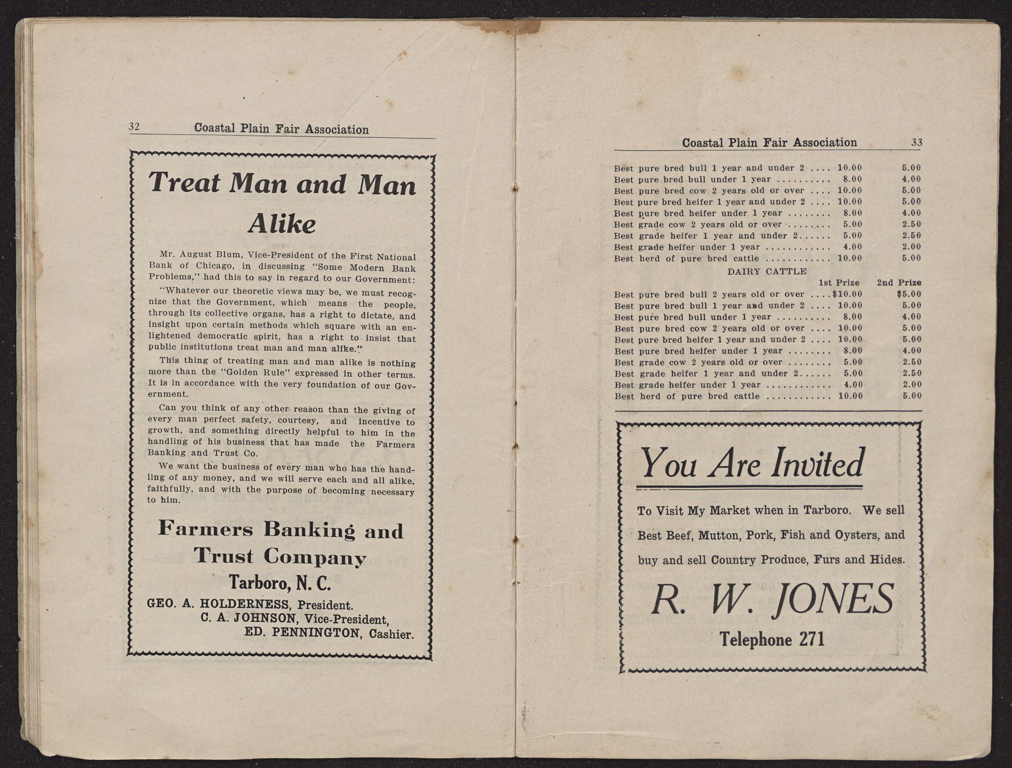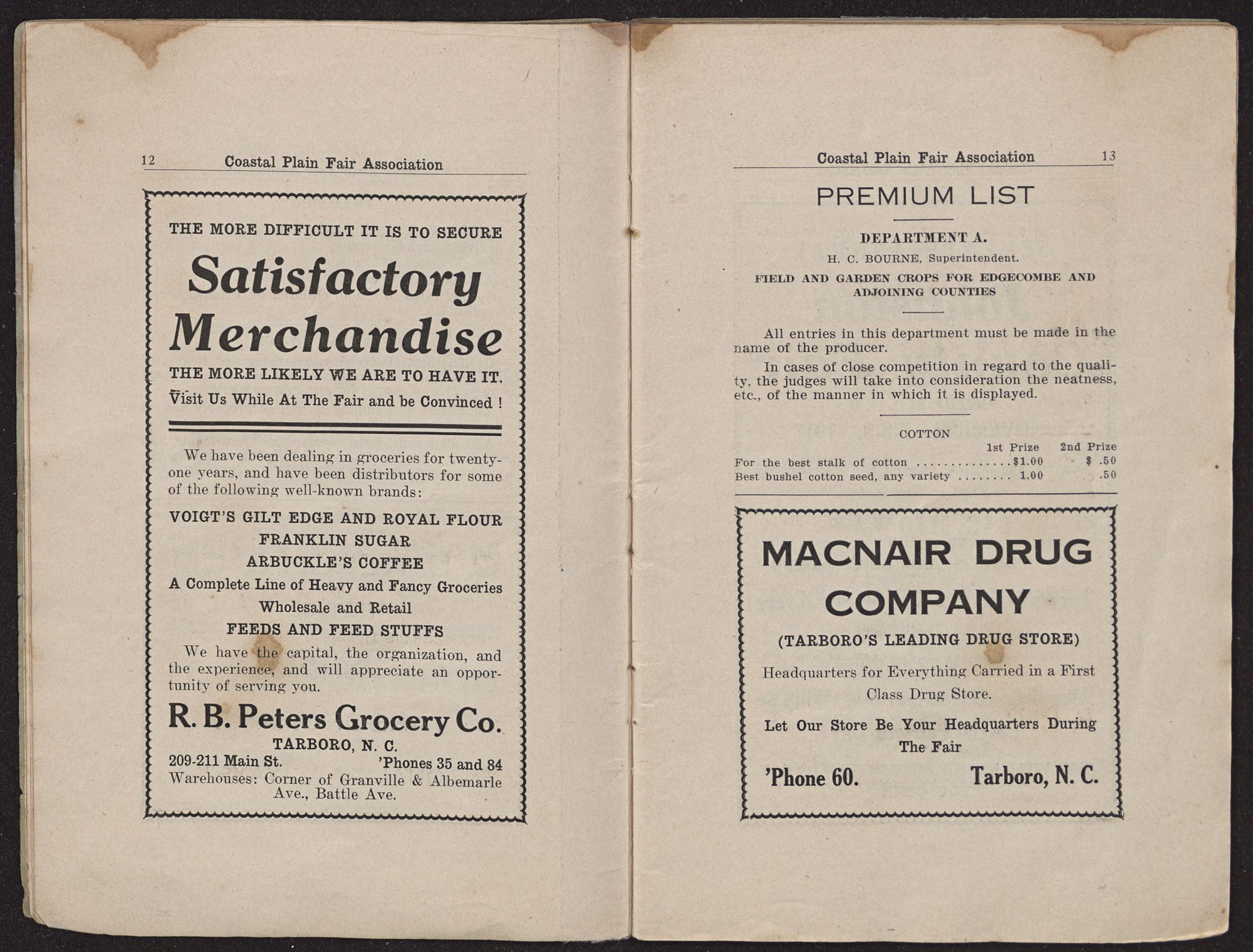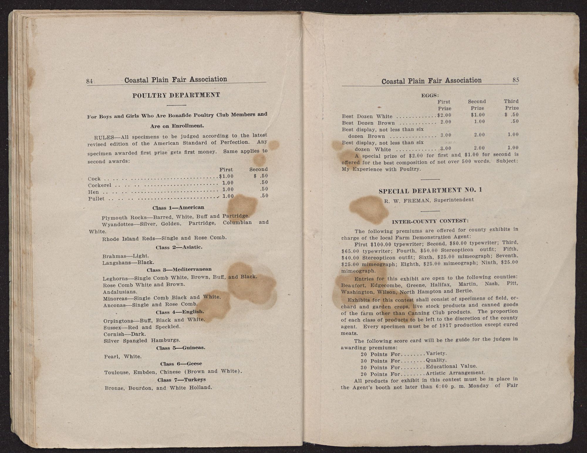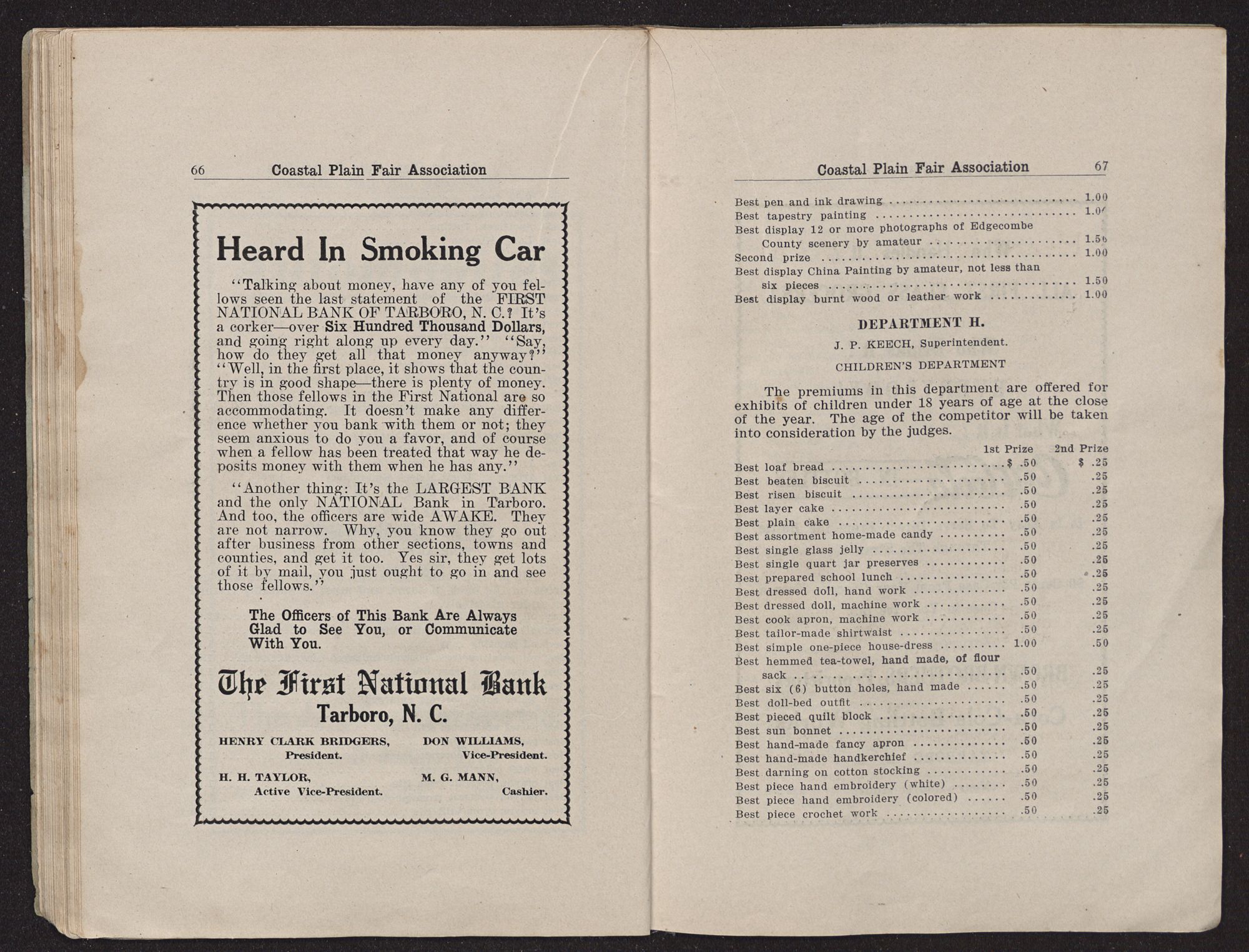 PREMIUM LISTCOASTAL PLAIN FAIR TARBORO, N. C. OCTOBER 30TH, 31ST. NOVEMBER 1ST, 2ND, 1917 OWEN G. DUNN, PRINTER.NEW BERN, N. C.Constantine's LADIES CAFE GENTLEMEN