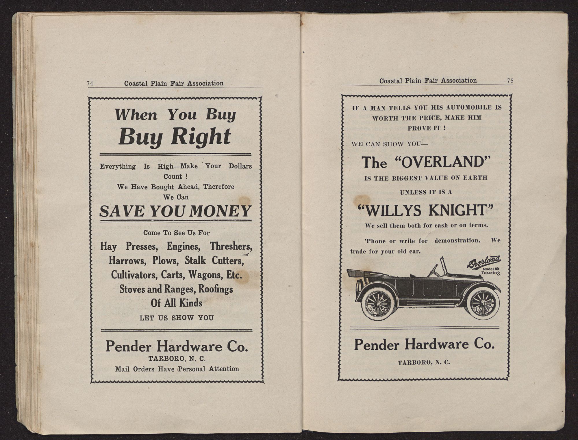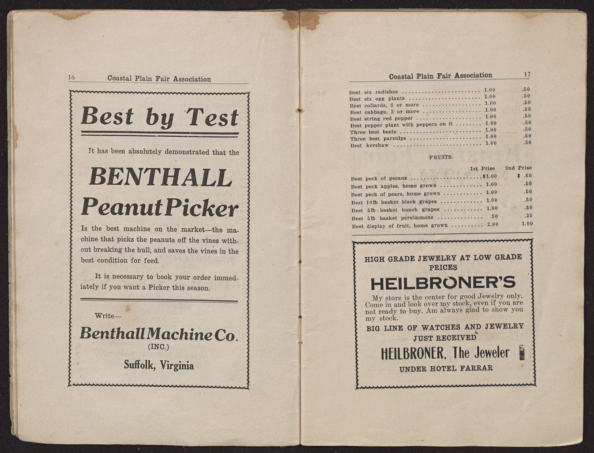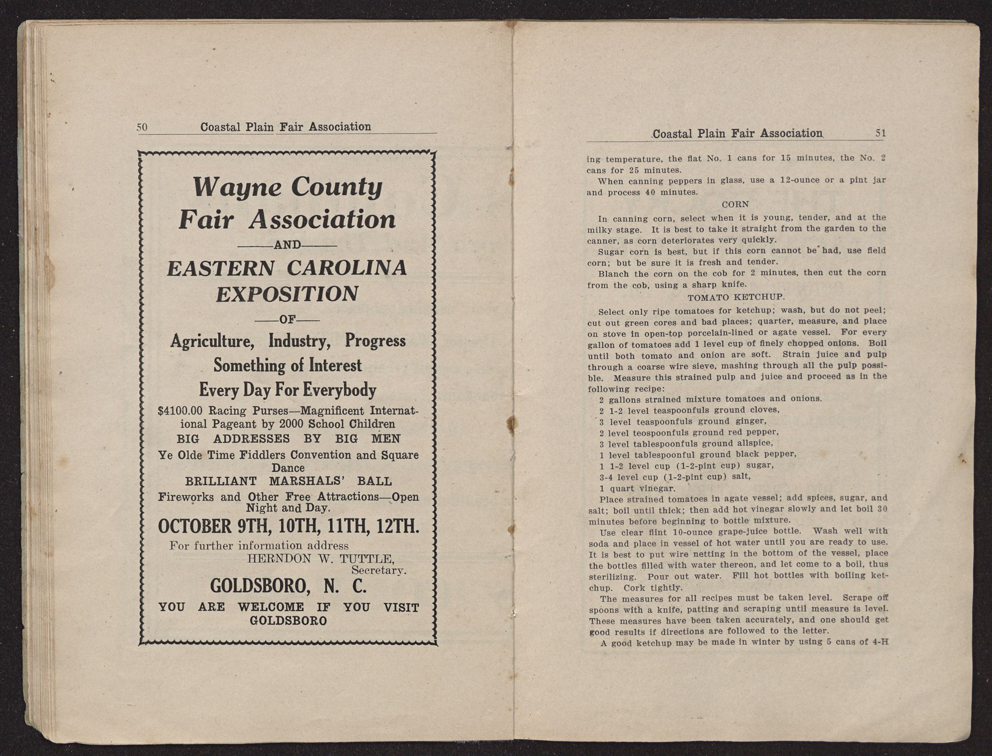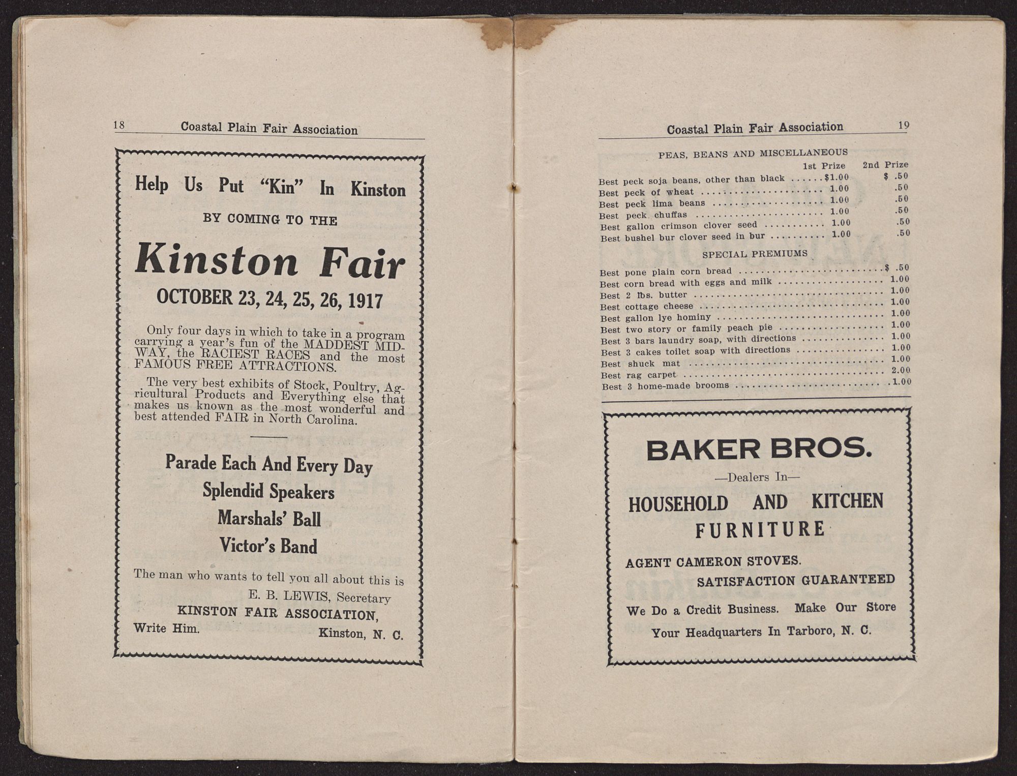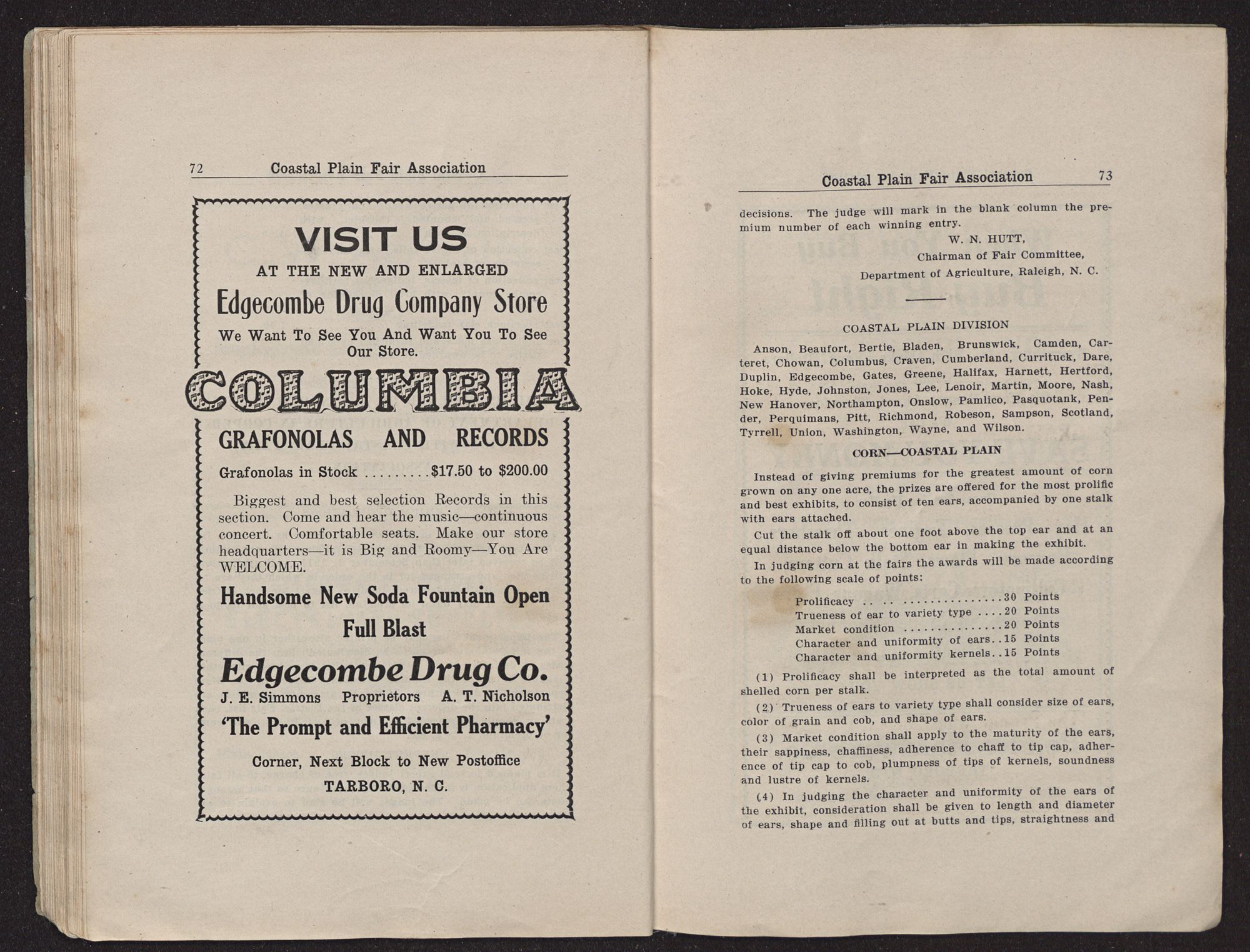 PREMIUM LISTCOASTAL PLAIN FAIR TARBORO, N. C. OCTOBER 30TH, 31ST. NOVEMBER 1ST, 2ND, 1917 OWEN G. DUNN, PRINTER.NEW BERN, N. C.Constantine's LADIES CAFE GENTLEMEN