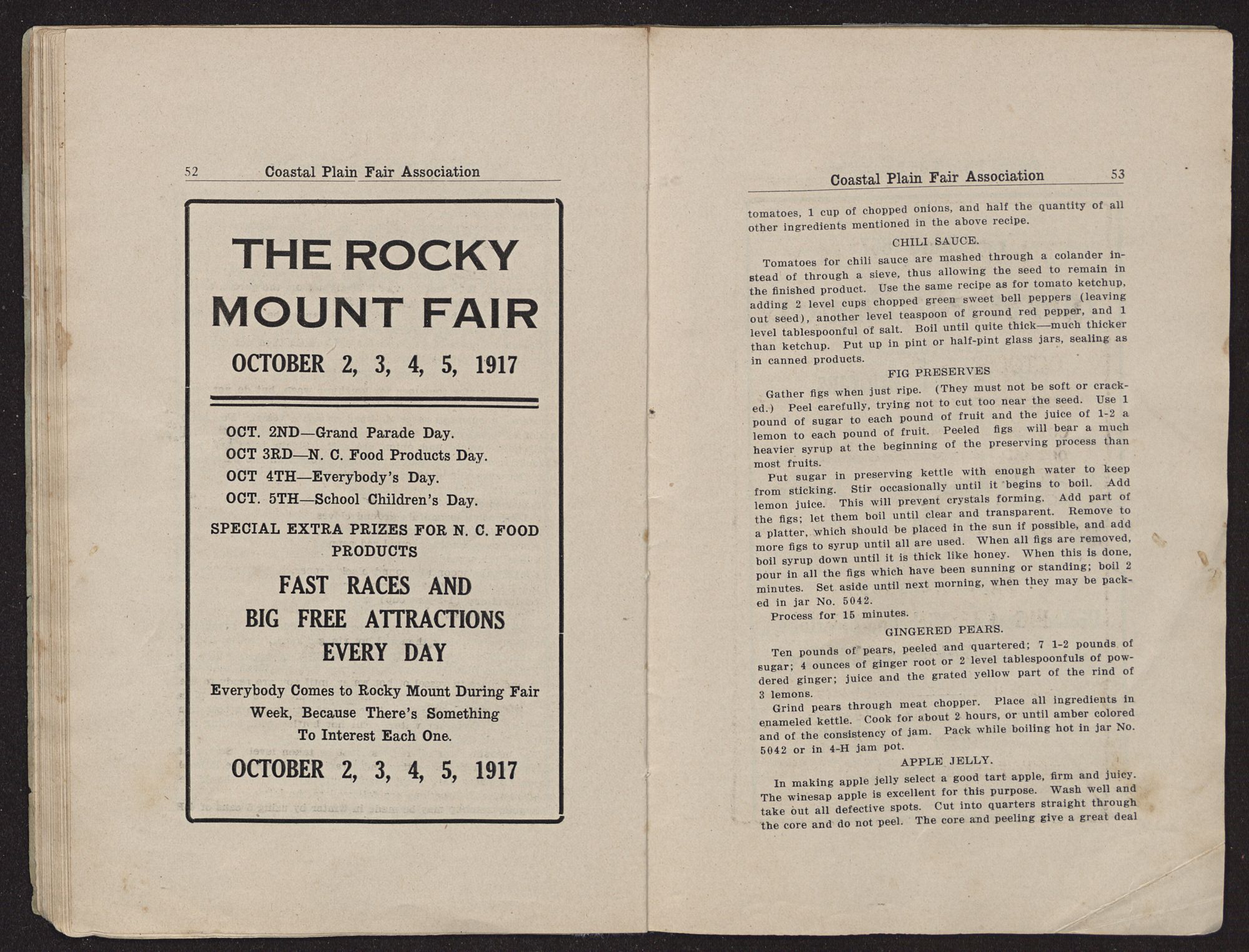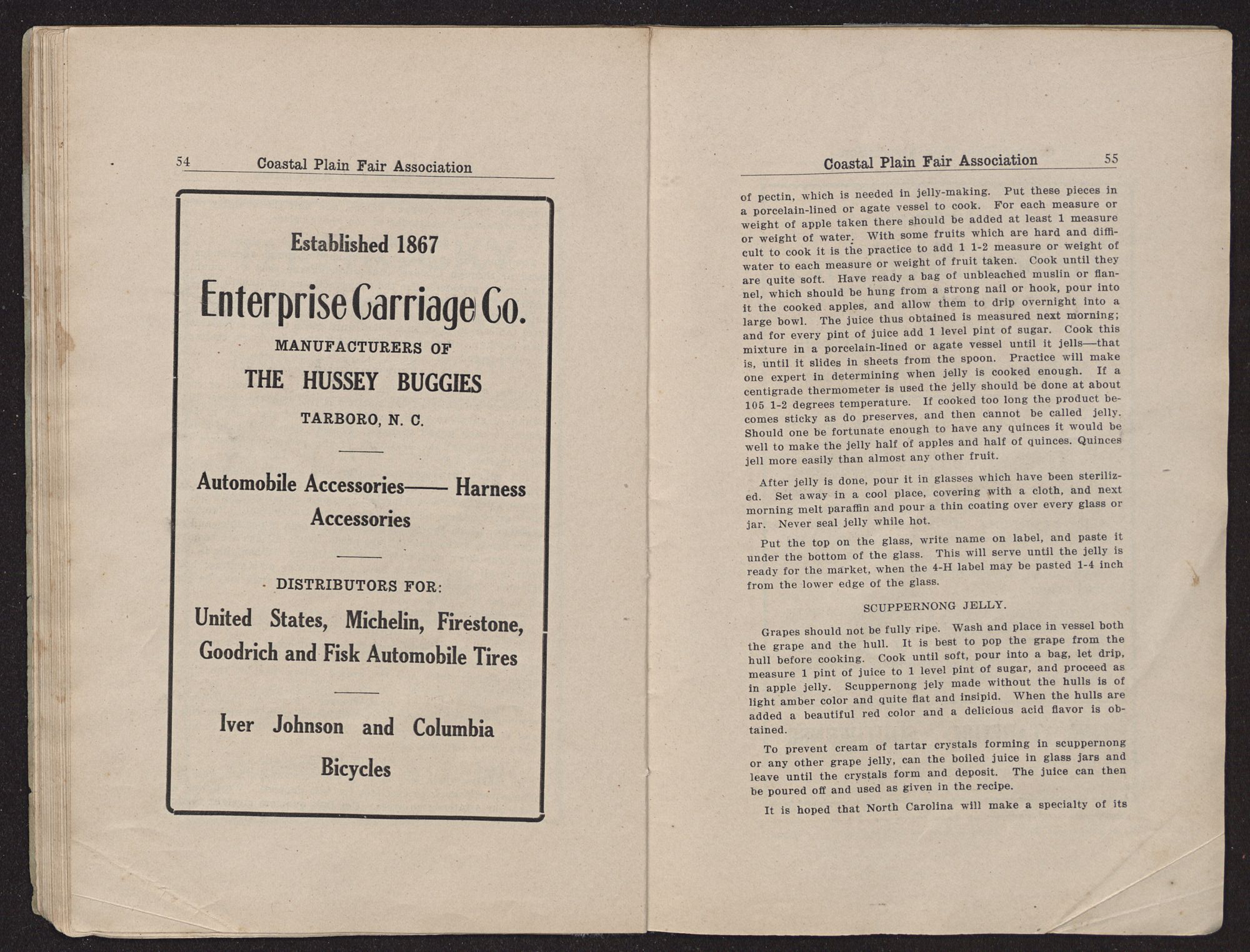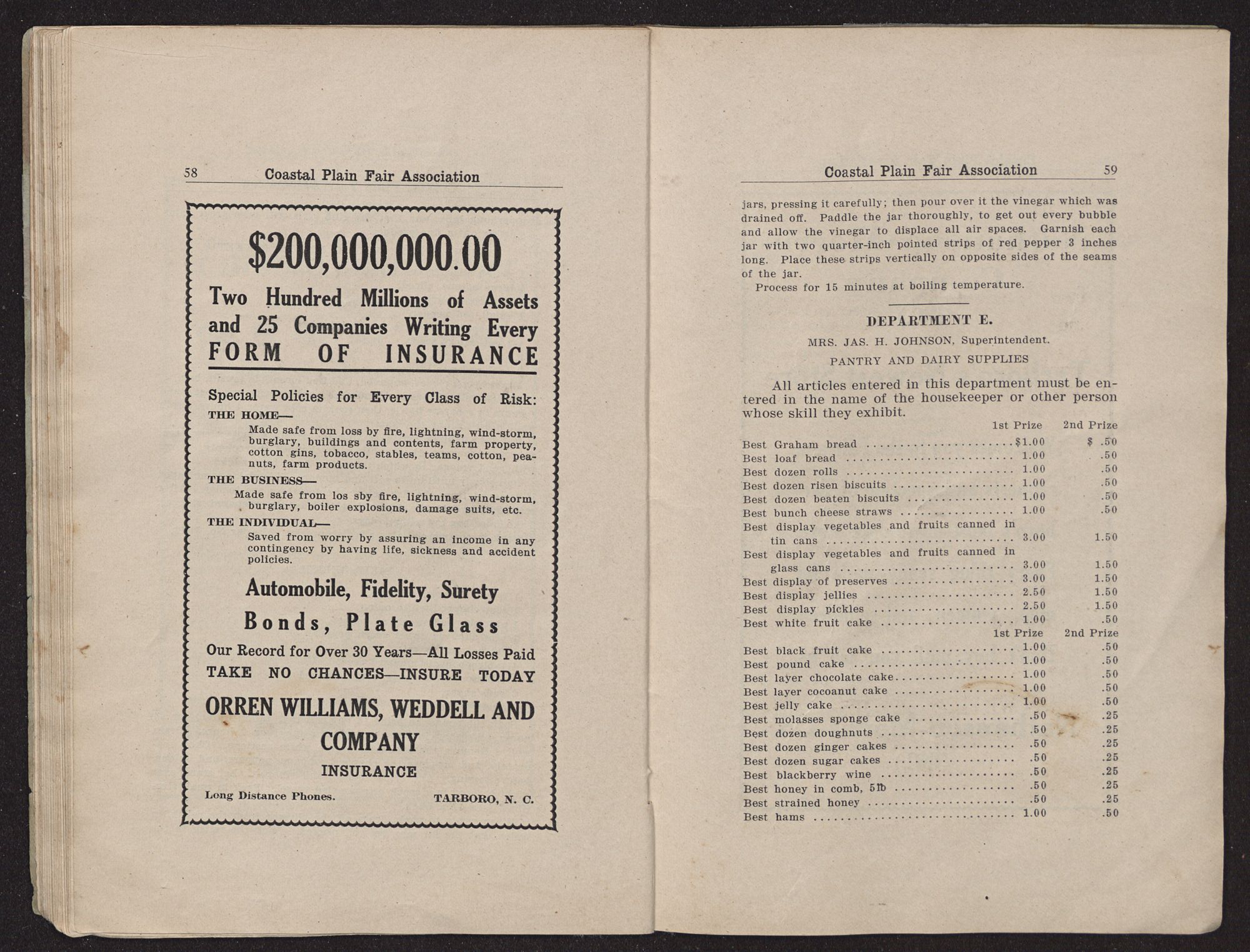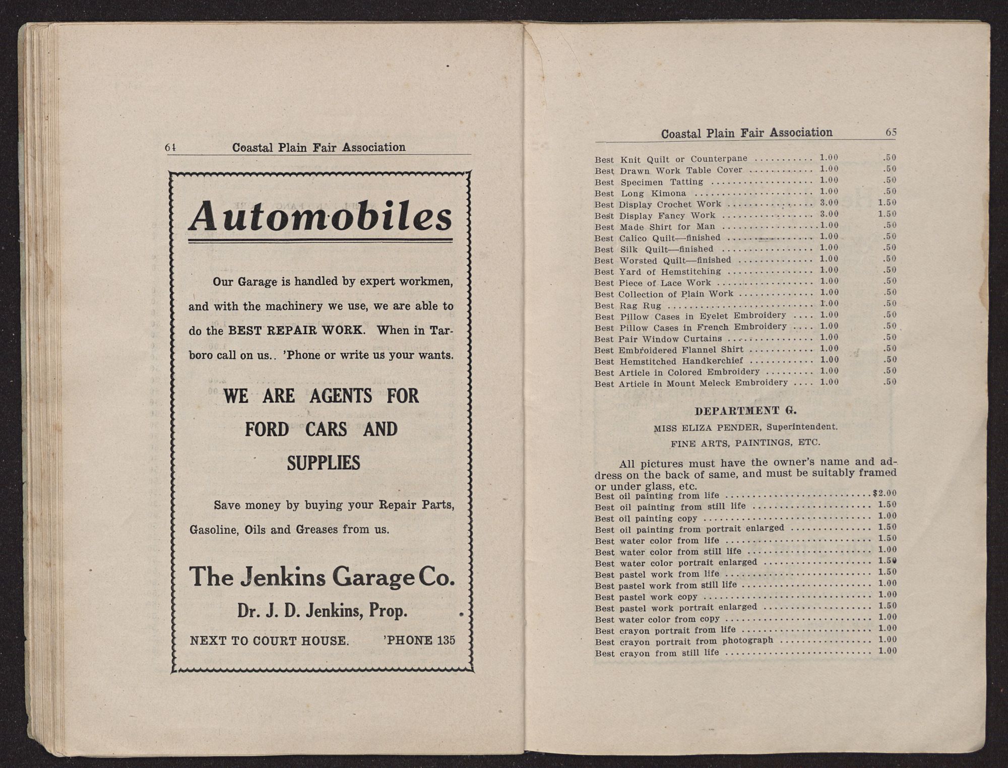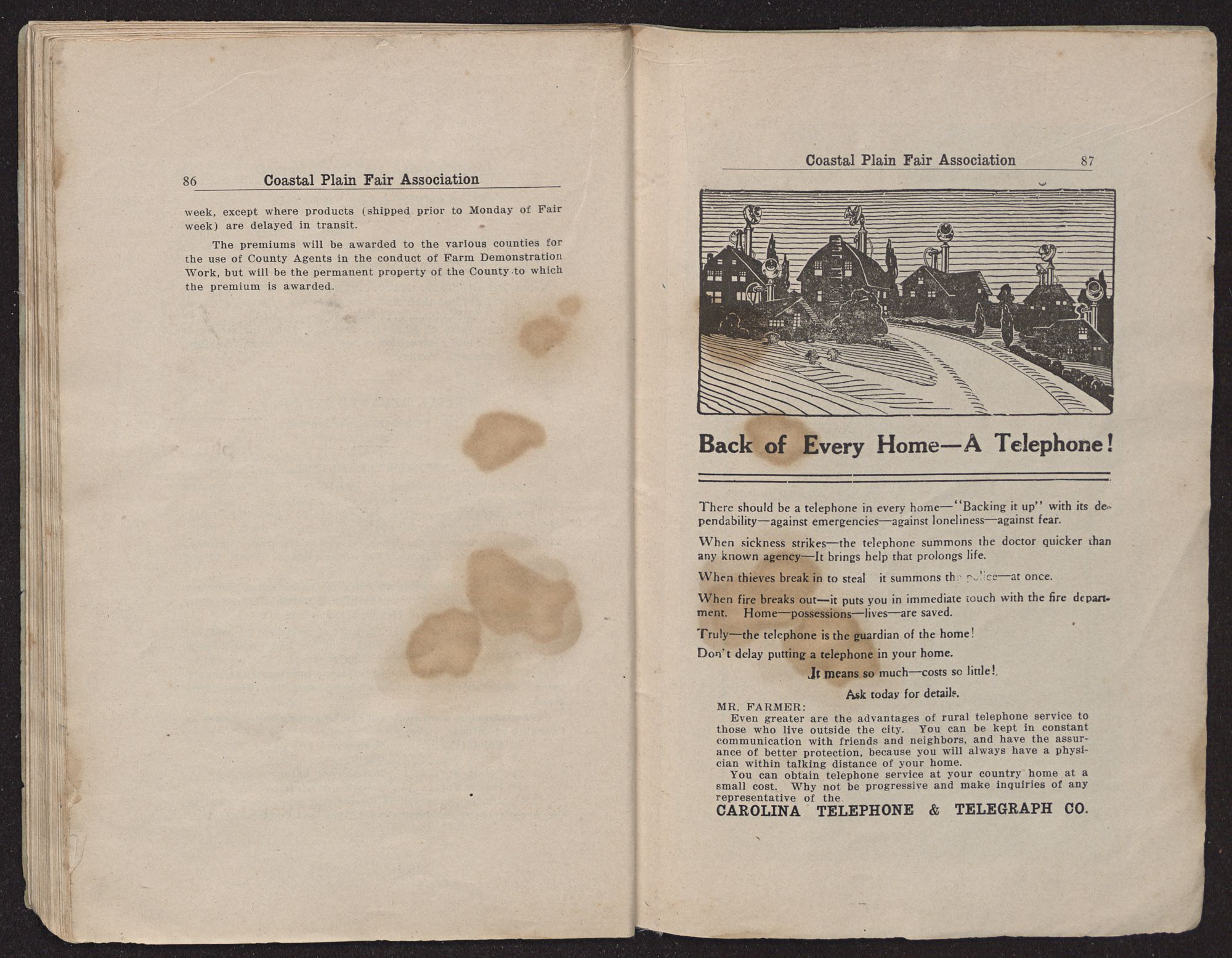 PREMIUM LISTCOASTAL PLAIN FAIR TARBORO, N. C. OCTOBER 30TH, 31ST. NOVEMBER 1ST, 2ND, 1917 OWEN G. DUNN, PRINTER.NEW BERN, N. C.Constantine's LADIES CAFE GENTLEMEN