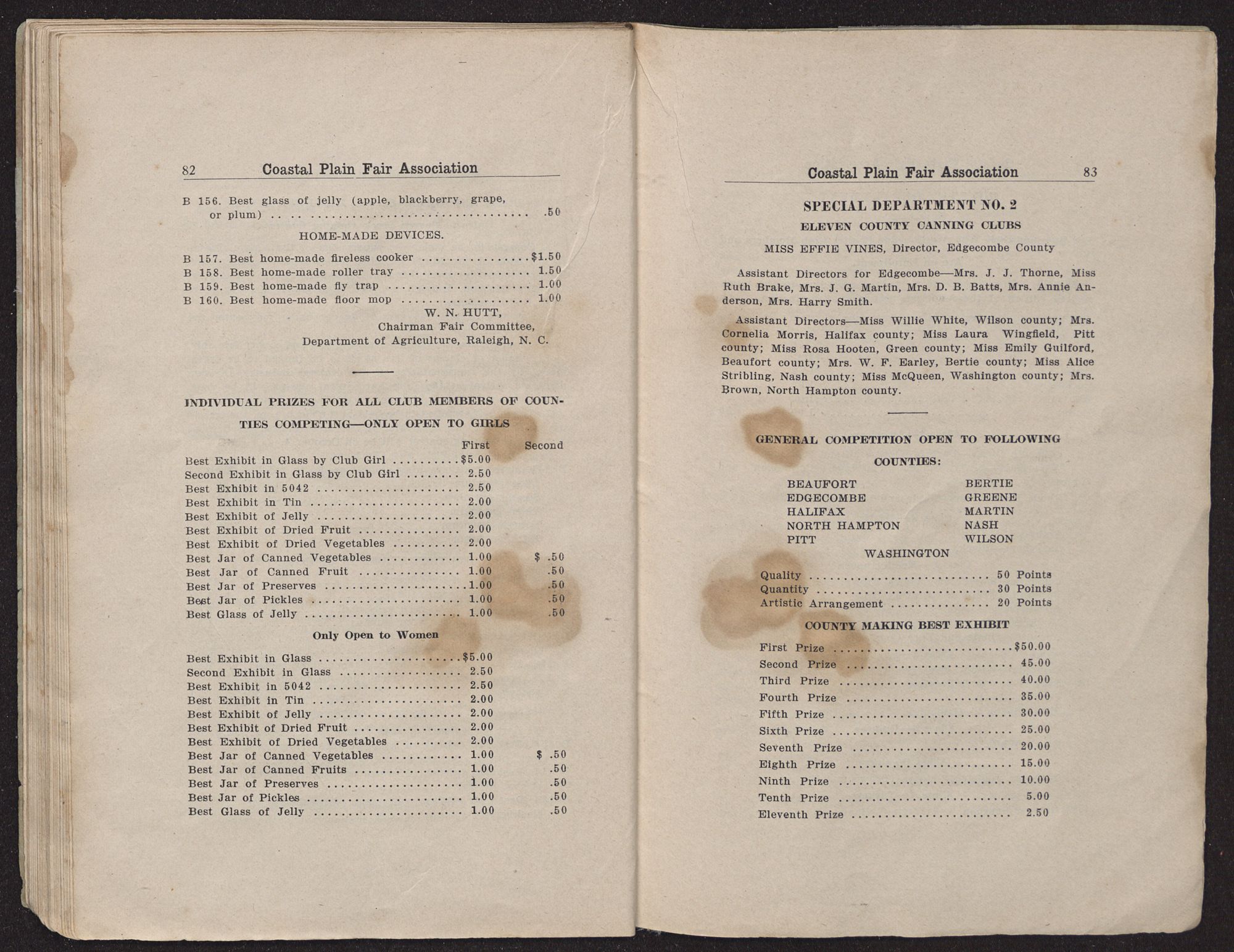 INTER-COUNTY CONTEST:The following premiums are offered for county exhibits in charge of the local Farm Demonstration Agent: