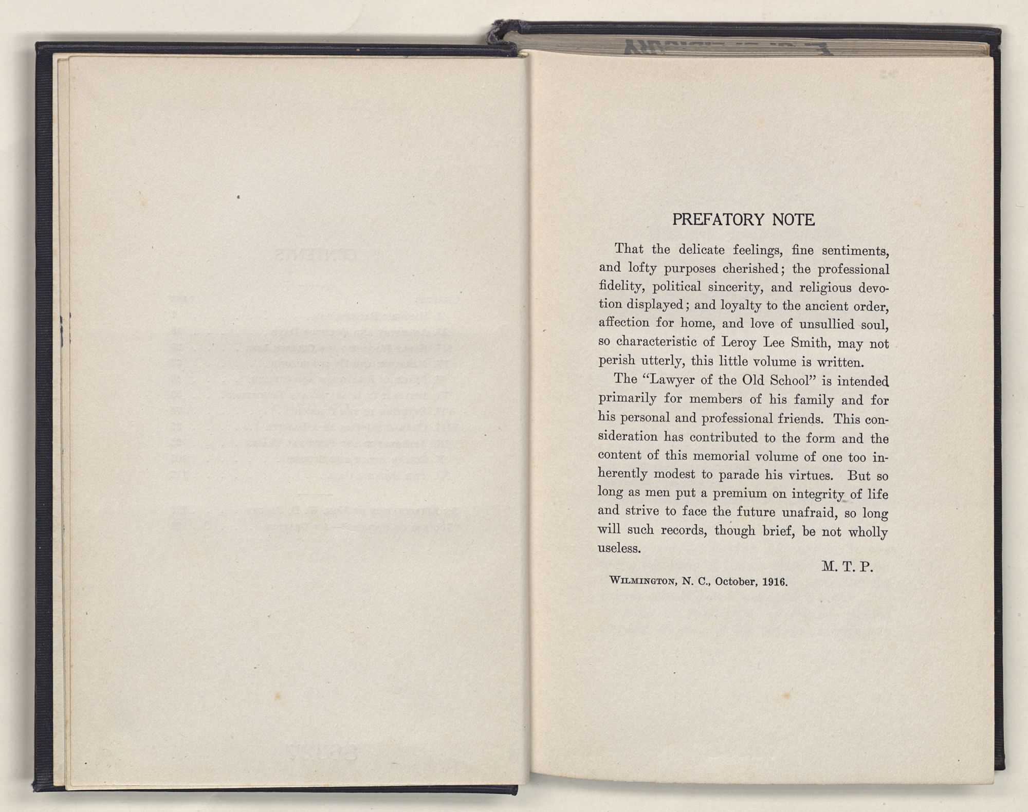 The “Lawyer of the Old School” is intended primarily for members of his family and for his personal and professional friends. This consideration has contributed to the form and the content of this memorial volume of one too inherently modest to parade his virtues. But so long as men put a premium on integrity of life and strive to face the future unafraid, so long will such records, though brief, be not wholly useless.