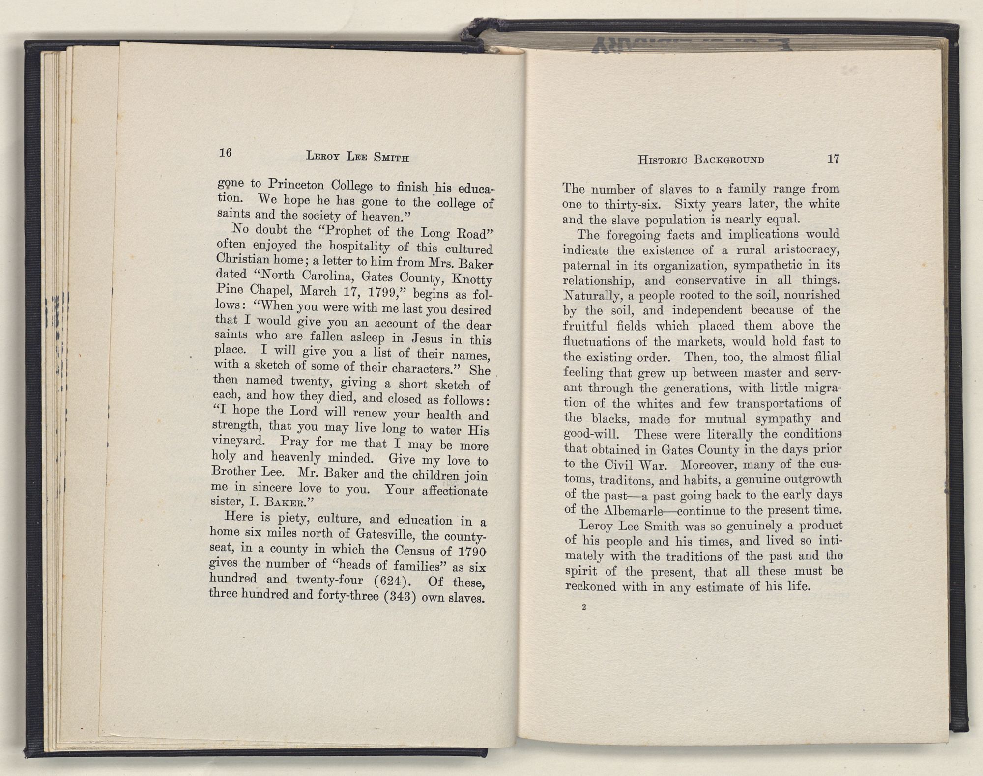 Here is piety, culture, and education in a home six miles north of Gatesville, the county-seat, in a county in which the Census of 1790 gives the number of “heads of families” as six hundred and twenty-four (624). Of these, three hundred and forty-three (343) own slaves.